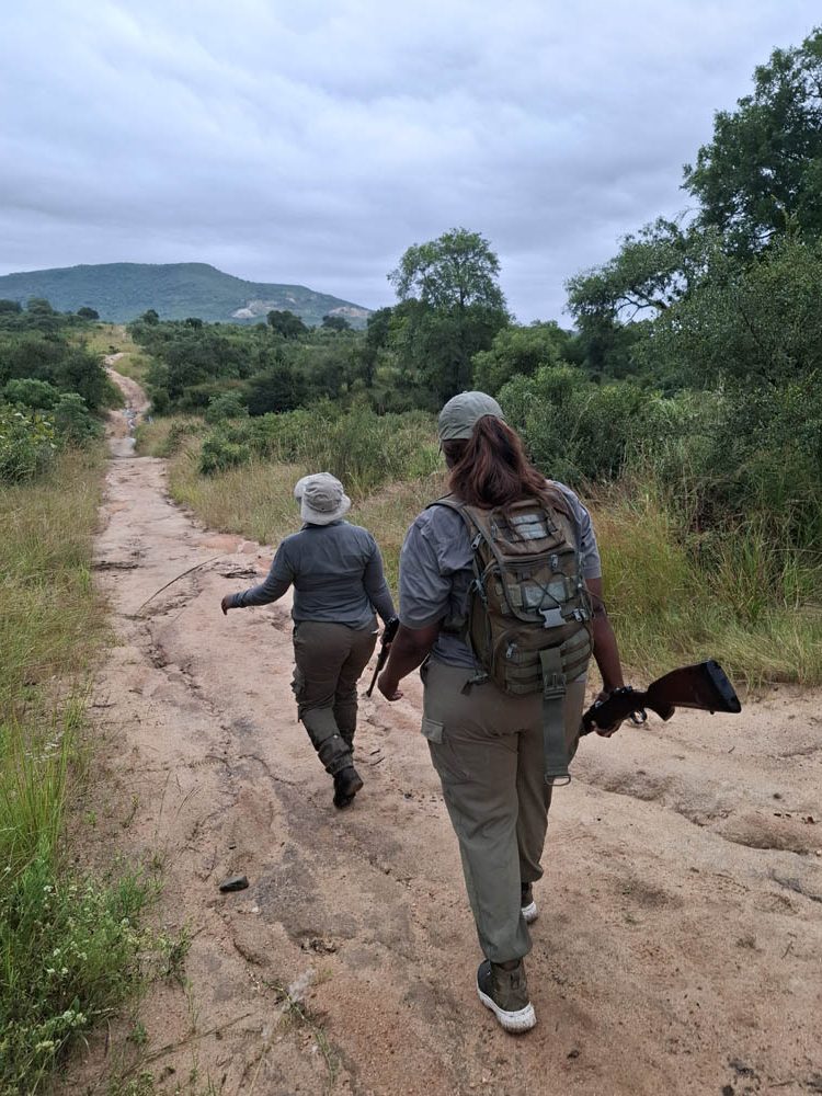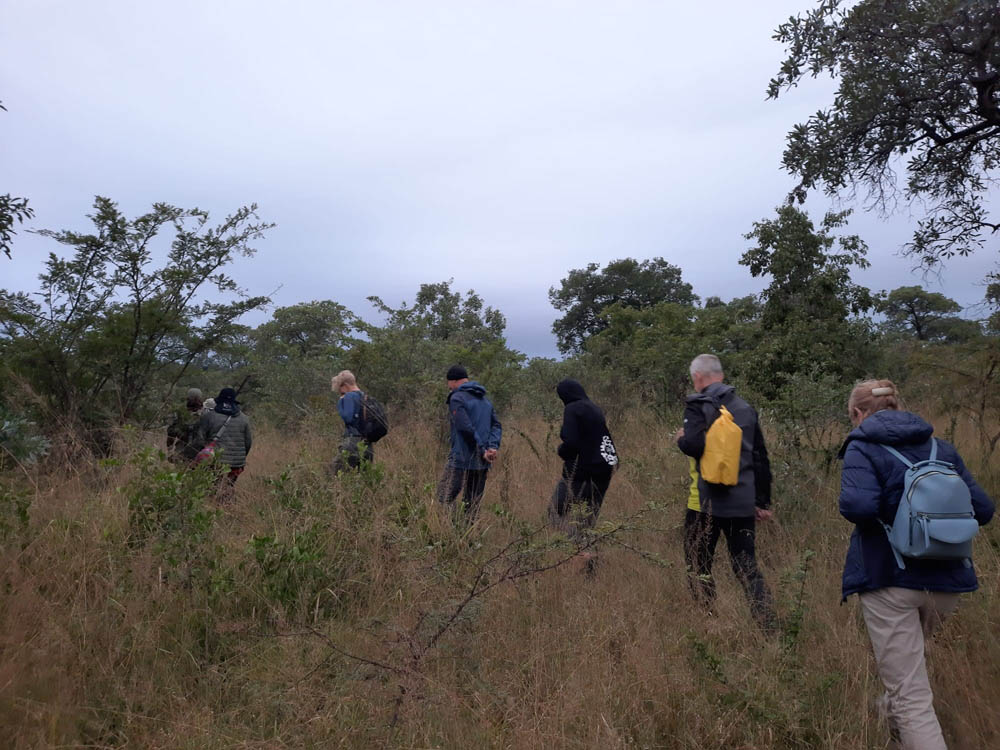 Prognozy nie były najlepsze, miało padać. O wschodzie słońca poszliśmy na bush walk po najstarszym parku narodowym RPA – Parku Krugera. Towarzyszyły nam dwie strażniczki z długą bronią, Pindi i Dominique. Udzieliły nam krótkiego instruktażu jak mamy się zachowywać podczas tego pieszego safari i powoli ruszyliśmy. Zaraz za bramą analizowaliśmy skład kupy słonia i hipopotama, poznając ich preferencje żywieniowe 😉 Na mokrej ziemi wyraźnie odciśnięty był ślad łapy dużego kota, podobno lamparta. Pindi wyjaśniła czym różni się ten ślad od odbicia łapy hieny czy geparda.