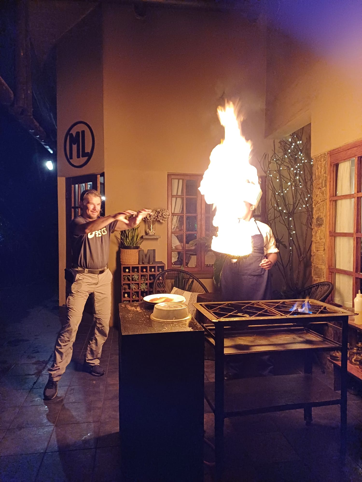Dojechaliśmy do naszej lodge krótko przez zachodem słońca. Ponownie powitano nas welcome drinkiem. Wspólna kolacja z kuflem lokalnego piwa, Simbebe, produkowanego tu z kukurydzy, wymiana wrażeń i do spania z szumem deszczu za oknem.