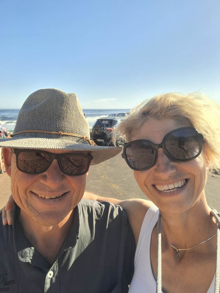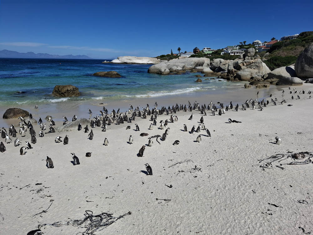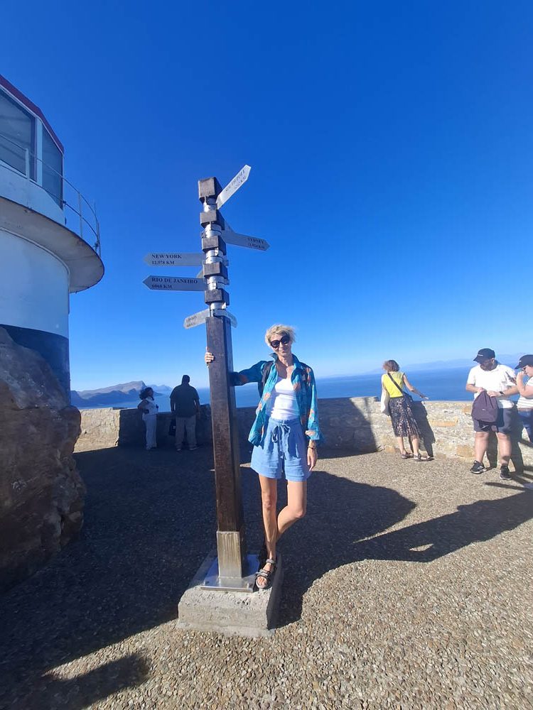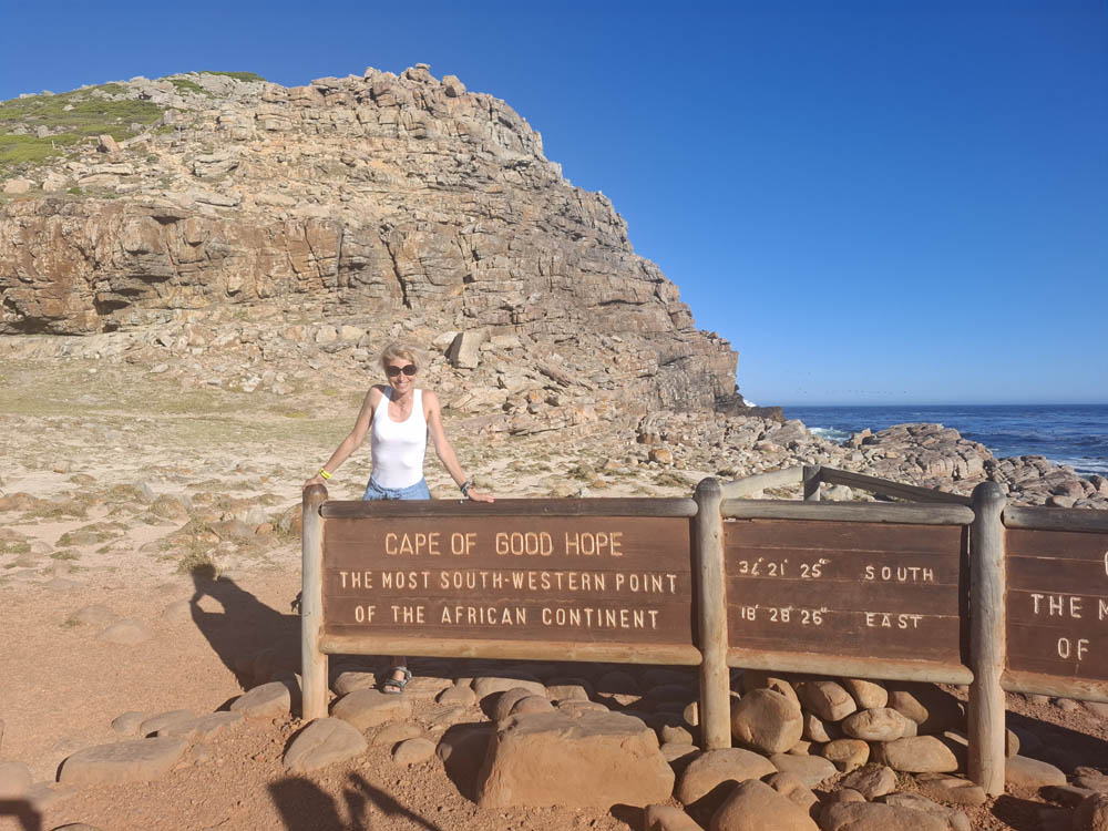 Przejechaliśmy piękną trasą Champan’s Peak, zatrzymując się na kilku punktach widokowych. Potem Boulders Beach i spotkanie z małymi pingwinami południowoafrykańskimi. Wydają odgłosy jak osły. Na plaży było ich zdecydowanie więcej niż wiosną. Po południu dotarliśmy na skraj półwyspu. Kolejką torową (podobną do naszej na Gubałówkę) wjechaliśmy na szczyt, gdzie stoi latarnia morska. Ostatni przystanek to zatoczka z tablicą „Cape of Good Hope”. Obowiązkowo pamiątkowe zdjęcie do kolekcji.