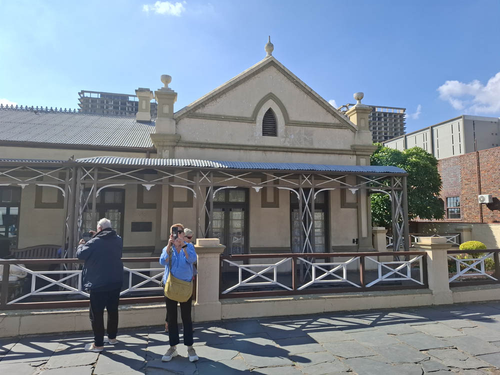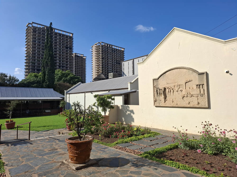 Odjechaliśmy kawałek dalej i zwiedziliśmy dom byłego burskiego Prezydenta – Paula Krugera. W tamtym czasie (koniec XIX wieku) był to pierwszy budynek z elektrycznością w mieście. Wewnątrz utworzono muzeum, pokoje były pełne mebli i przedmiotów codziennego użytku. Na tyłach domu stał wagon kolejowy, którym Kruger przemierzał Afrykę. Wagon stanowił jego centrum dowodzenia, przerobiony na część sypialnianą, kuchnię, łazienkę, gabinet. Okna sypialni Krugera wychodziły na kościół po drugiej stronie ulicy, ponoć był bardzo religijny. Ale to co wywarło na nas chyba największe wrażenie to kilka opuszczonych i zdewastowanych wieżowców stojących za nim. Wyglądały jak niedokończone budowle. Ale Nico powiedział, że w czasach apartheidu były tam biura i siedziby różnych firm. Gdy ustrój się zmienił, a w mieście zapanowała duża przestępczość firmy się wyniosły, a budynki popadły w ruiny, zostały rozkradzione ze wszystkiego co się dało. Wydawało się to nieprawdopodobnie.
