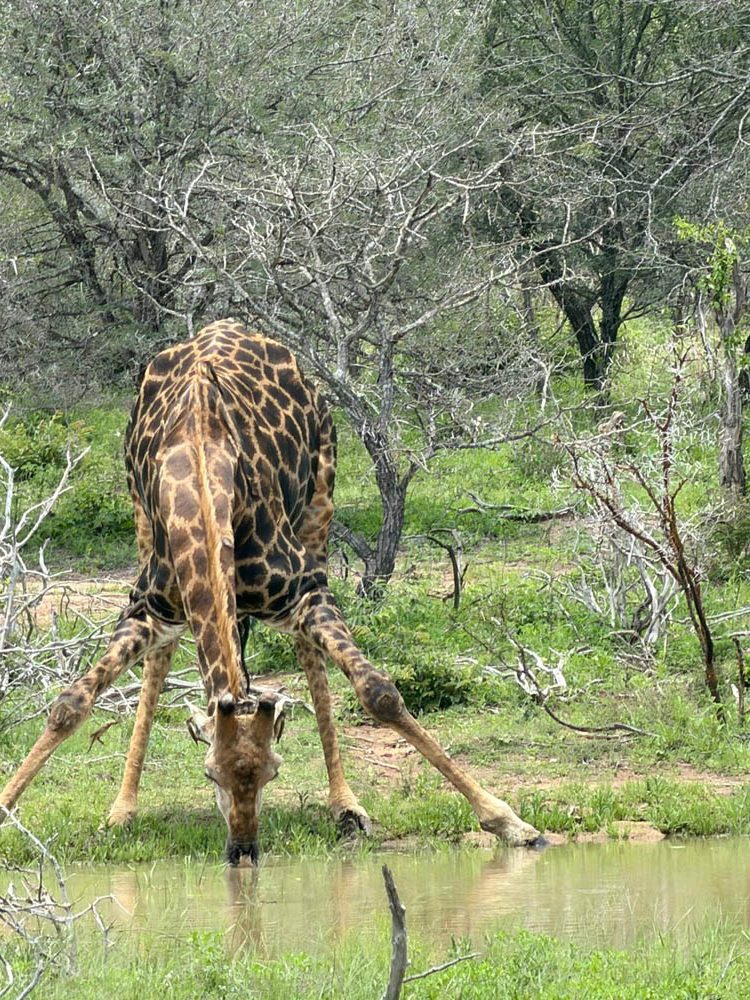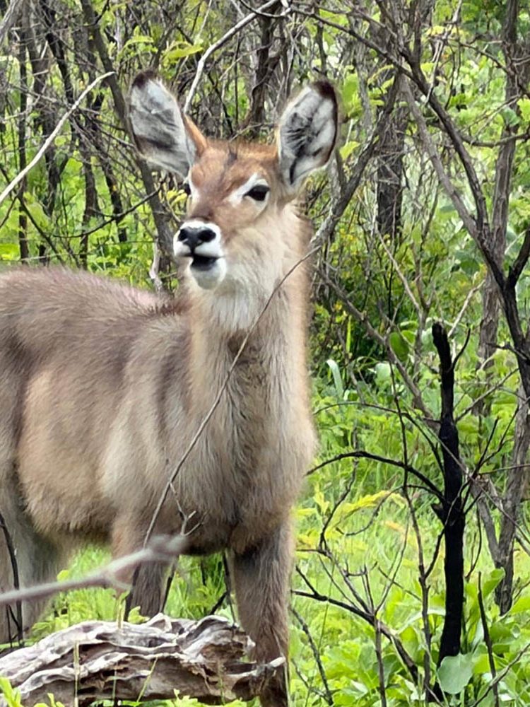 Jesteśmy w okresie, gdy wiele zwierząt ma młode. Cudowny widok. Widzieliśmy rodziny hien, żyraf, całe stada z wieloma młodymi impalami, waterbacki z charakterystyczną białą plamą w kształcie deski klozetowej na zadzie. Były też słonie, olbrzymy pasły się tuż przy drodze. Duża grupa hipopotamów charakterystycznie porykiwała w jeziorku.