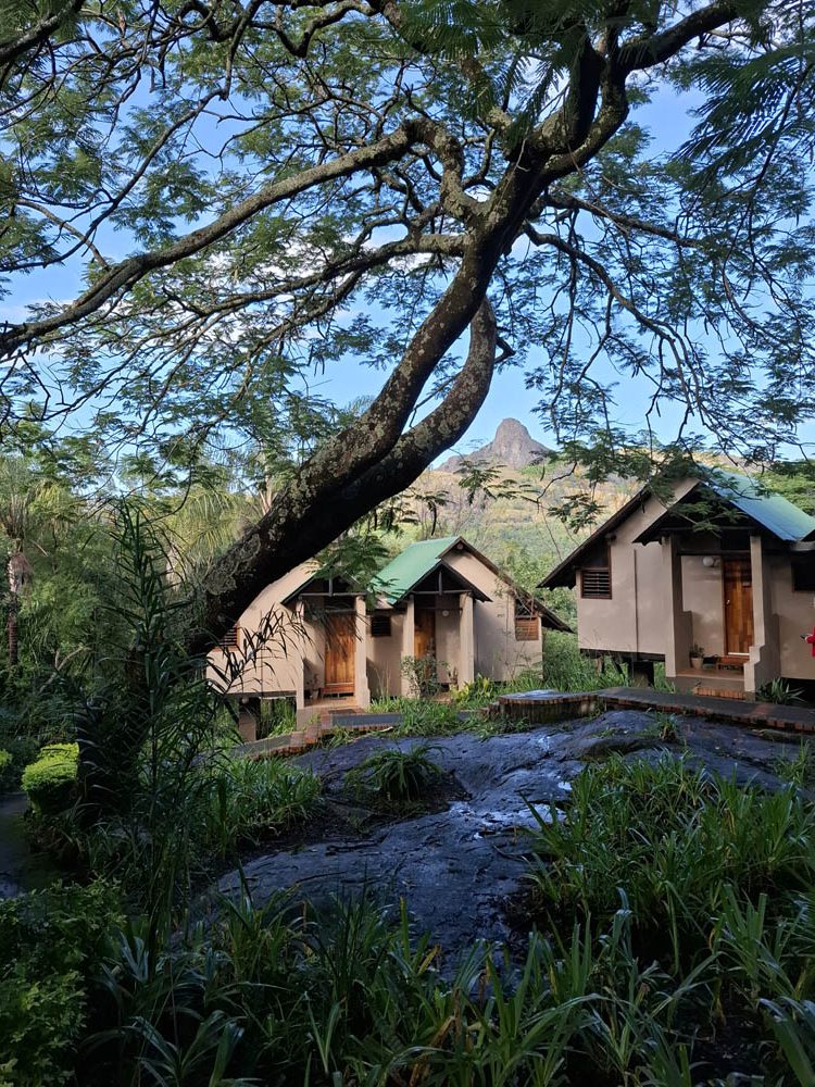 Dzień w Eswatini przywitał nas błękitnym niebem. Nasza lodge była pięknie położona, wśród bujnej zieleni z widokiem na Górę Skazańców… Wyrazisty szczyt jeszcze do niedawna (1968 roku) służył jako miejsce egzekucji skazanych, którzy podpadli królowi.