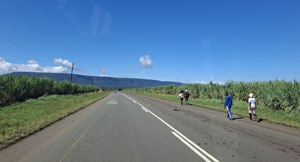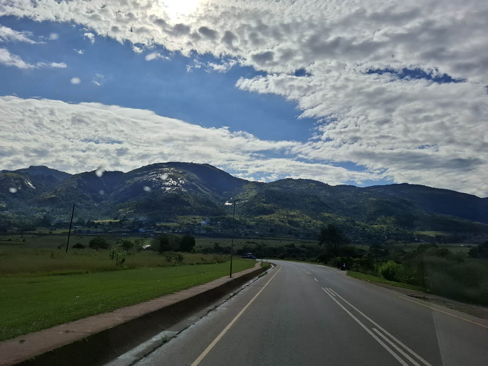 Dzięki pięknej pogodzie mogliśmy podczas dzisiejszego przejazdu podziwiać widoki. Eswatini jest górzyste i zielone. Mijaliśmy uprawy lasów i plantacje trzciny cukrowej.