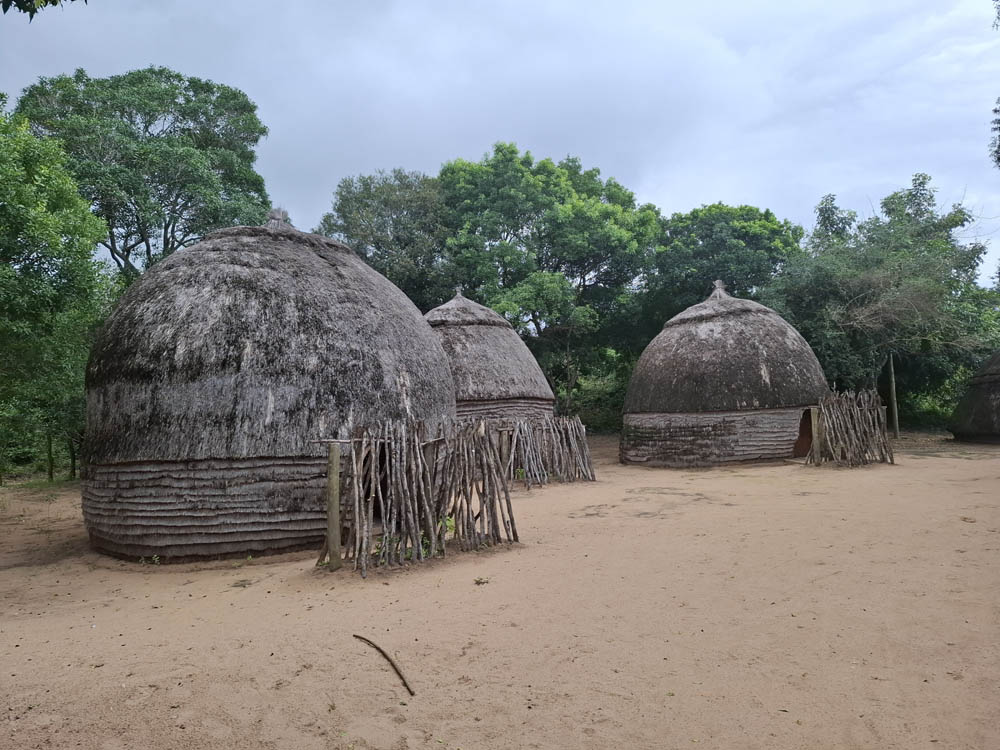Naszym kolejnym stopem była wizyta w wiosce Zulusów. Najpierw przed wejściem do ogrodzonej płotem wioski, jeden z jej mieszkańców uczył nas podstawowych zwrotów i odpowiedzi na pozdrowienia. Potem przewodniczka opowiedziała krótko o panujących zasadach. O tym, że najpierw faceci, potem kobiety. O podziale ról, o znaczeniu i różnicach w skórzanych tarczach, kobiecych ozdobach z koralików i noszonych strojach.