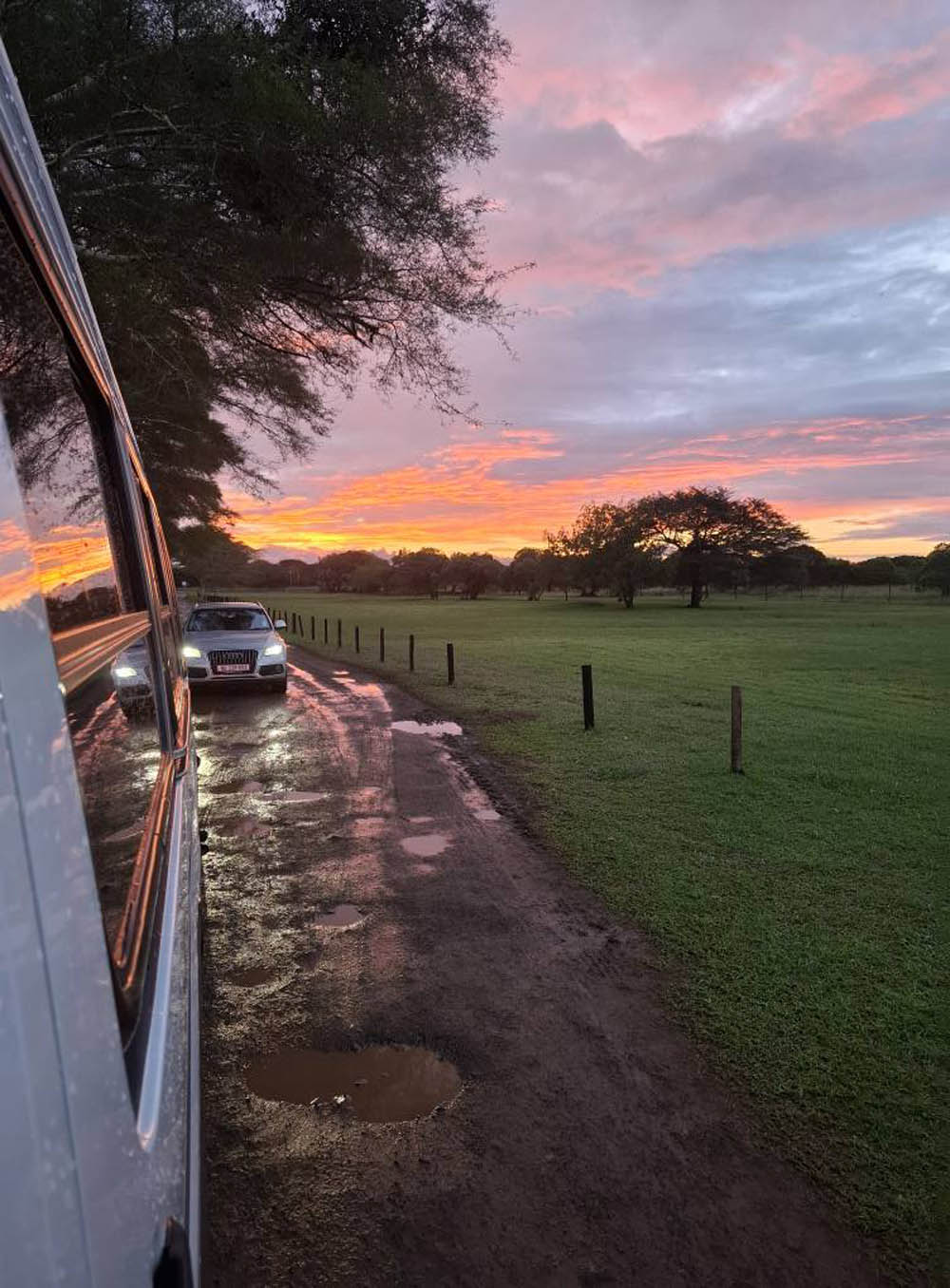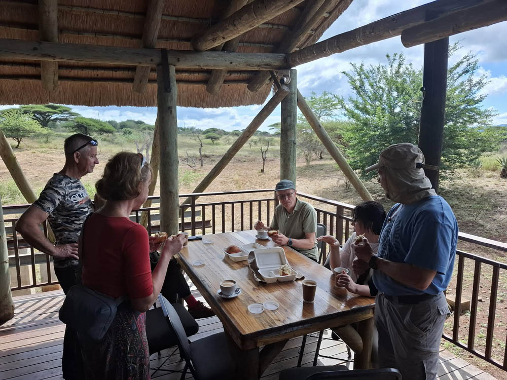 W tych nastrojach i w smugach deszczu ruszyliśmy dalej. Dojechaliśmy w okolice Hluhluwe, gdzie spędzimy dwie kolejne noce. Tuż po przekroczeniu bramy obiektu wszędzie biegały antylopy, impale i niale. Stały przy szutrowych drogach niczym nasze owce na wsiach. Jedna z dziewczyn z naszej grupy miała urodziny. Był tort i lokalny szampan, pochodzący z winnicy z okolic Kapsztadu, która została założona w 1686. Miłe zakończenie emocjonalnego dnia.