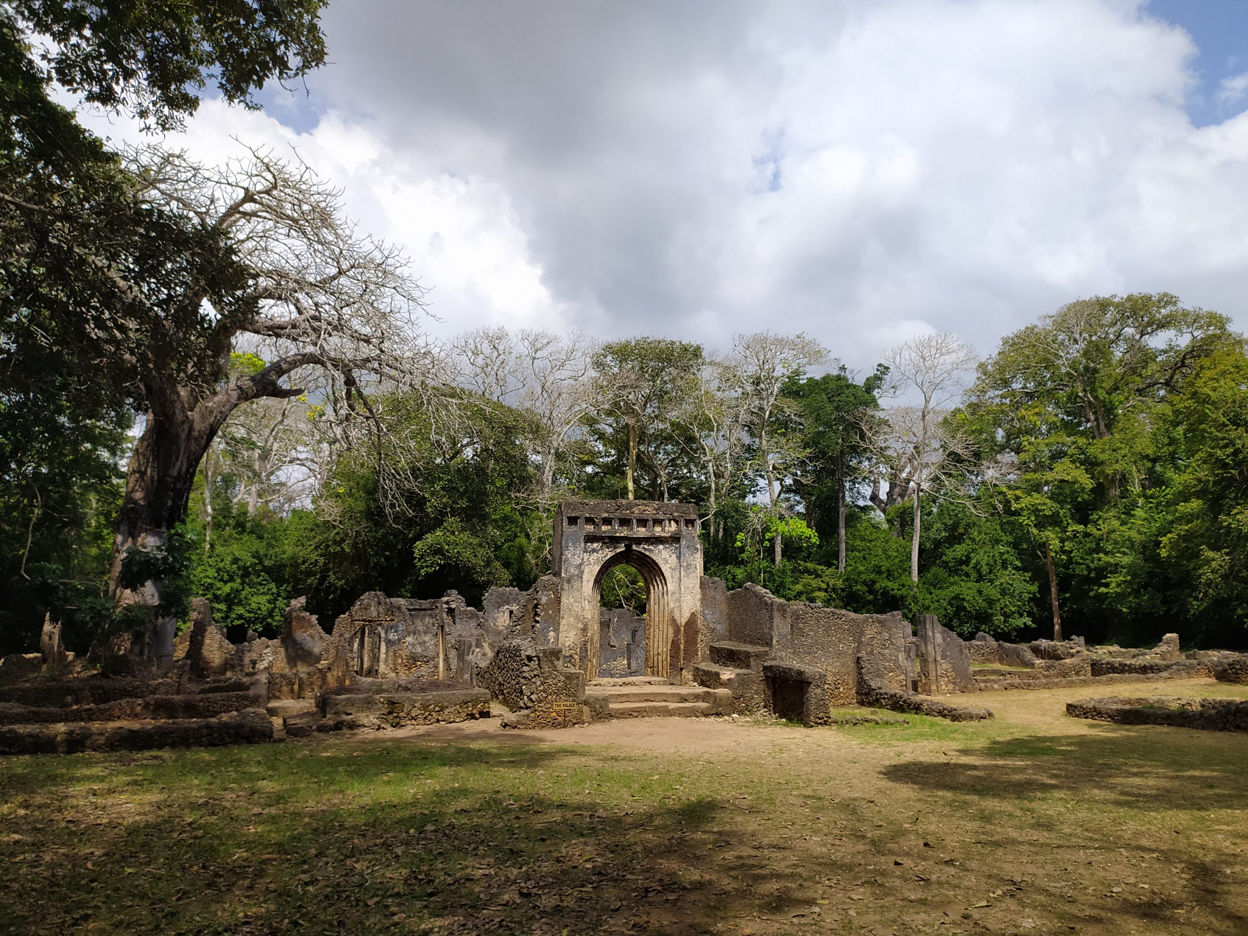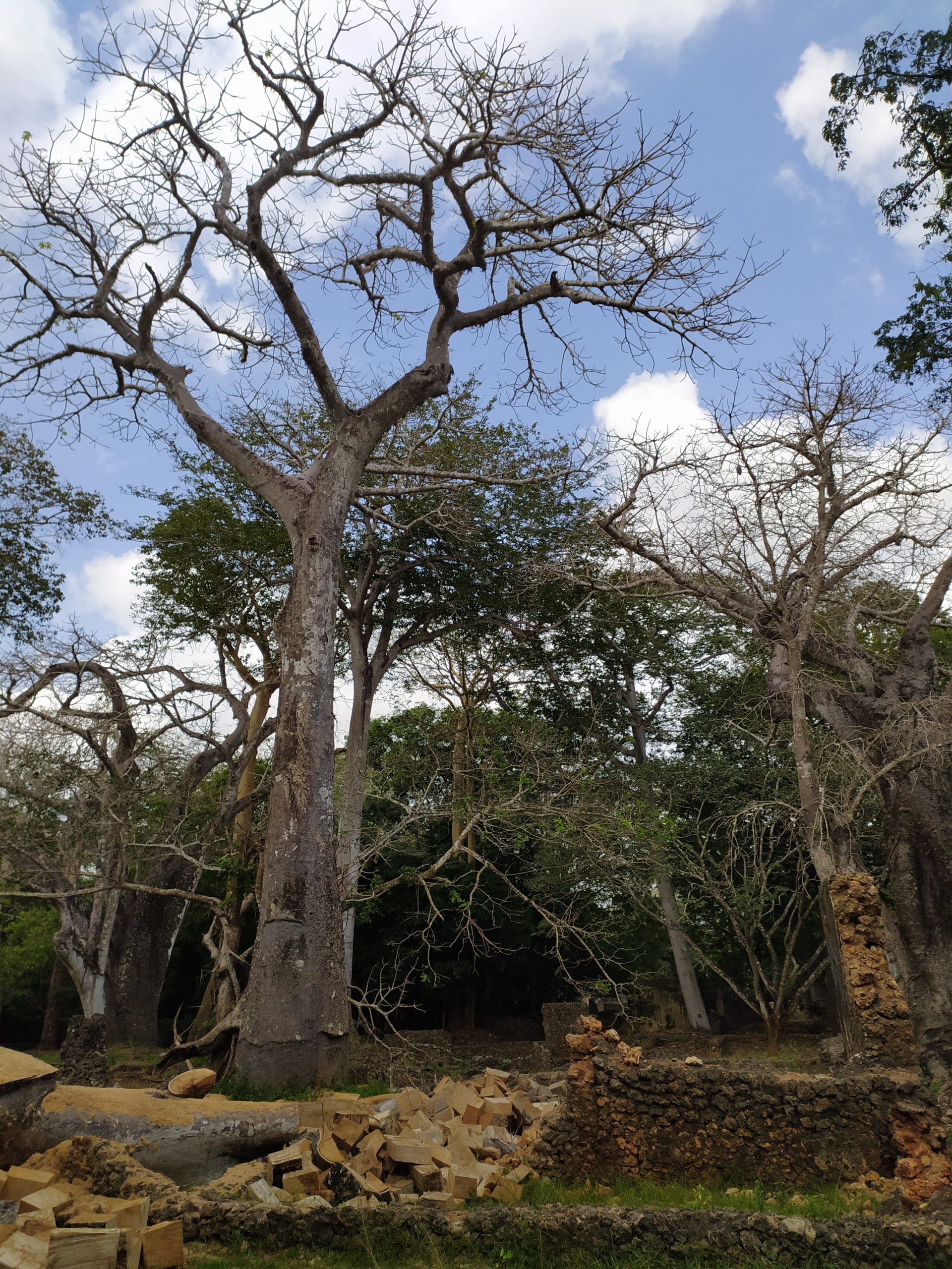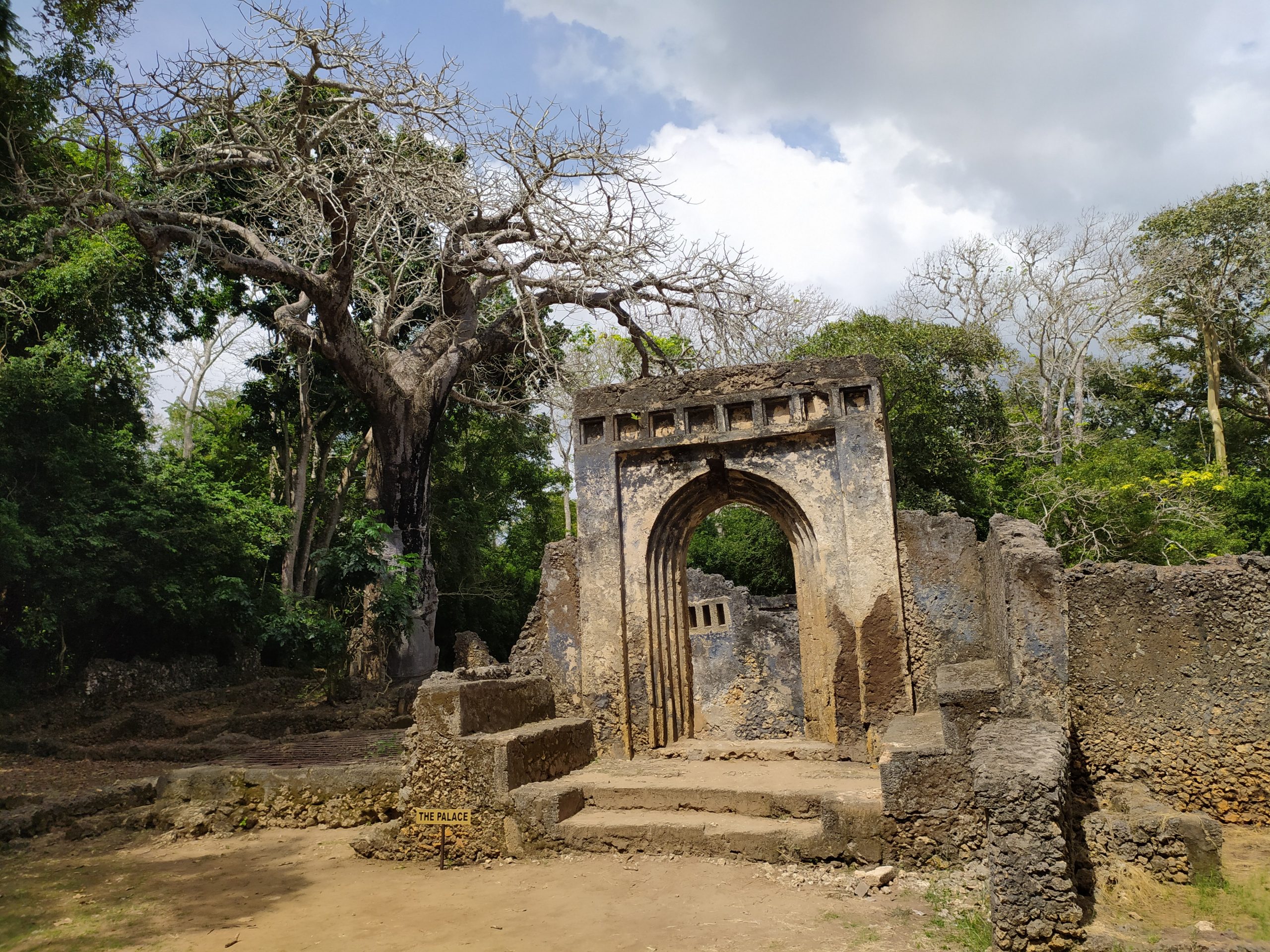 Były tam też ruiny Wielkiego Pałacu, przybytku sułtana oraz innych mniejszych domów. Dziś teren porastają wielkie ponad 200 letnie baobaby i rocket tree – drzewa tak śliskie, że nawet małpy się na nie nie wspinają. Przewodnik powiedział nam, że jak komuś uda się wspiąć do połowy tego wysokiego drzewa to w nagrodę otrzyma Range Rovera. Kilka miesięcy temu przewalił się najstarszy z tutejszych baobabów. Miał około 350 lat. Legenda głosiła, że jak mężczyzna okrążył drzewo siedem razy, to stawał się kobietą, a kobieta mężczyzną. Mhm, drzewo runęło i już tego nie sprawdzimy. Wewnątrz murów miejskich była też studnia. Nazywana obecnie „supermarketem”, a to dlatego, że nachylający się nad nią turyści gubią z głów czapki i okulary, które spoczywają na jej dnie.
