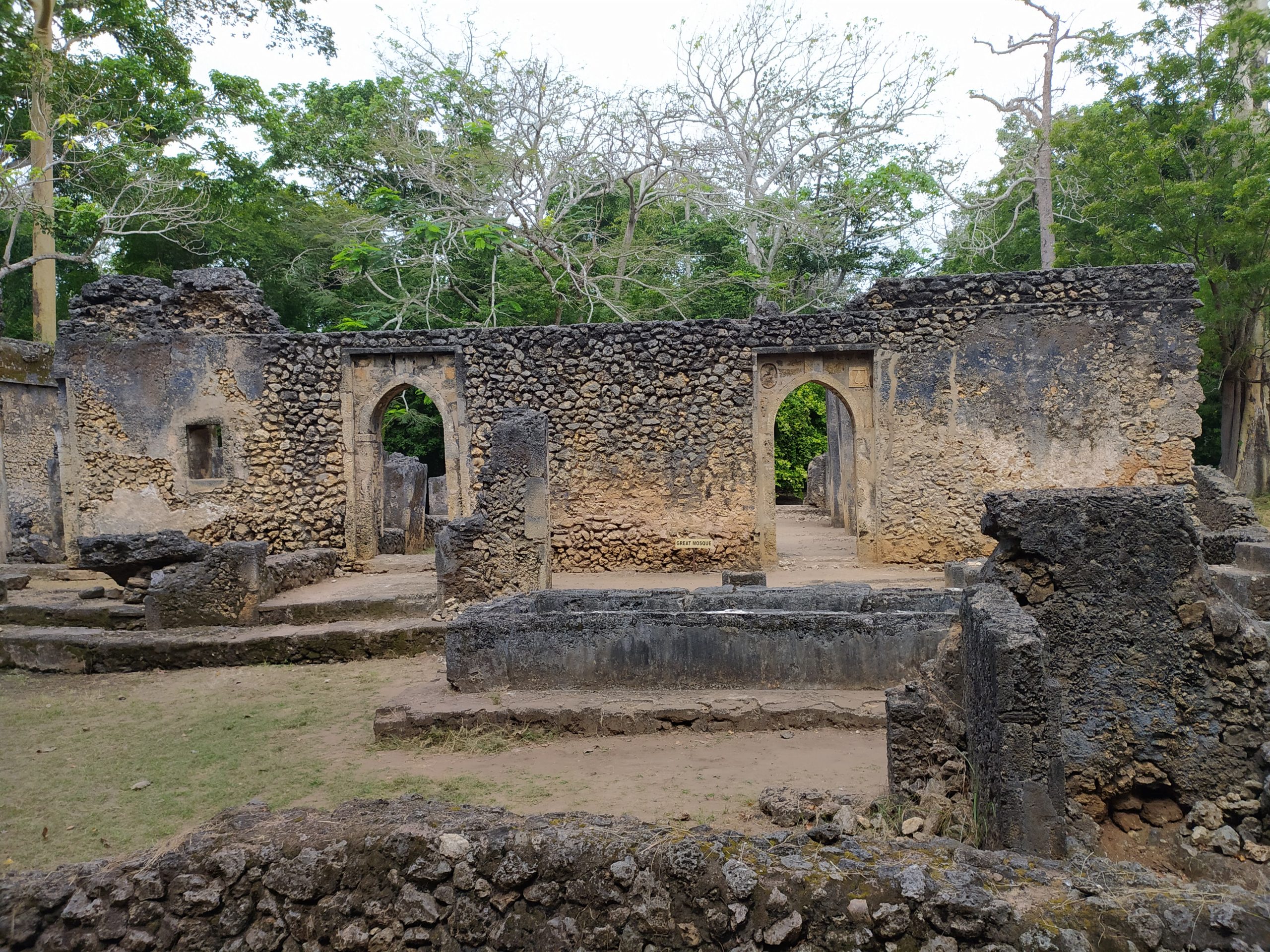 Przewodnik oprowadził nas po ruinach dawnego miasta opowiadając jego historię. Osada została założona w XI lub na początku XII wieku, okres prosperity osiągnęła w wieku XV. Żyło tu wtedy ponad 3000 mieszkańców. Miasto założone zostało prawdopodobnie przez Arabów z Omanu. Otoczone było murami, w jego centrum żyła bogata ludność, biedniejsi żyli na obrzeżach. Znajdowało się tam siedem meczetów, w jednym z nich – wielkim meczecie – nasz przewodnik pokazał nam jak dawniej imam bez użycia mikrofonu nawoływał do modlitwy.