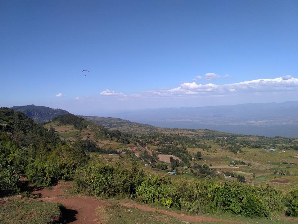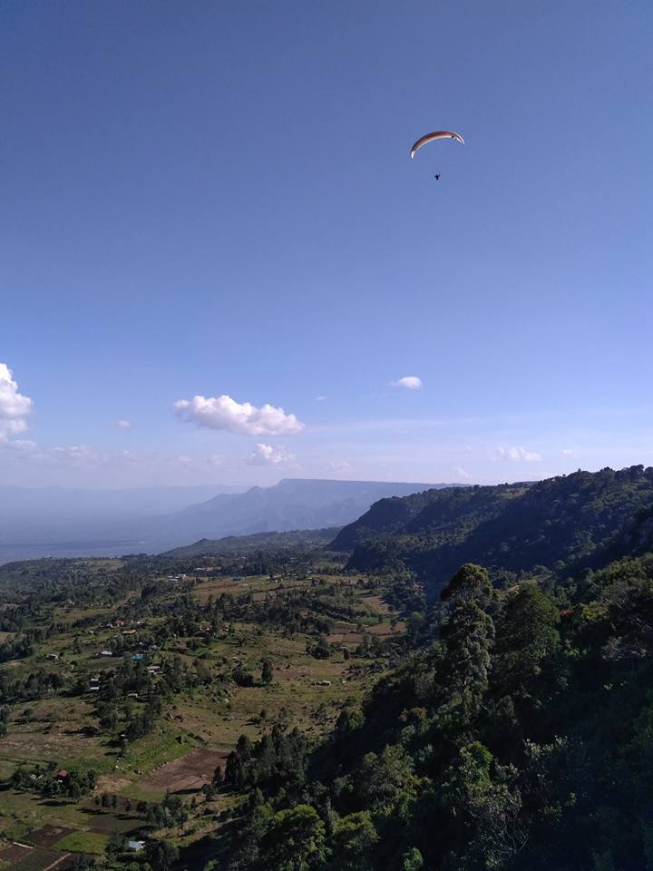 Wracając zauważyłam na niebie paralotniarzy. Rozpoczęli sezon. Dzieciaki i dorośli z zaciekawieniem obserwowali ich na tle nieba. Przynajmniej do czasu pojawienia się mnie. Trójka Kenijczyków, dwie dorosłe kobiety i jeden mężczyzna poprosili o możliwość zrobienia sobie ze mną zdjęcia. Zgodziłam się, ale sesja trwała z dobry kwadrans. Zapytałam co jest dla nich większą atrakcją, paralotnie czy mzungu. Odpowiedzieli, że jedno i drugie 😉
