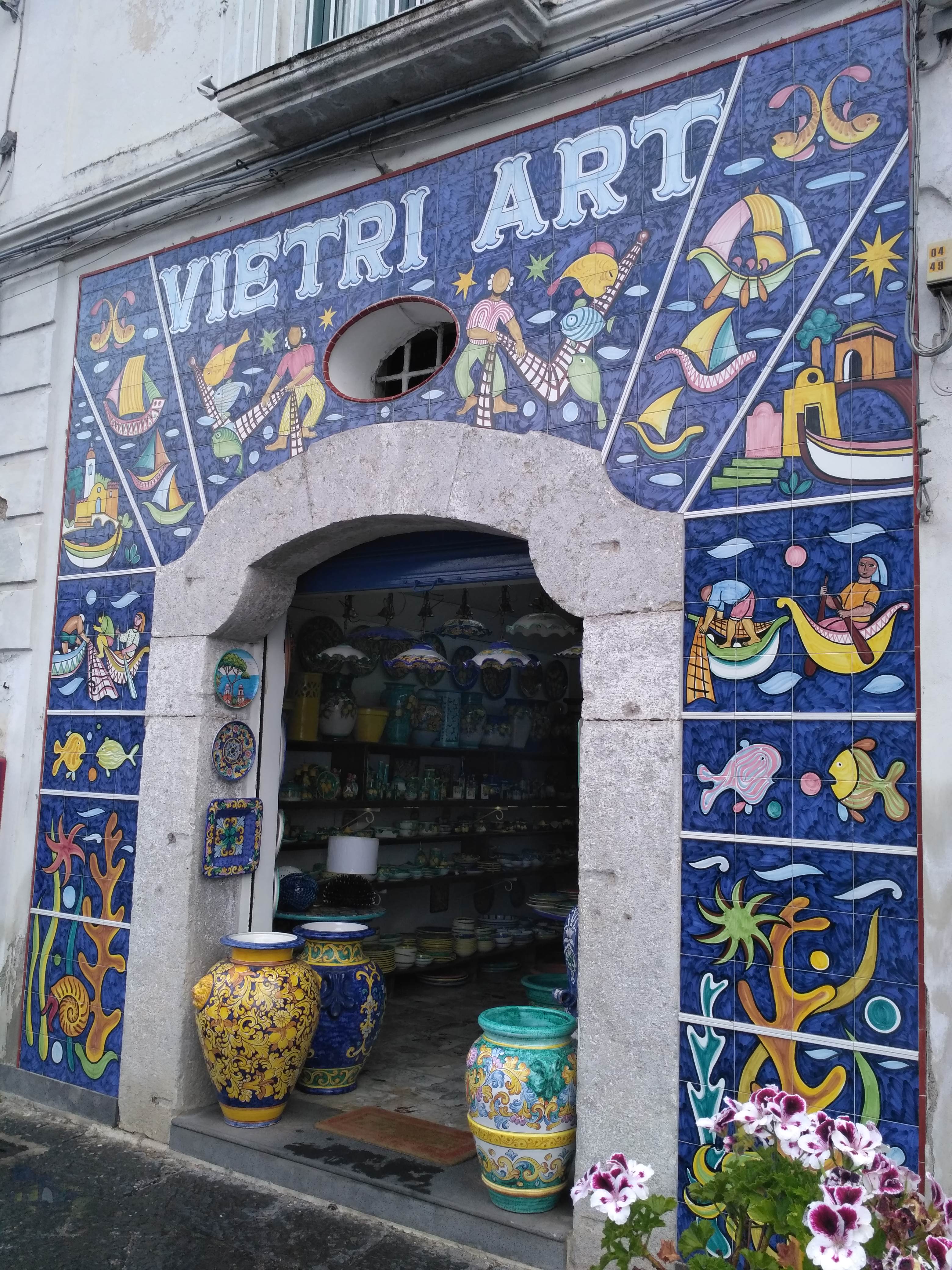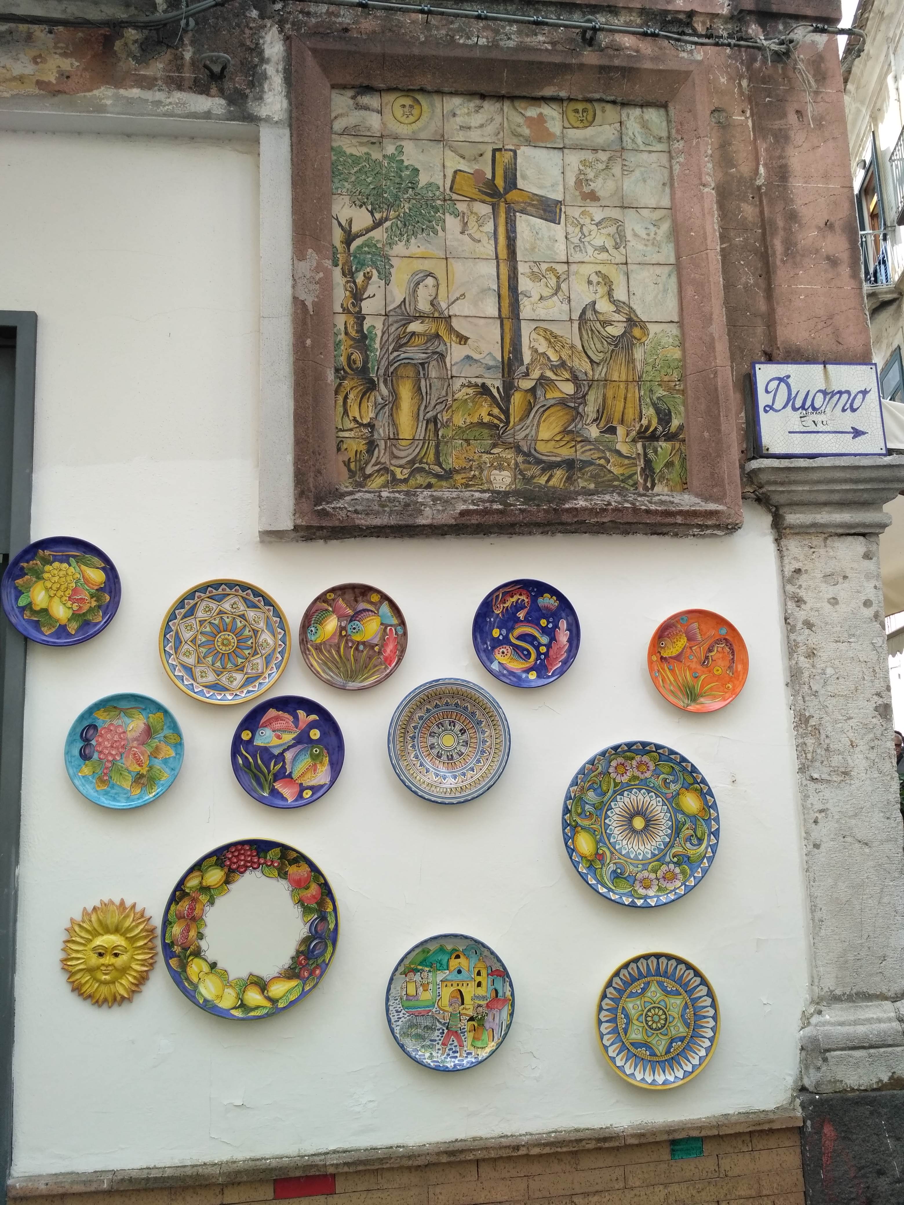 Dojechaliśmy do Vietri Sul Mare. Tu zaczyna się lub kończy, w zależności od której strony jedziemy, region wpisany na Listę Światowego Dziedzictwa Kulturowego i Przyrodniczego UNESCO. Zdecydowanie lepiej pod względem możliwości podziwiania widoków jest jechać z Vietri Sul Mare (Salerno) w kierunku Positano (Sorrento). W Vietri po objechaniu miasteczka dwukrotnie w końcu udało nam się upolować wolne miejsce na parkingu. Włosi jeżdżą bardzo chaotycznie. W Neapolu czułam się jak w Nairobi. Nie wiem jakie zasady tu panują, nawet na rondzie wydawało mi się, że każdy jechał jak chciał. Jacek stwierdził, że kobieta przed wjechaniem na rondo, spojrzała mu głęboko w oczy i po prostu wjechała, mimo, że powinna nam ustąpić przejazdu.