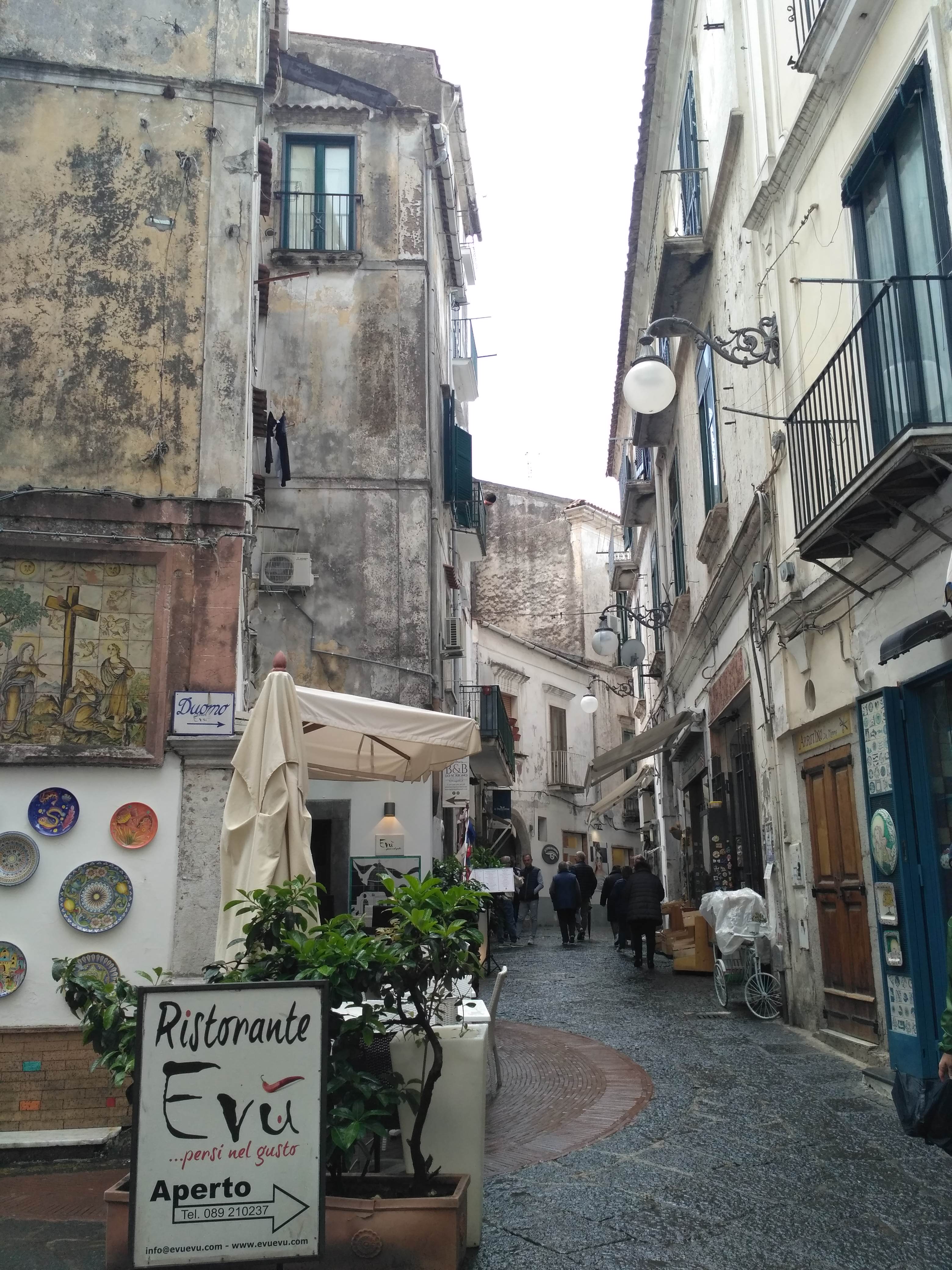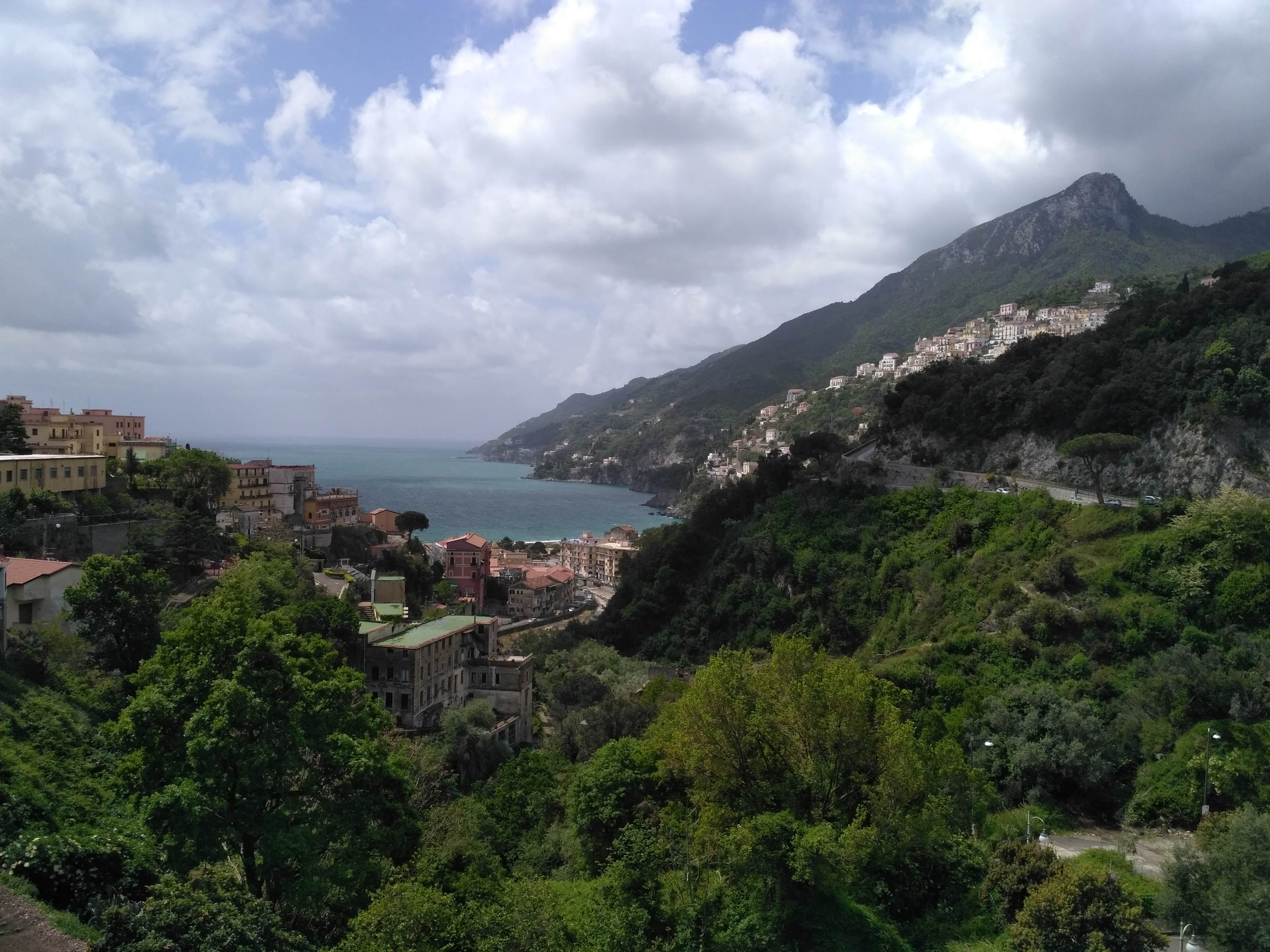 Tramonti jest dobrą lokalizacją dla osób chcących odwiedzić Wybrzeże Amalfitańskie. W miejscowościach nadmorskich kwatery są znacznie droższe, do tego dochodzi problem z parkowaniem – brak jest darmowych miejsc, a parkingi są drogie (nawet do 3-5 EUR/h). Mimo, że byliśmy przed sezonem, to w głównych miejscowościach jak Amalfi mieliśmy problem ze znalezieniem wolnego miejsca. Przy ładnej pogodzie, a zwłaszcza w wakacje są tu podobne straszne tłumy, a jedyna droga łącząca miejscowości na wybrzeżu jest zakorkowana. Dlatego miejscowi polecają wybranie wycieczki łodzią i podziwianie wybrzeża z morza. Podczas naszego pobytu do tej opcji zniechęciła nas nienajlepsza pogoda i duże fale, które na pewno wywołałyby u mnie i u Janka chorobę morską.