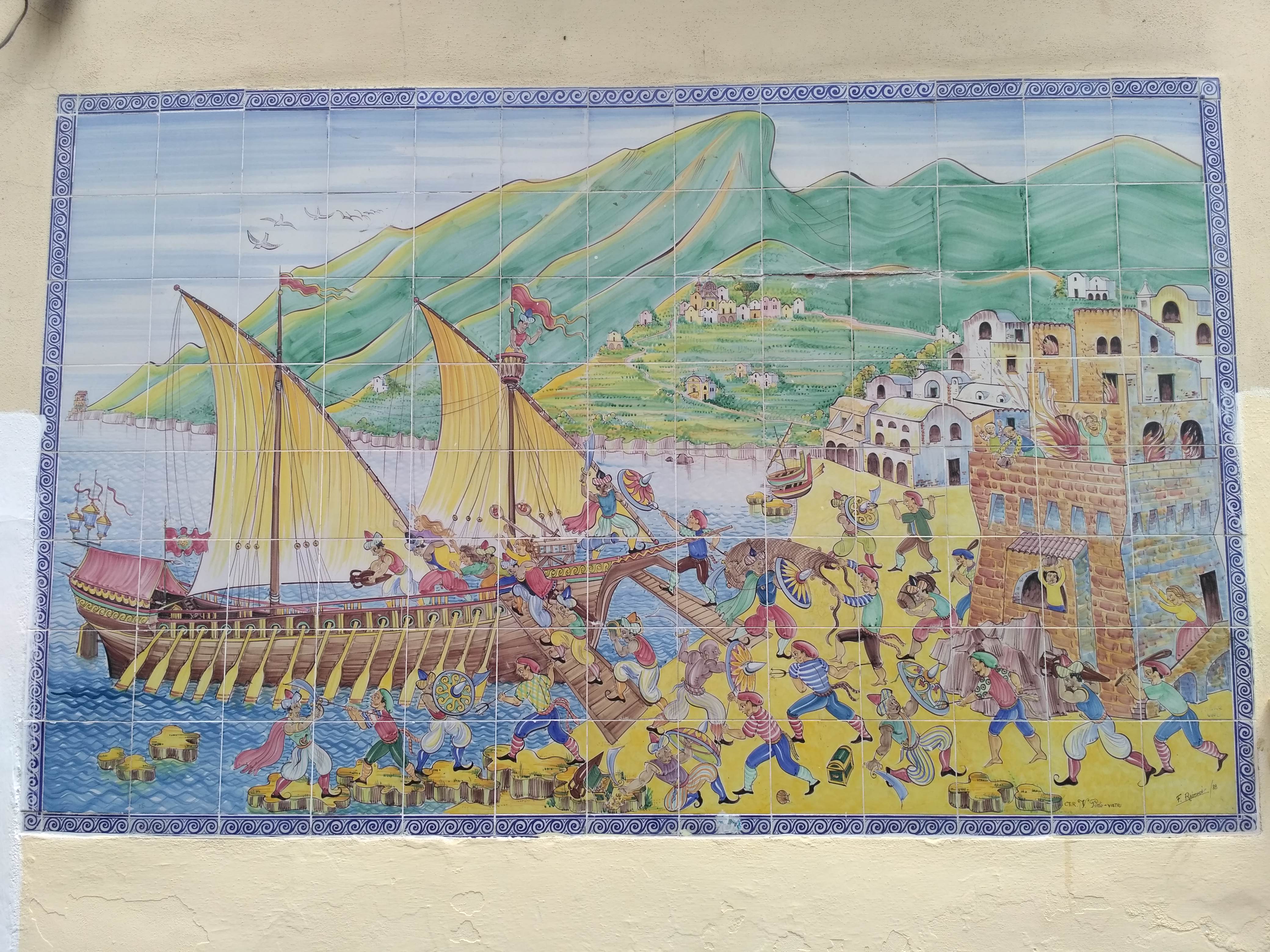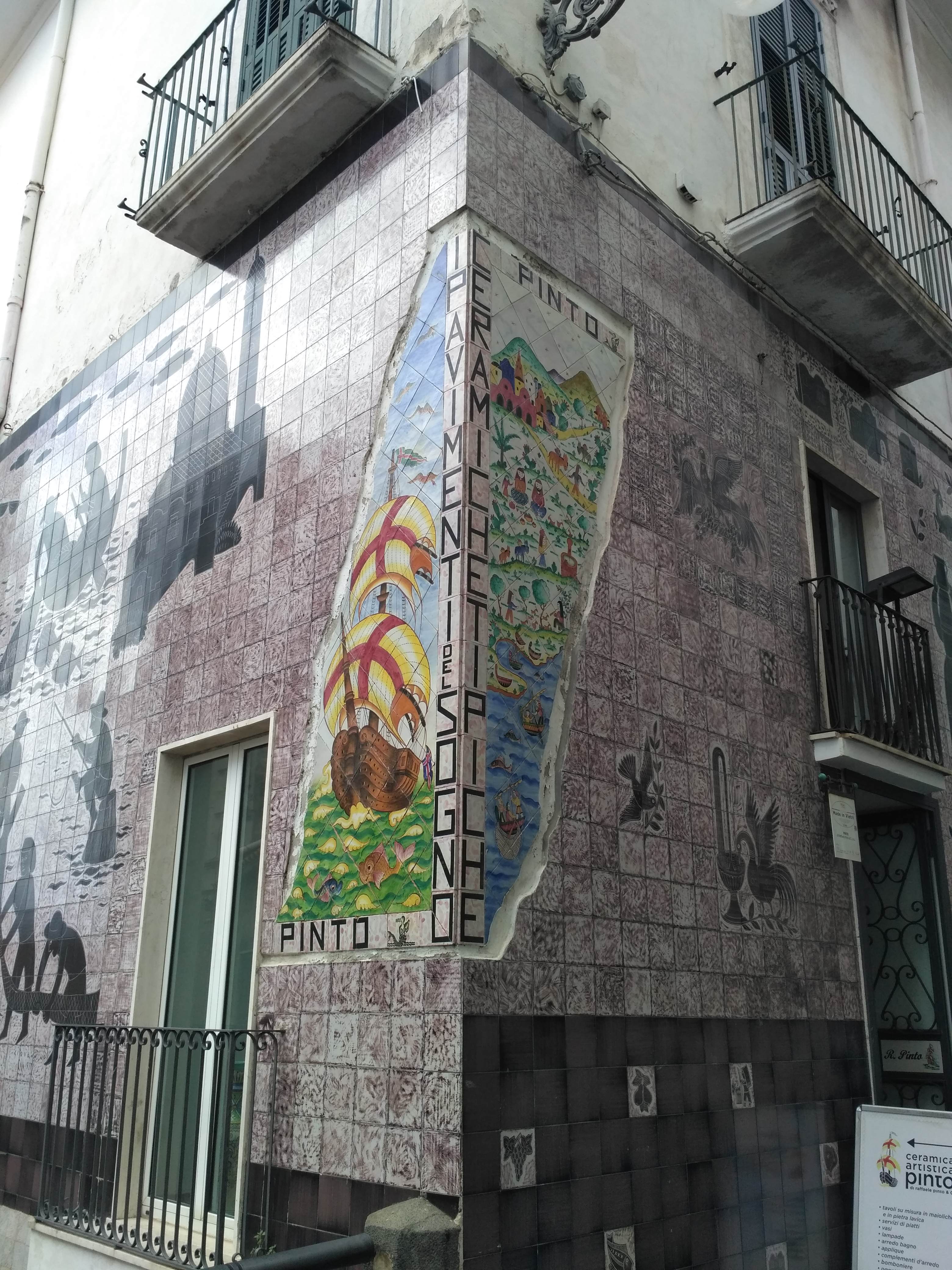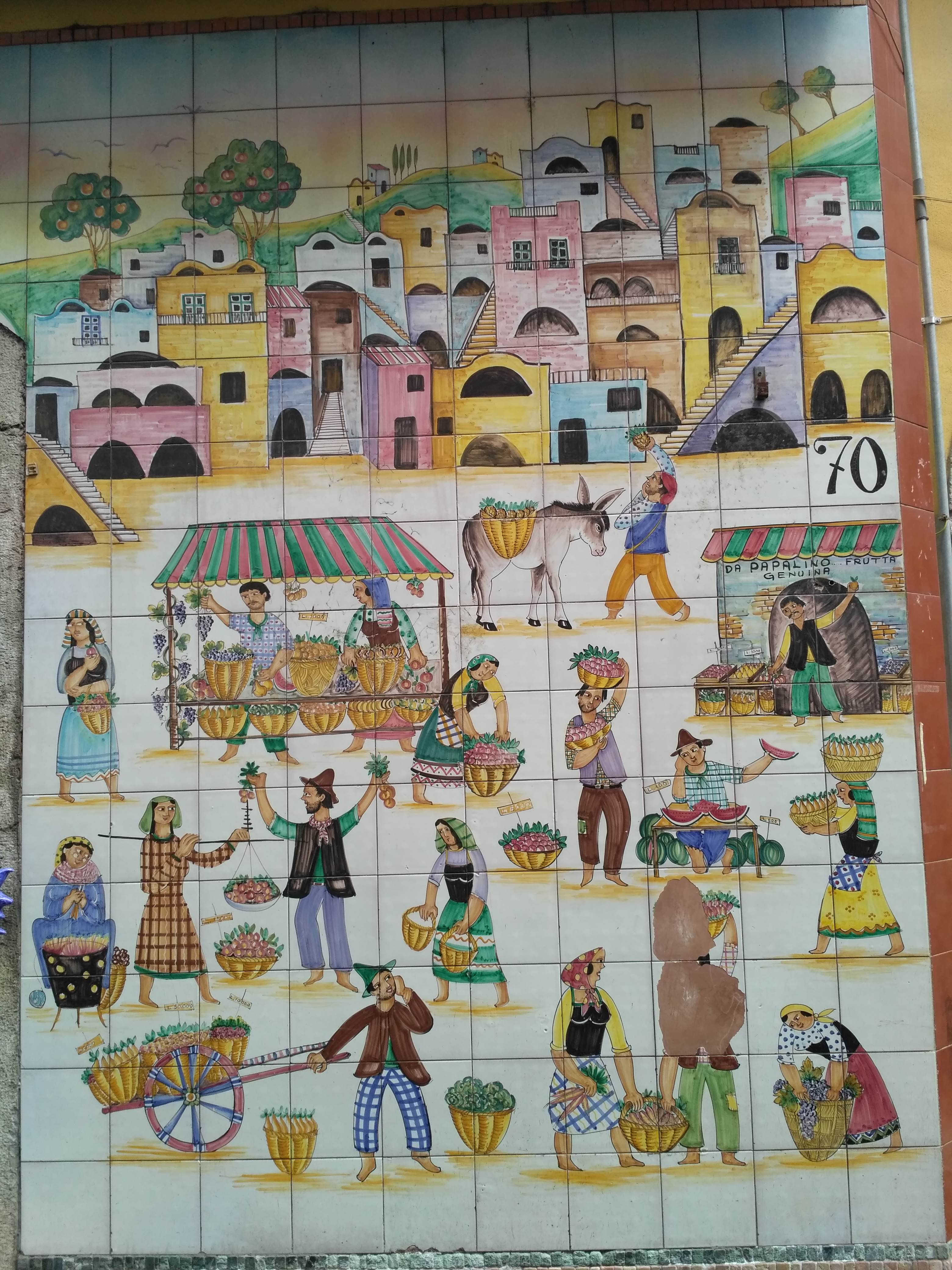 W Vietri, w strugach deszczu pobiegliśmy do pobliskiej kawiarni. Zamówiliśmy słodkie co nieco i gorącą herbatę na rozgrzanie się. Po jakimś czasie przestało padać i poszliśmy się przejść wąskimi uliczkami miasta. Ten rejon Włoch słynie z upraw cytryn, mnóstwo tu też sklepów i galerii z ceramiką, gdzie cytryny stanowią główny motyw ozdobny. Płytki ceramiczne zdobią też mury budynków, a obrazki na nich opowiadają różne historie. Poszwędaliśmy się trochę i ruszyliśmy w kierunku Neapolu. Dobrze, że mieliśmy trochę zapasu czasu, bo nawigacja wyprowadziła nas w jakieś dziwne miejsca. W końcu dotarliśmy na lotnisko. Oddaliśmy auto w wypożyczalni i nieźle się zdziwiliśmy, gdy się okazało, że przedni zderzak po stronie kierowcy jest zarysowany. My na pewno nigdzie nie stuknęliśmy, więc musiał ktoś nas otrzeć gdzieś na parkingu. Dobrze, że mieliśmy wykupione dodatkowe ubezpieczenie, które znosiło nasz udział własny w ewentualnej szkodzie do zera.
