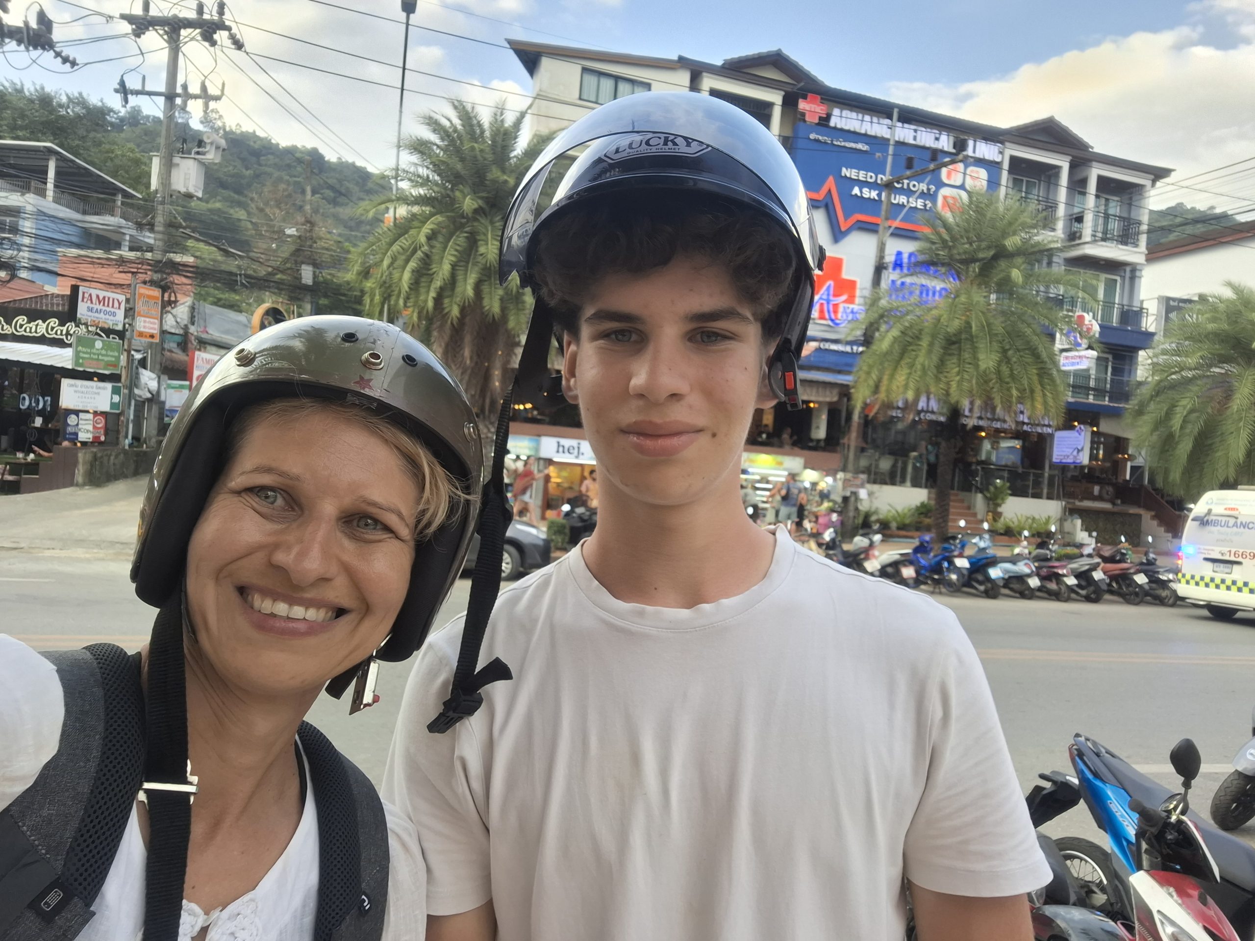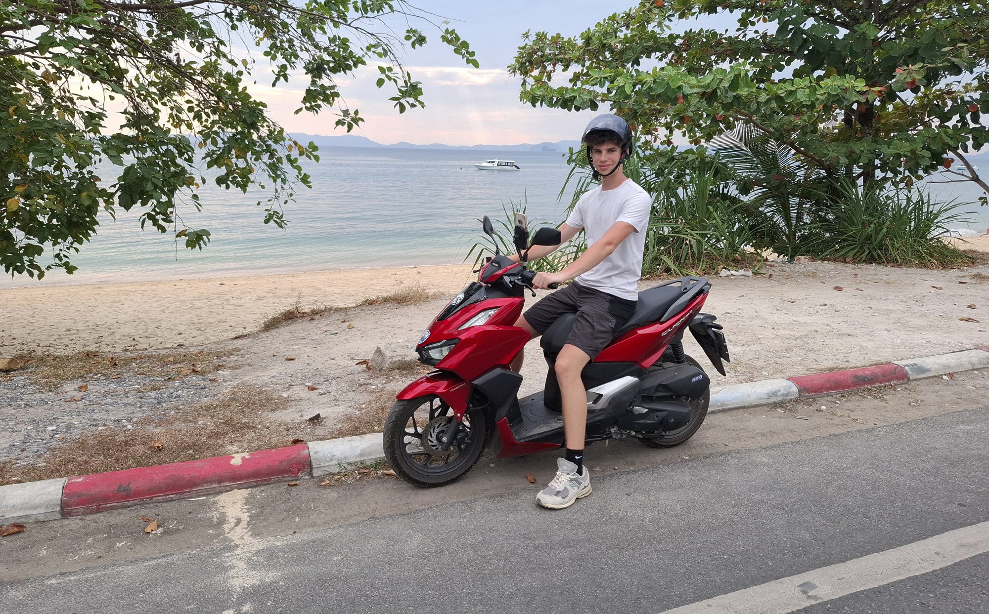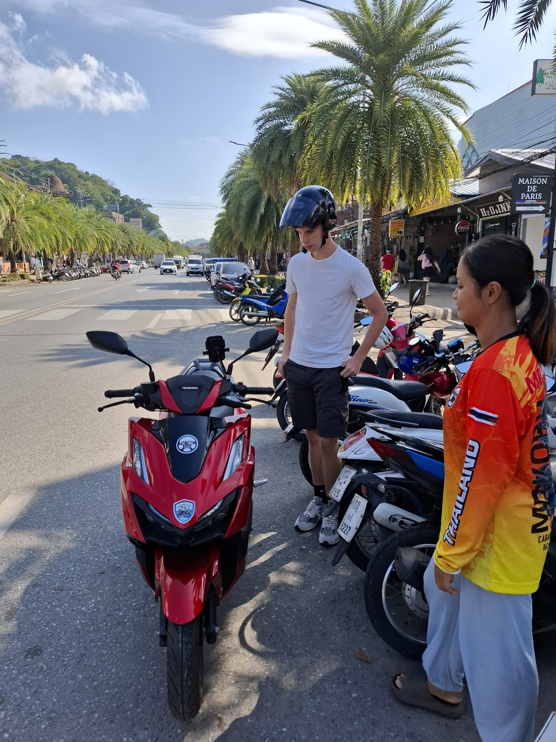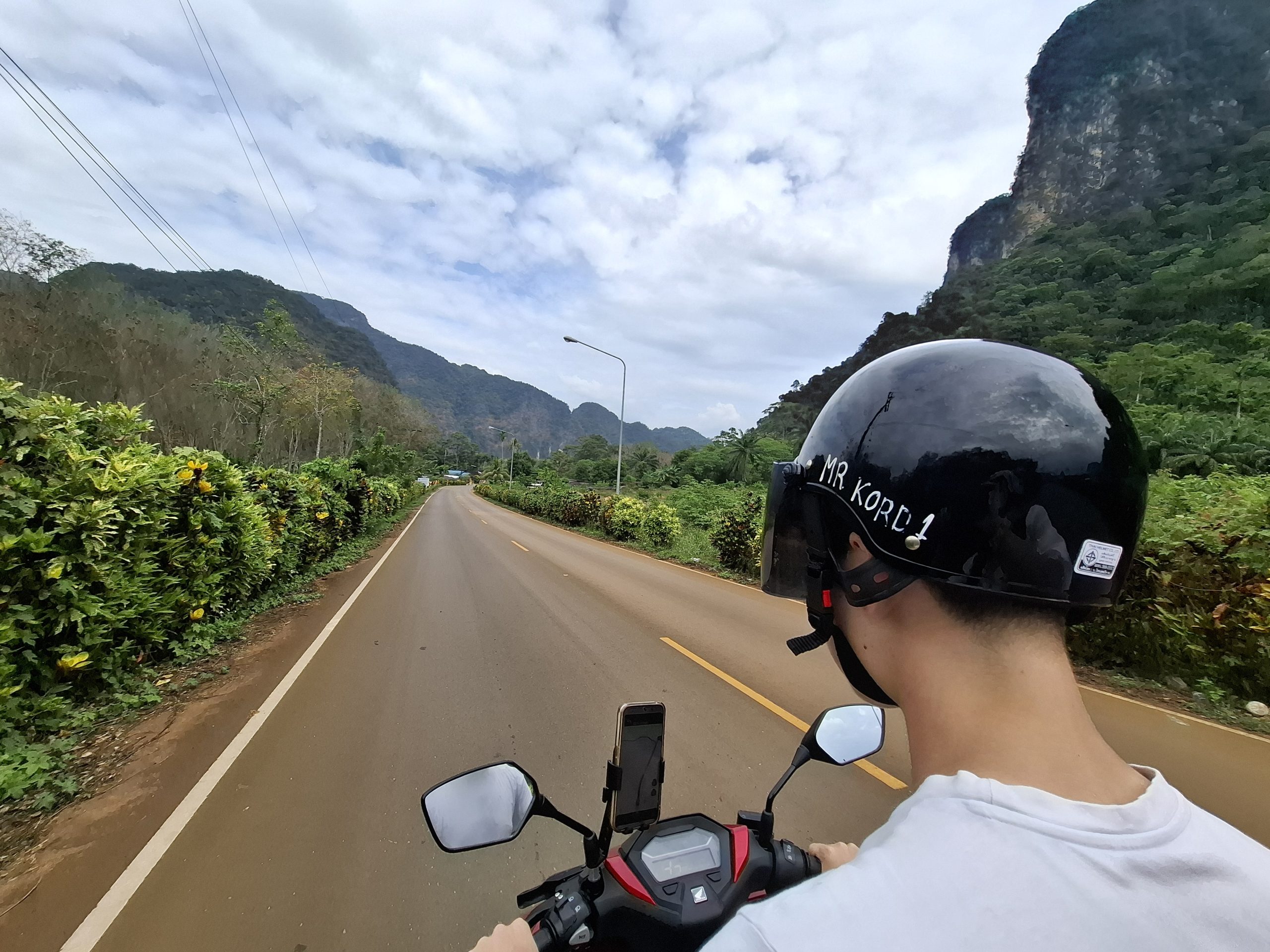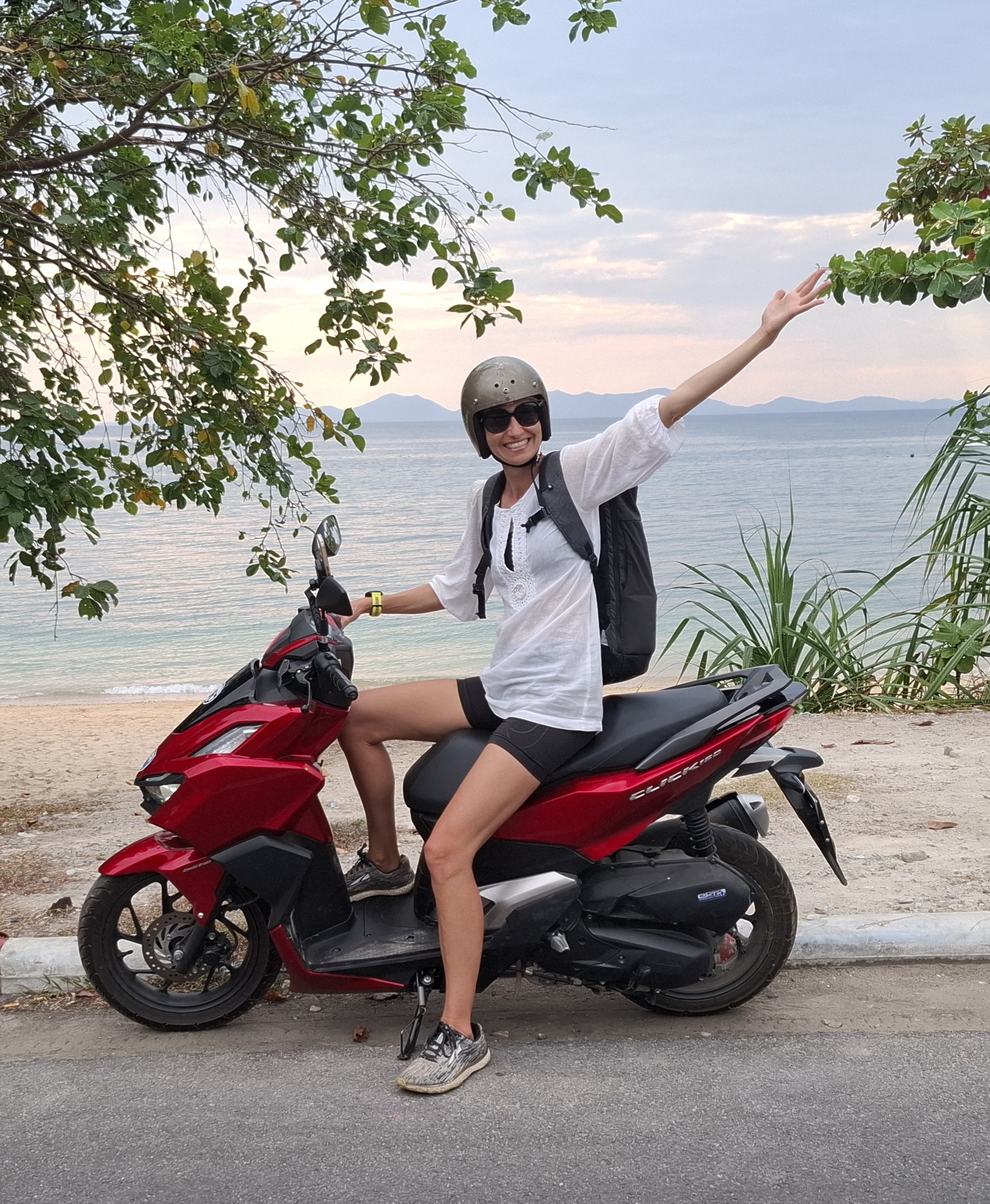 Janek marzył, by pojeździć skuterem w Tajlandii od momentu, gdy tylko kupiliśmy tu bilety. Często o tym wspominał, a ja jako zagorzała przeciwniczka motorów stanowczo oponowałam. Ale był wytrwały i nie nachalny w tym swoim uporze i w końcu sama nabrałam ochoty na taką jazdę. Warunek był jeden, to on to organizuje – ogarnia wypożyczalnię, ustala trasę starając się pomijać główne drogi oraz wyszukuje atrakcje. No i spisał się na medal!