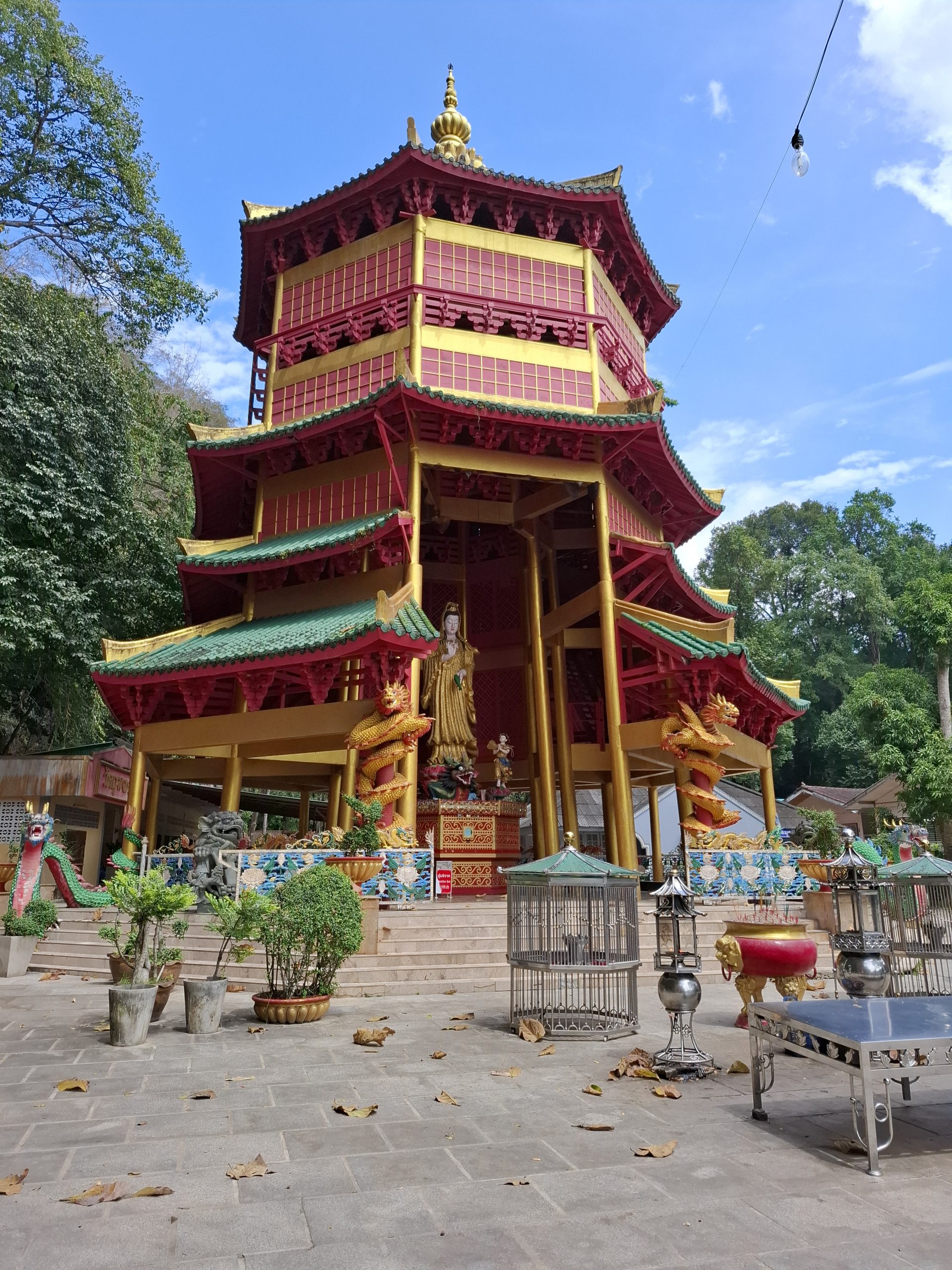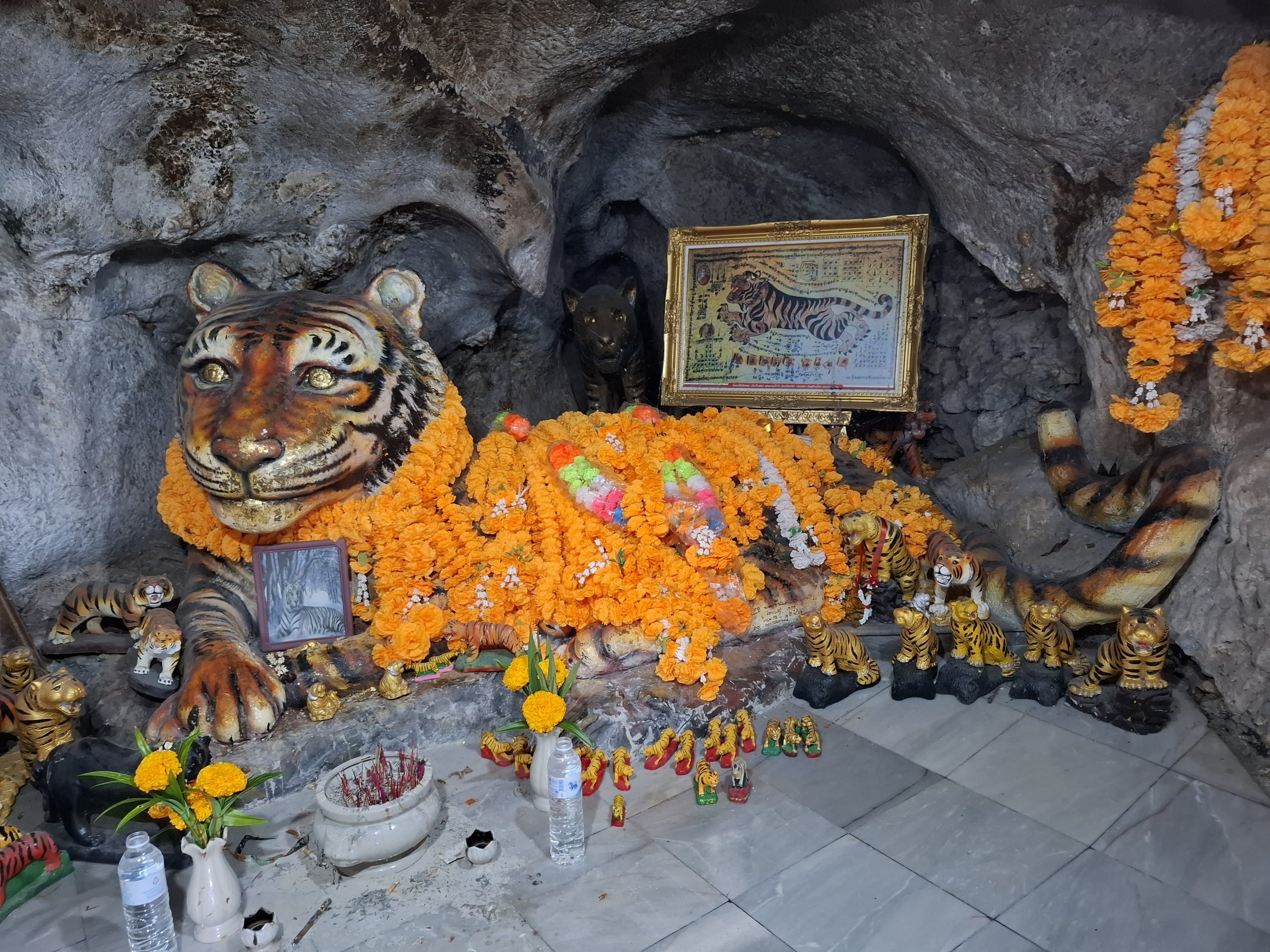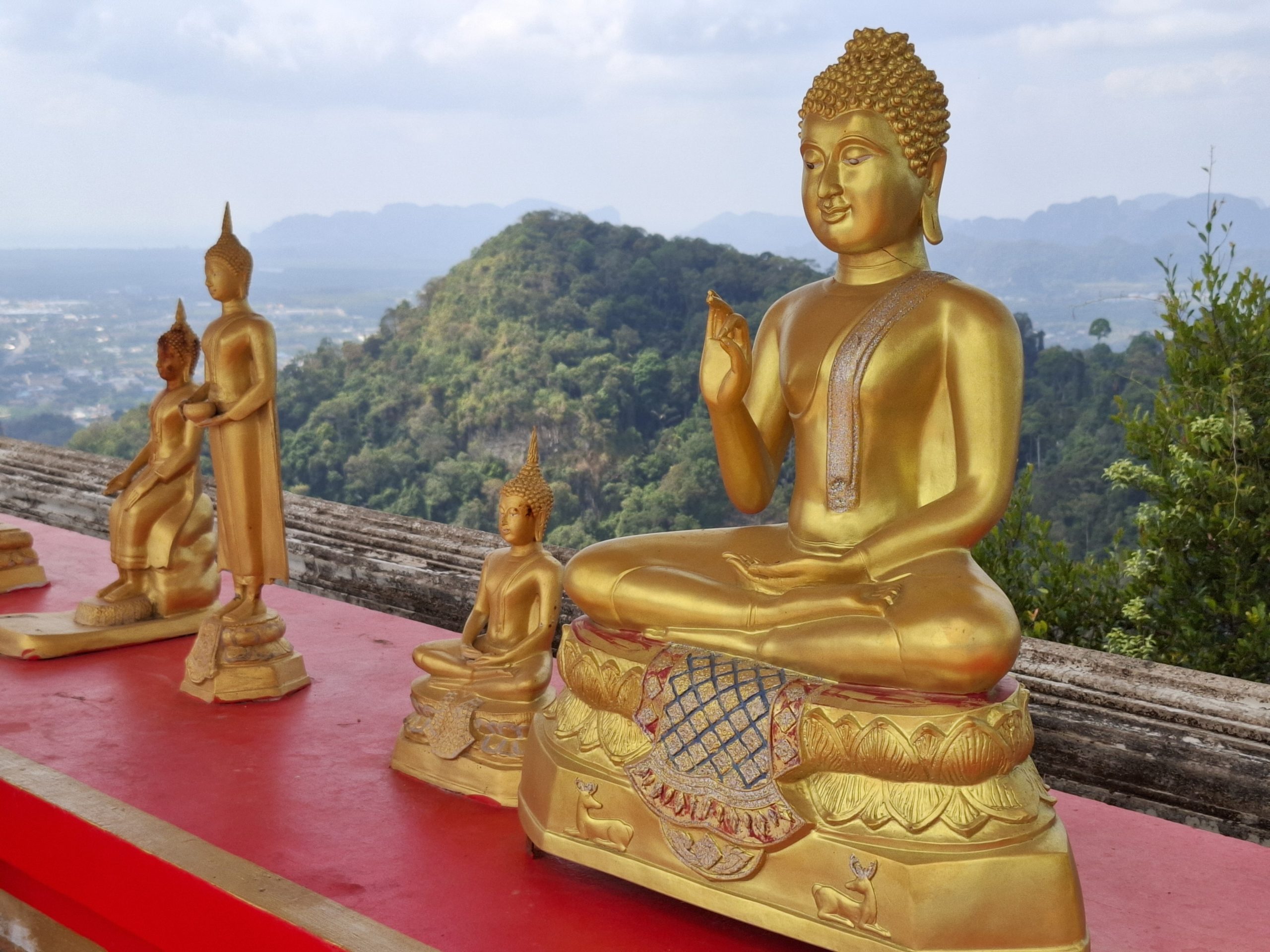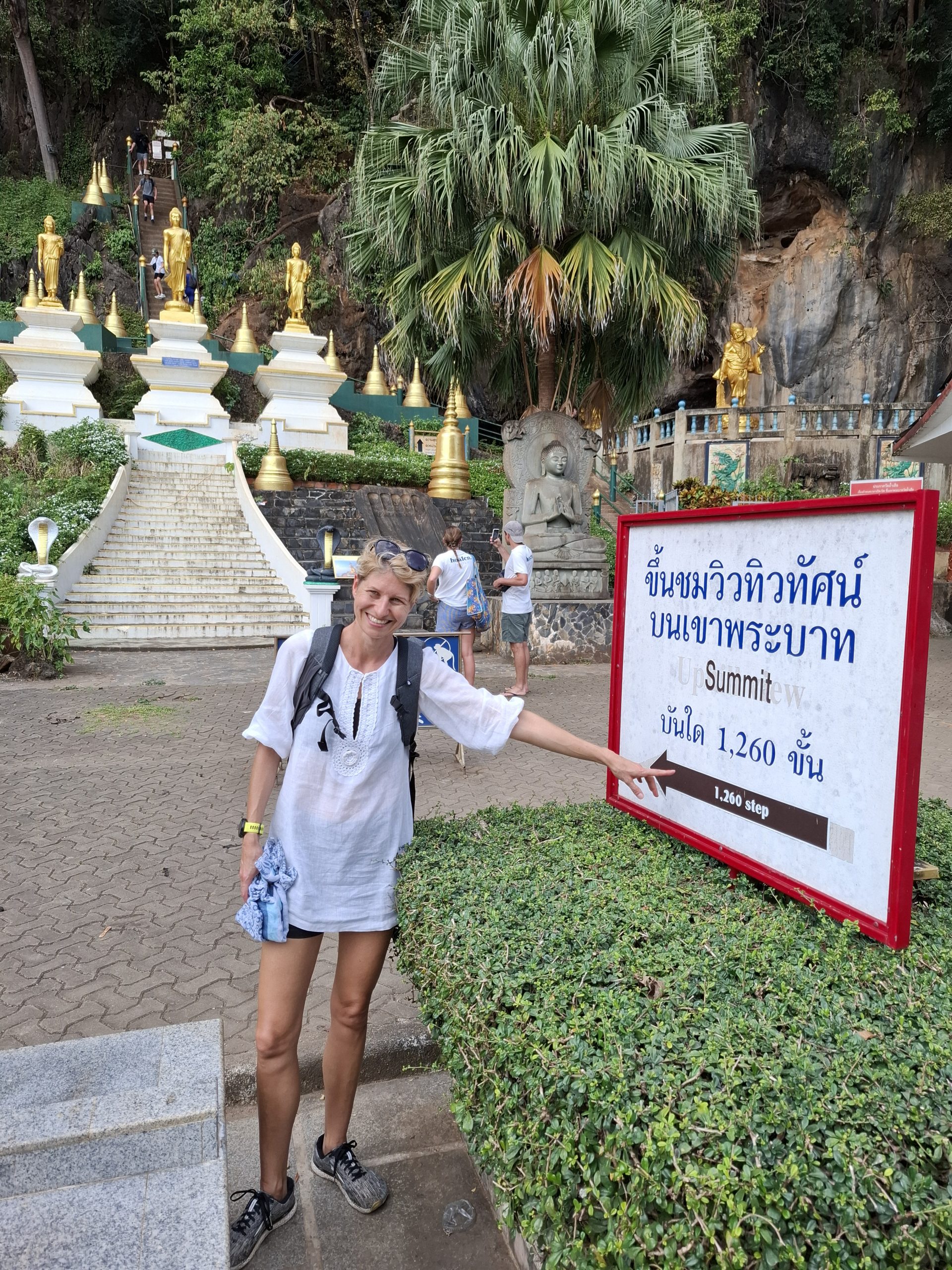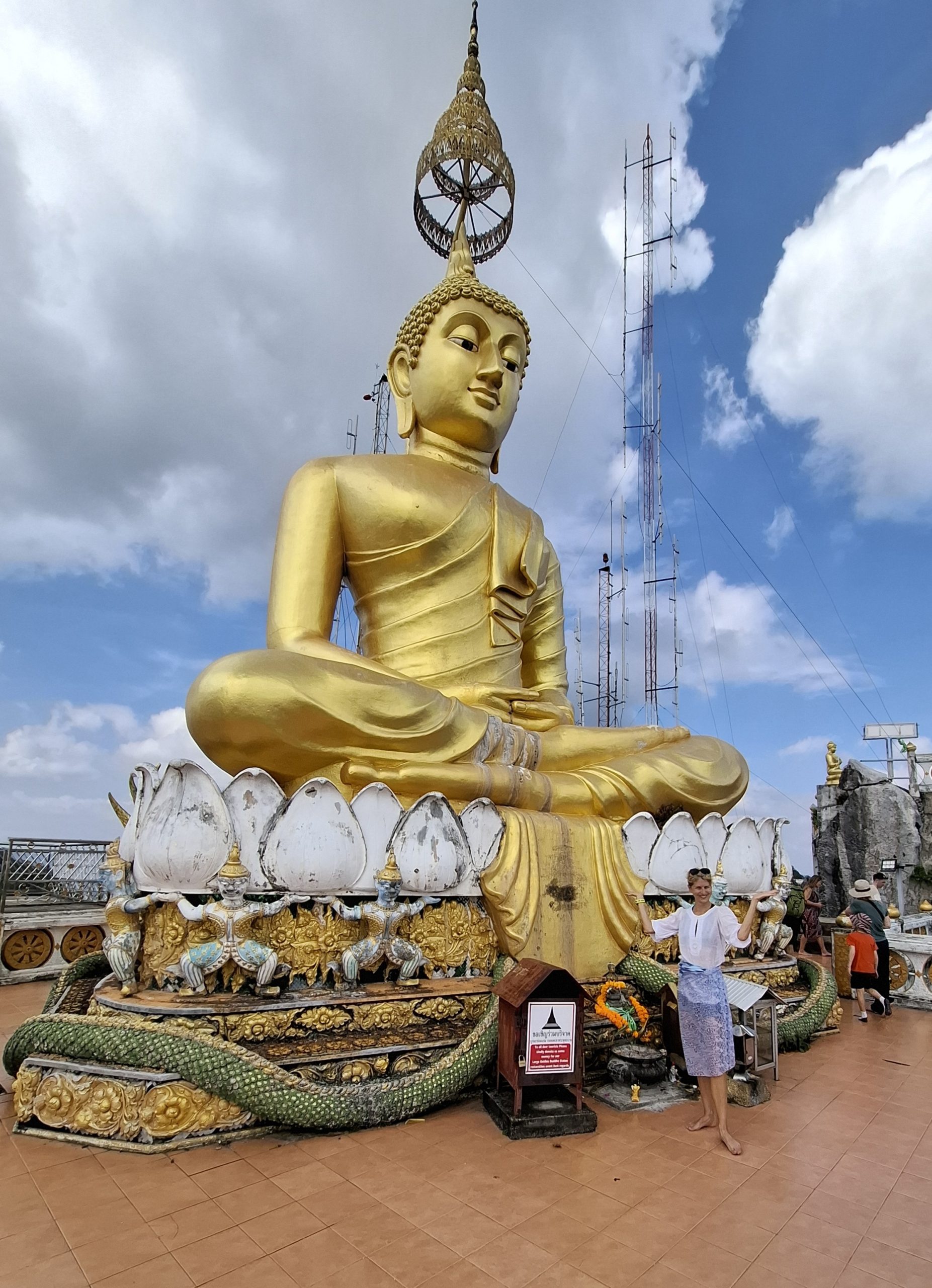 Najpierw pojechaliśmy do Tiger Cave. Weszliśmy na wzgórze z olbrzymim posągiem siedzącego Buddy. Droga prowadziła niemal pionowo w górę, po 1260 stopniach, w 32 stopniowym upale.