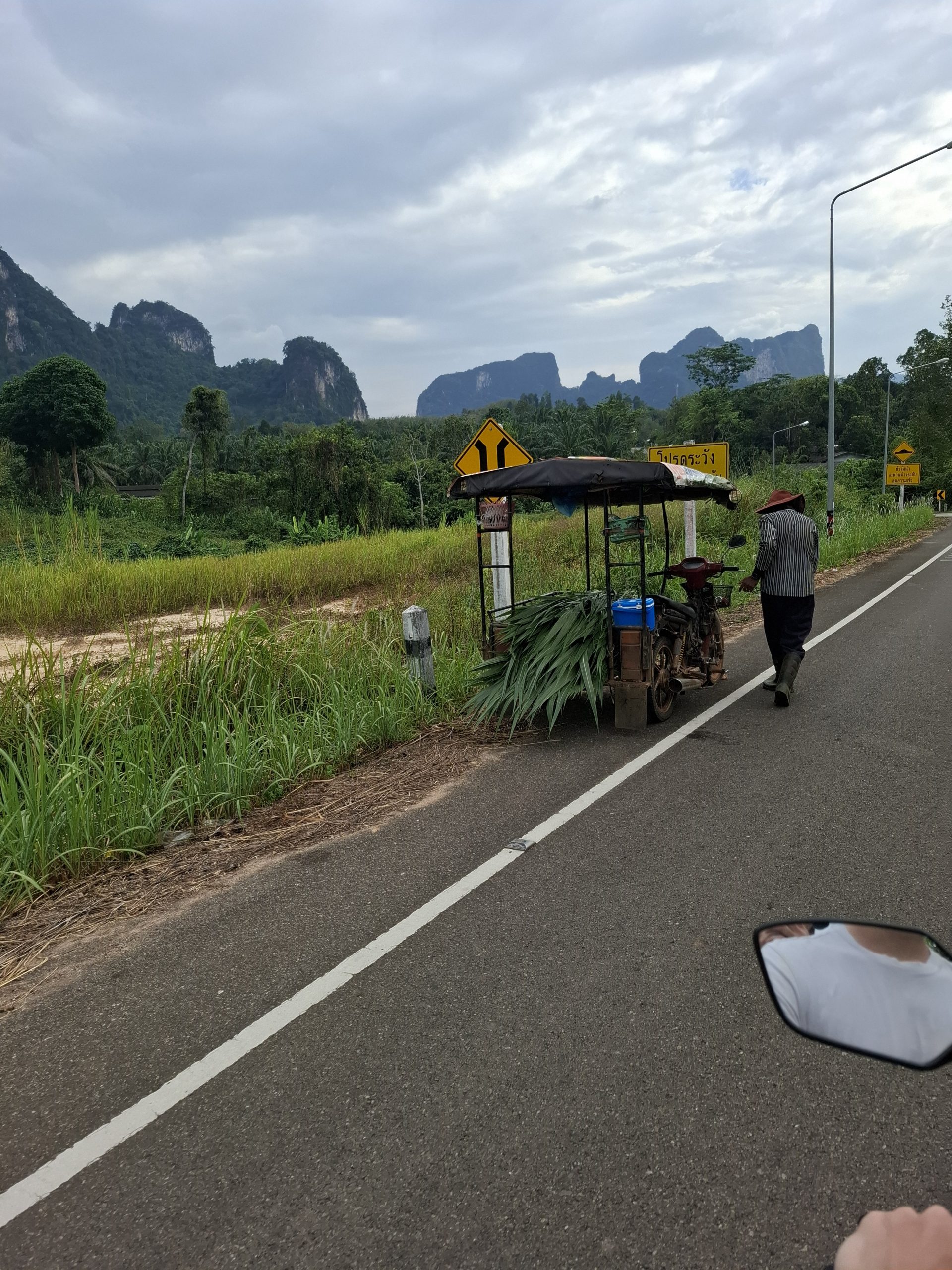 Początkowo się stresowałam, bo ulice w naszej miejscowości są bardzo zatłoczone. Ale po wyjechaniu z Ao Nang zrobiło się luźniej. Kilka razy na krótki odcinek musieliśmy wjechać na główną drogę, raz był spory korek i Janek manewrował trochę miedzy autami. Trochę, bo ja panikowałam z tylnego rzędu i mówiłam byśmy czekali w kolejce 😉 Reszta dróg mimo, że też duże i szerokie była w zasadzie pusta. Naprawdę bardzo dobrze się jeździło, mimo ruchu lewostronnego. Nawet jakieś rondo się trafiło i tu lekko zwątpiłam, gdzie mam patrzeć i komu ustąpić. Na szczęście prowadził Janek, który nie miał z tym najmniejszych problemów. Naprawdę mi zaimponował umiejętnościami, opanowaniem i pewnością jazdy.