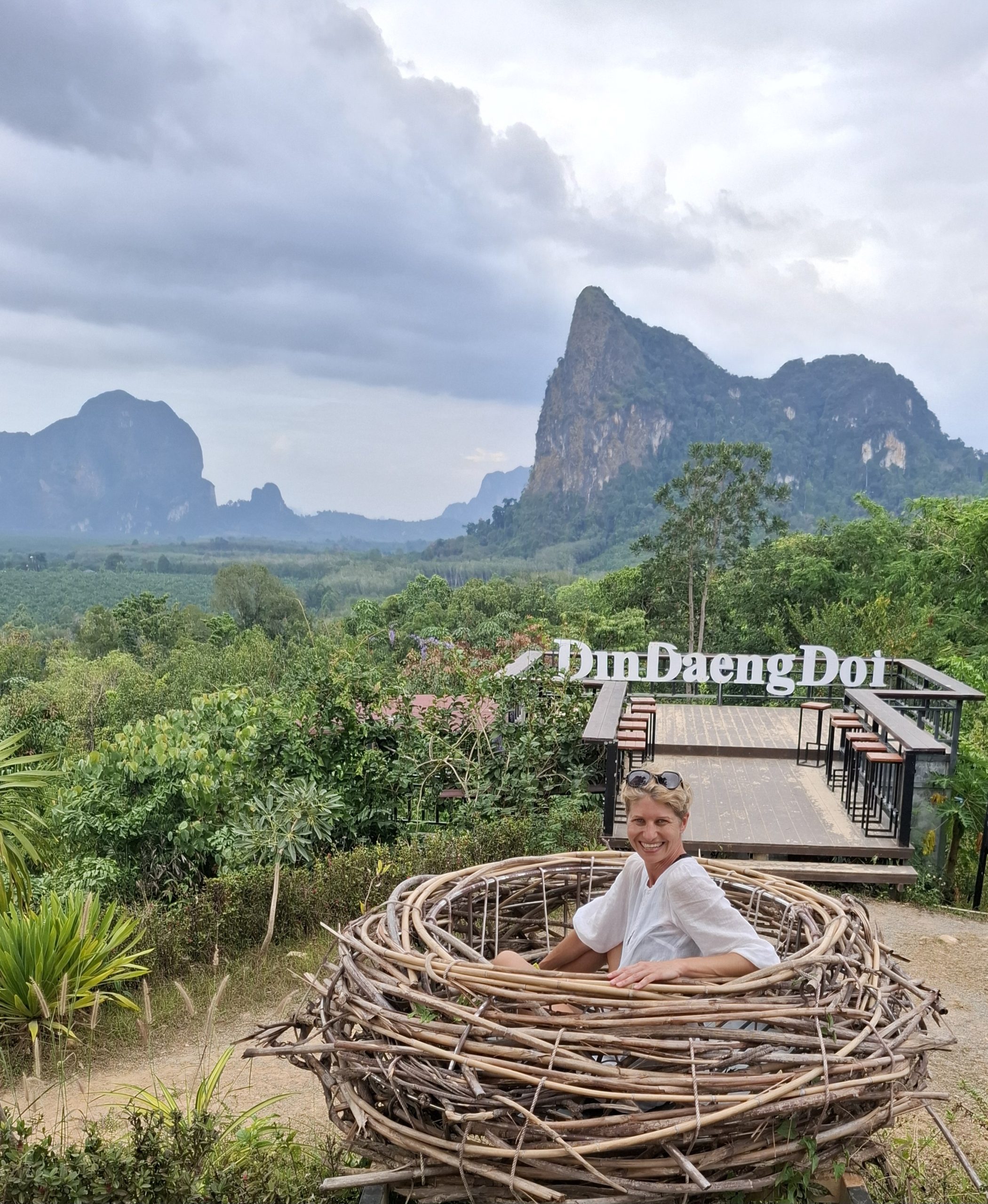 Najfajniejszym miejscem w tym dniu był zdecydowanie punkt widokowy Din Daeng Doi. Tu także wstęp biletowany, ale udało nam się trafić popołudniu, gdzie byliśmy jedynymi turystami na wzniesieniu. Znowu marsz pod górkę, ale widoki fantastyczne. Na górze była też mała knajpka. Zjedliśmy lunch i chwilę odsapnęliśmy. Upał i wilgotność była potworna. Pot lał nam się po dupach cały dzień. Do tego cały czas chodziliśmy pod górkę 😉