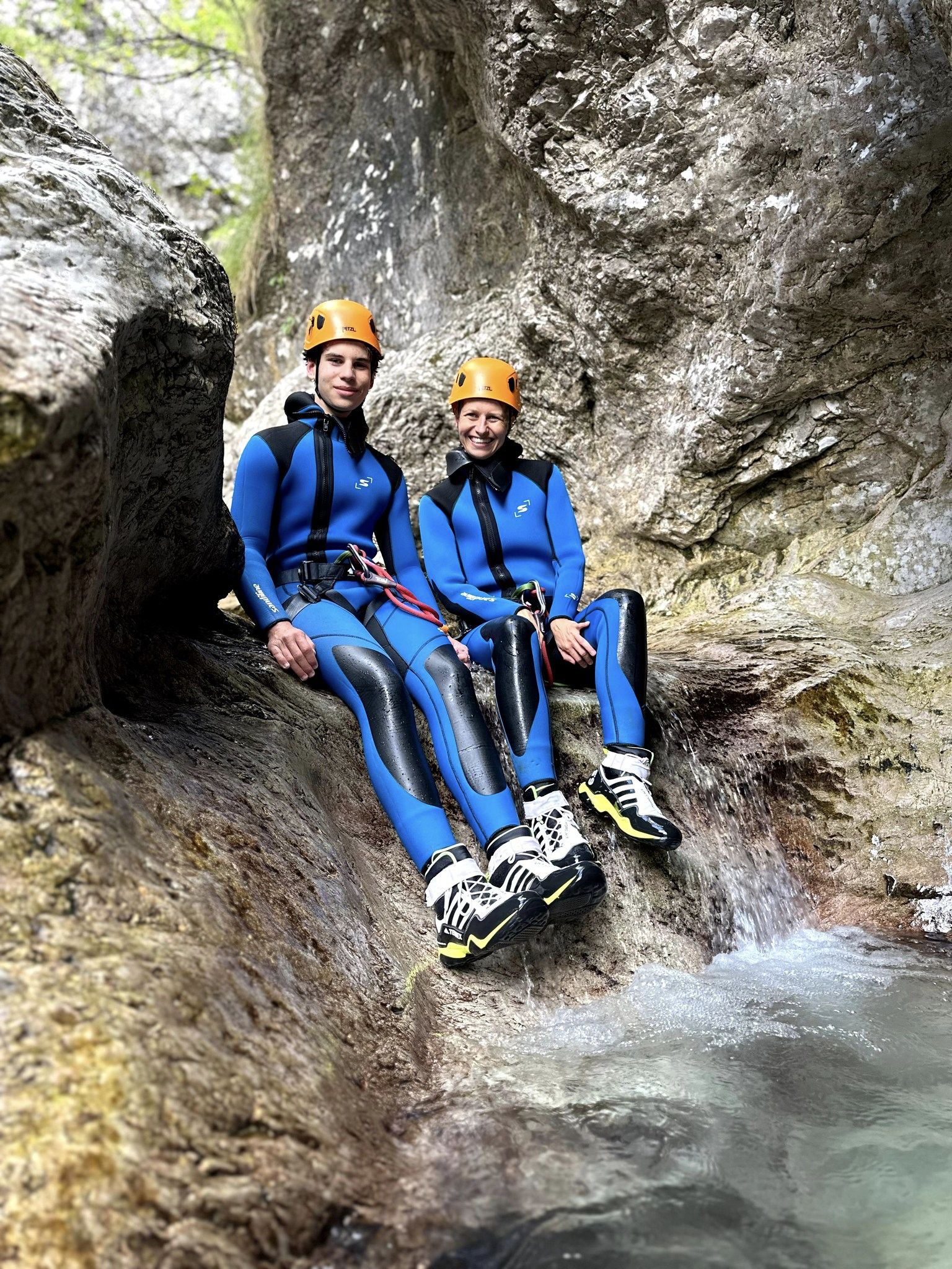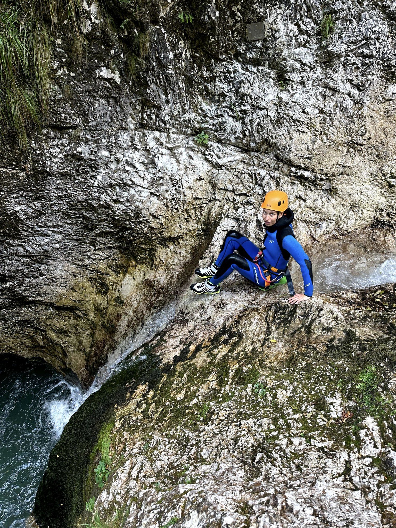Wyjechaliśmy z naszej bazy z zapasem czasu i mimo tych przeszkód byliśmy na czas. Przebraliśmy się w stroje kąpielowe i ruszyliśmy z resztą ekipy i naszą przewodniczką (Sarą z Czech) na canonying. Sara dobrała nam pianki wg rozmiaru, do tego kaski, uprząż i buty ze skarpetami. Zupełnie inaczej niż na canonyingu w Jordanii, gdzie poza zdezelowanymi kamizelkami nie dali nam nic.