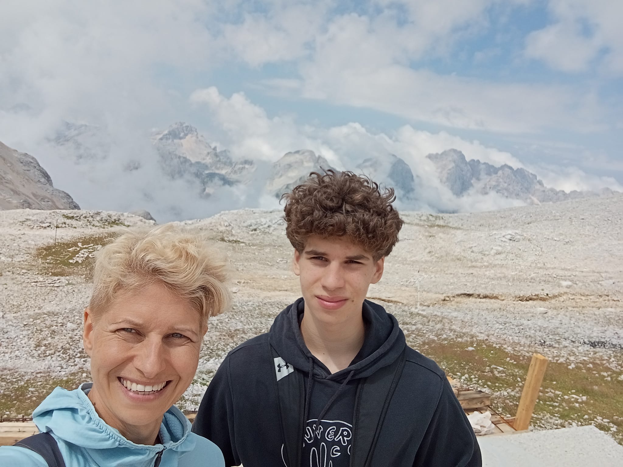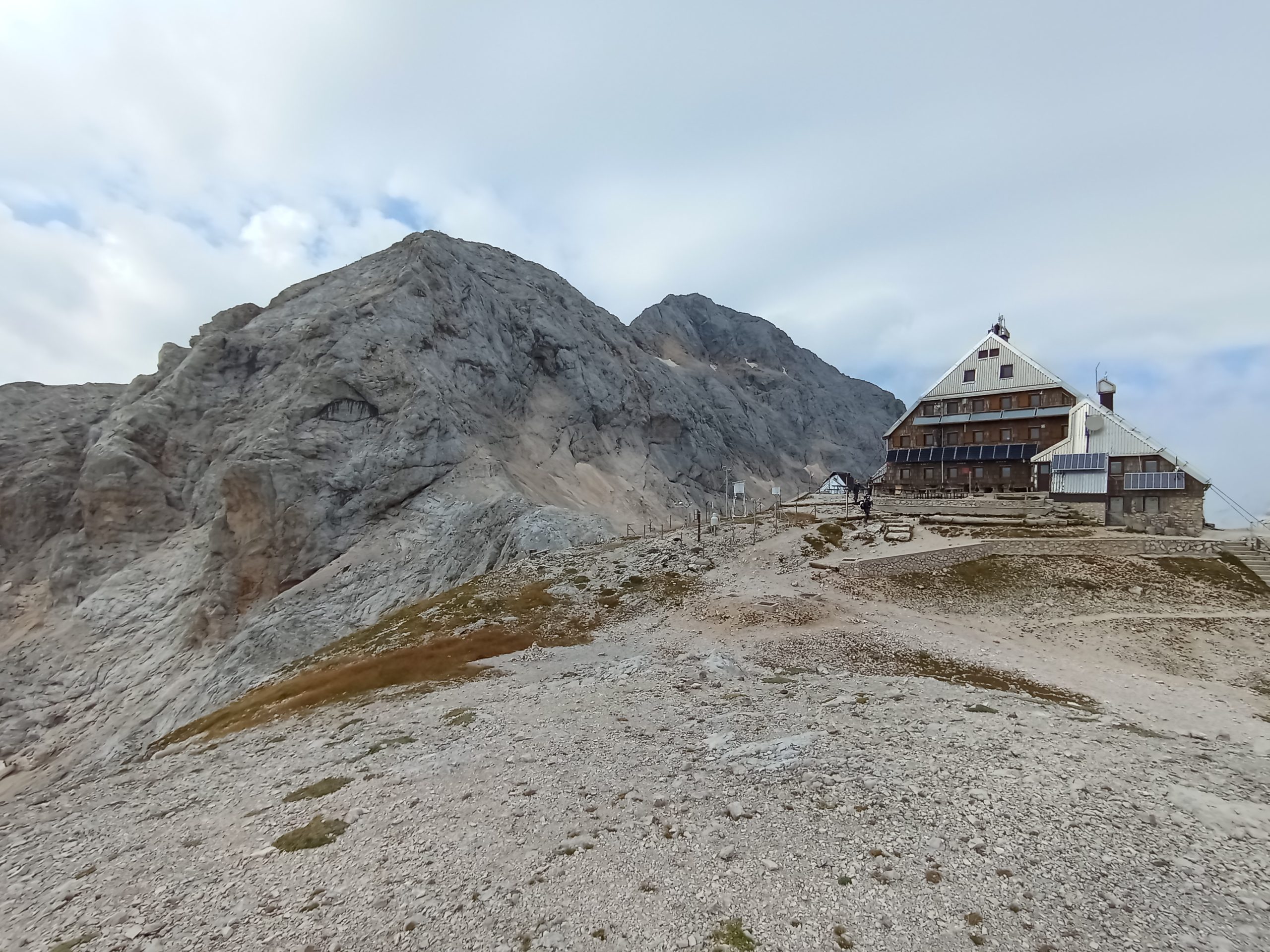 Przy schronisku spotkaliśmy grupkę Kanadyjczyków, z którymi rozmawiałam pierwszego dnia na przesiadce we Frankfurcie. Rozpoznał mnie jeden z Kanadyjczyków i zagadnął, ja oczywiście w życiu bym już ich nie poznała 😆Oni szli z plecakami od schroniska do schroniska. Sporo osób wchodzi też do tego schroniska jednego dnia, śpi tam, by drugiego dnia od rana zdobyć szczyt i potem spokojnie zejść do doliny.