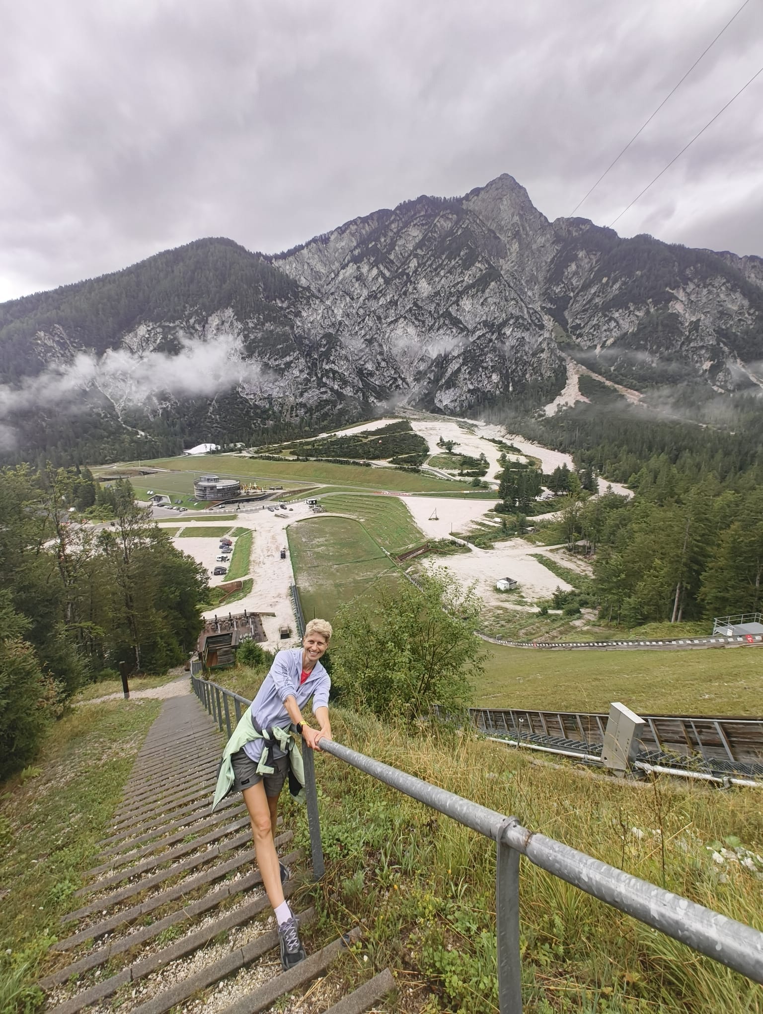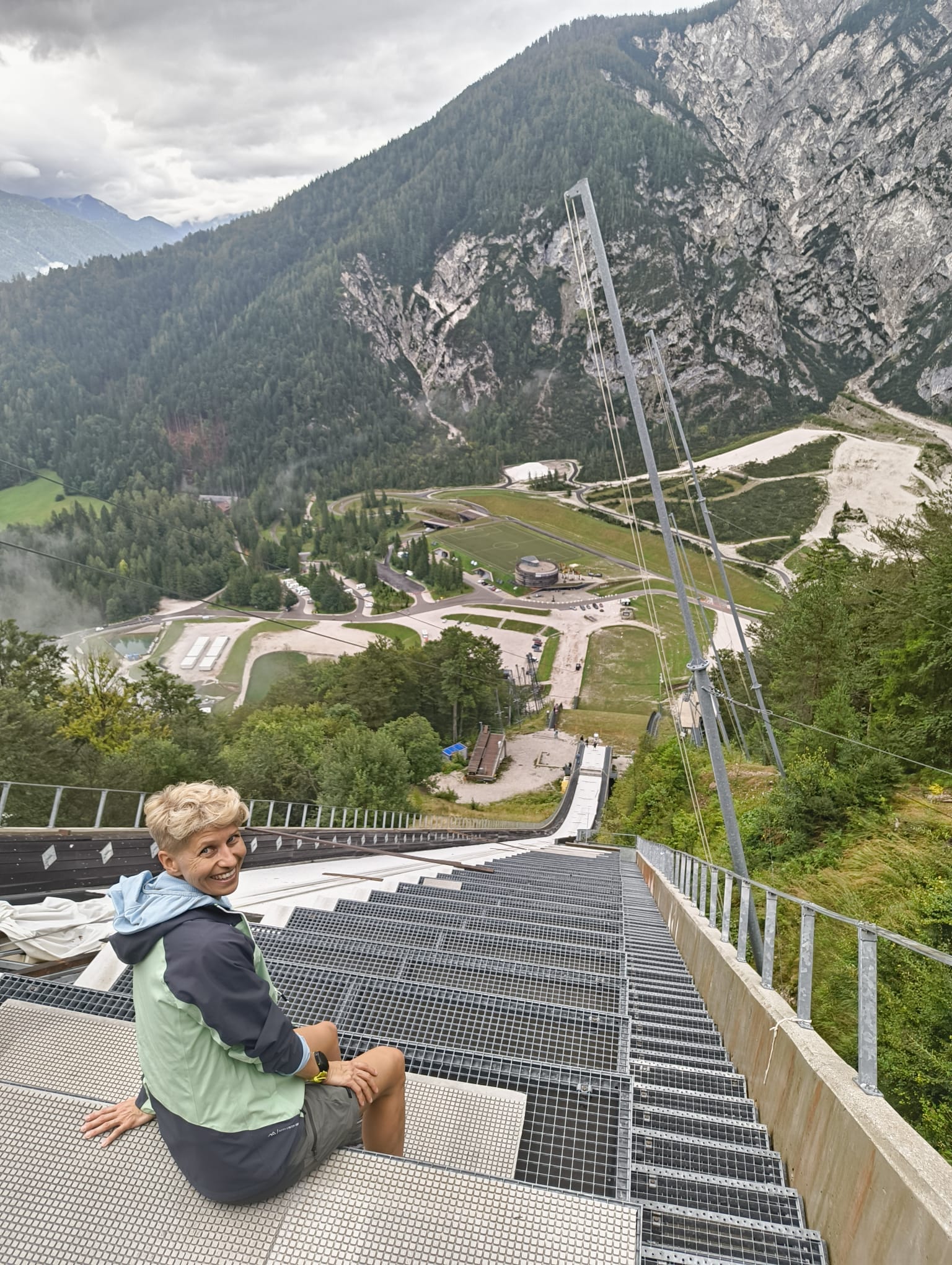 Pod skocznią znajduje się budynek sportów zimowych. Jest tam tunel aerodynamiczny, w którym można polatać (niestety był zamknięty), a w podziemiach jest tor pokryty śniegiem do jazdy na biegówkach. Dzieciaki akurat miały trening. Na dworze znajduje się też asfaltowy tor, na którym inni trenowali na nartorolkach. Wszystko w pięknym otoczeniu gór.
