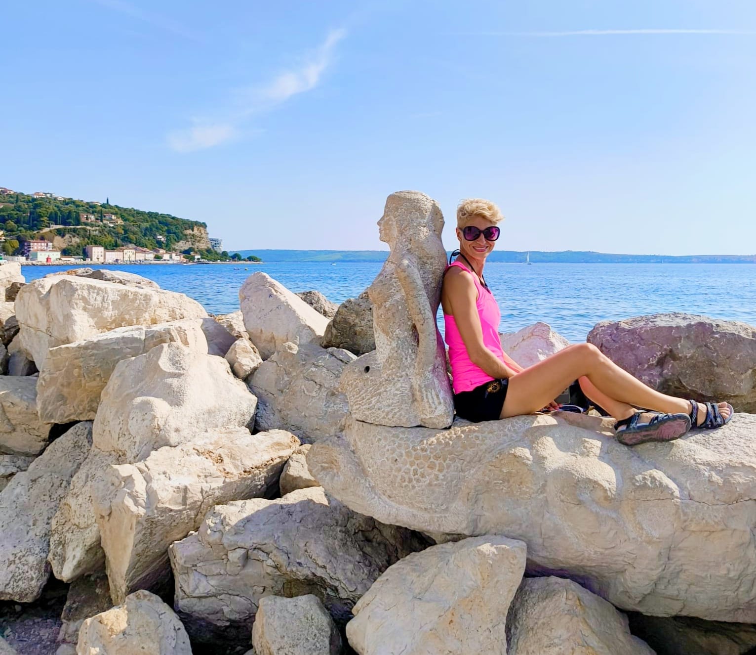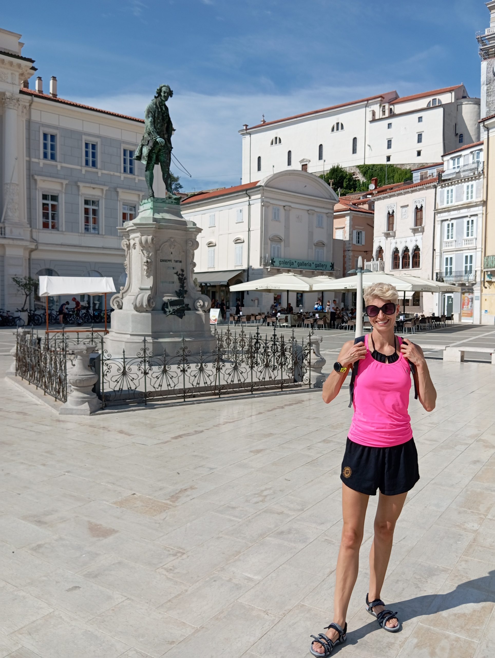 Piran absolutnie mnie zauroczył. Małe zabytkowe miasteczko. Na wzgórzu stare mury obronne z wieżyczkami strażniczymi ( oczywiście pochodziliśmy po nich). Cudowne widoki na miasto, marinę, morze. Okrągłe place, ładnie odnowione kamieniczki. Od razu miałam skojarzenie z klimatem Laurowego Wybrzeża z lat 70-tych i filmem „Żandarm z Saint Tropez” z Louise de Fine. Powłóczyliśmy się wąskimi uliczkami i promenadą, pomiędzy opalającymi się na niej turystami. Zjedliśmy pyszne lody z widokiem na główny plac.