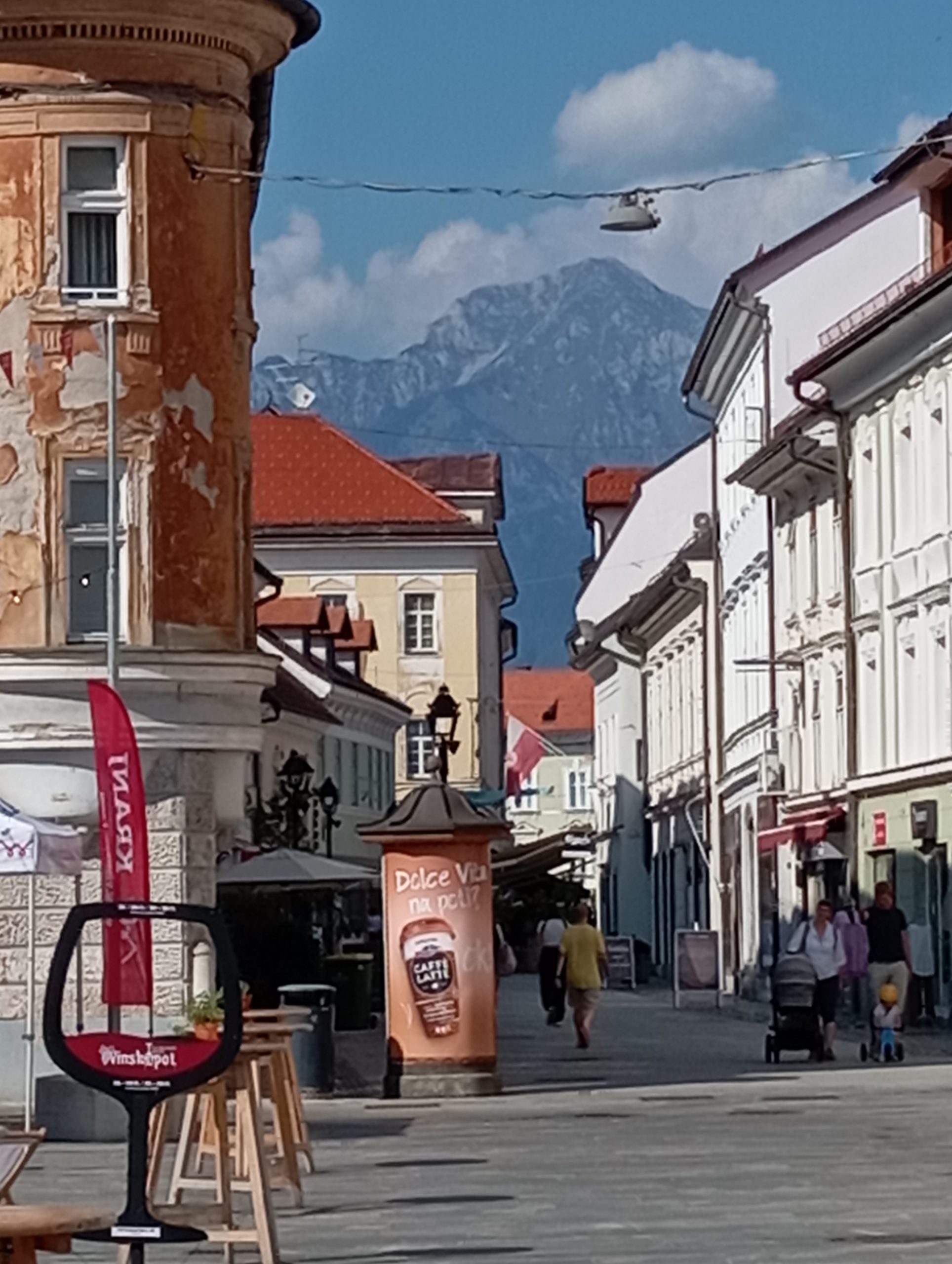 Dobrze, że wyjechaliśmy na lotnisko wcześniej, bo na autostradzie tworzyły się już duże korki. Przed lotniskiem wiedząc, że mamy zapas czasu, zajechaliśmy jeszcze do miasteczka Kranj. Krótki spacer po starówce położonej na wzgórzu, z pięknymi widokami na góry i lody dla ochłody.