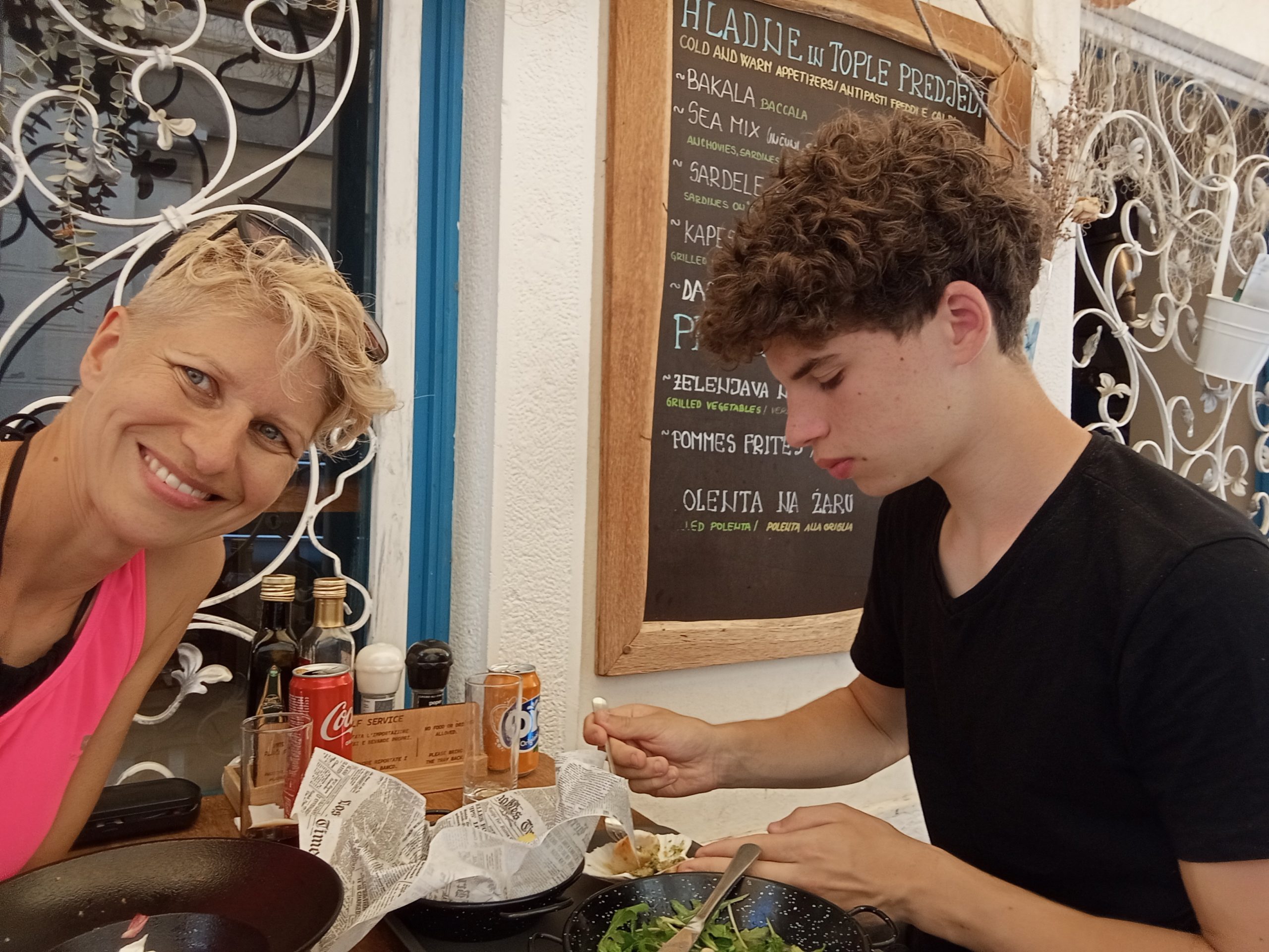 Na wieczór wróciliśmy do naszego Kopru. Dopiero po zachodzie słońca, gdy zrobiło się trochę chłodniej, na ulicach zrobiło się gwarniej. Dzieciaki biegały chłodząc się w fontannach, starsi grali w siatkę plażową na oświetlonych boiskach. Na promenadzie śpiewali uliczni grajkowie.