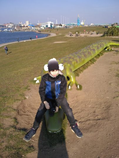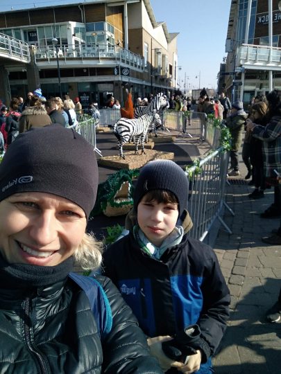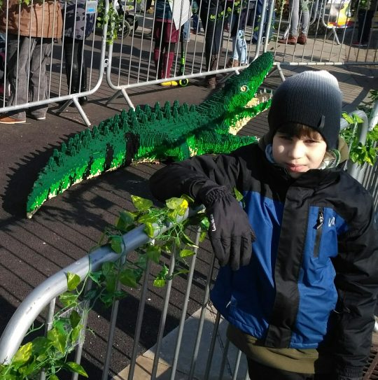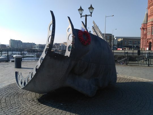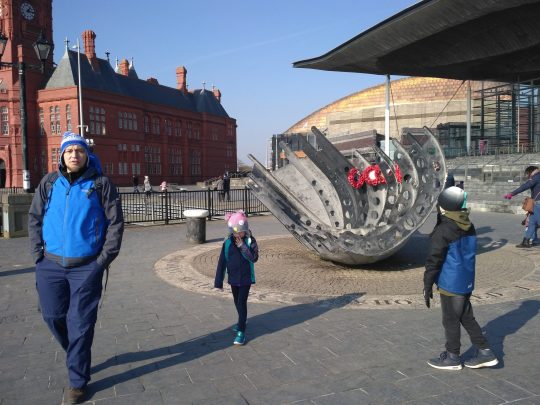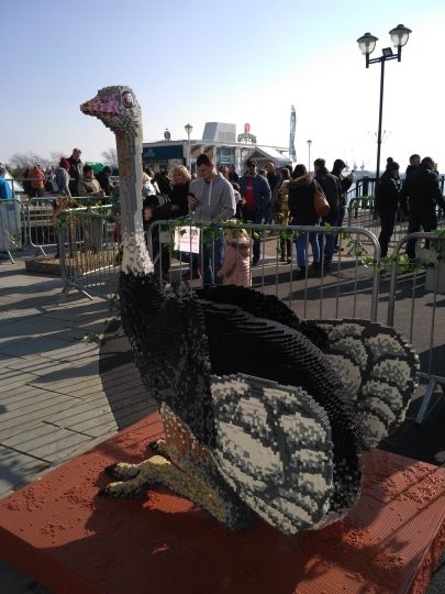 Najedzeni pojechaliśmy pochodzić po stolicy Walii, Cardiff. Przeszliśmy się promenadą zatoki – Cardiff Bay. Była tam akurat wystawa afrykańskich zwierząt zbudowanych z klocków LEGO. Były zebry, gazele, lew, goryl, struś, krokodyl i słoń. Przy każdym była tabliczka z napisem ile osób, w ile godzin i z ilu klocków zbudowało danego zwierzaka. Aby powstał słoń 6 ludzi spędziło 1600 godzin i użyło ponad 270 tys. klocków.