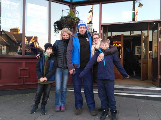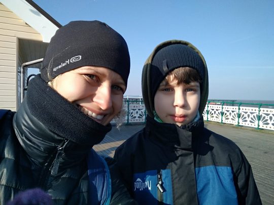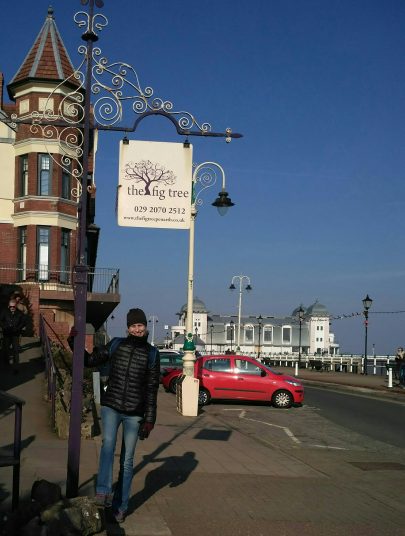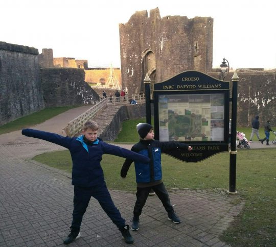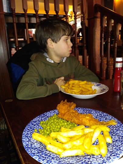 Poszliśmy na sam jego koniec, ale szybko wróciliśmy, by nie stracić głów. Zjedliśmy po donacie, pozbieraliśmy trochę kamyków i muszli na plaży. Dzieciaki marudziły, że są głodne, więc by nie sprowokować niepotrzebnej agresji ruszyliśmy z powrotem do Caerphilly na obiad. Na miejscu poszliśmy do lokalnego pubu na obiecane fish & chips. Pub pełen był ludzi kibicujących swojej drużynie rugby w meczu z Irlandią. Niestety miejscowi przegrali dość sromotnie.