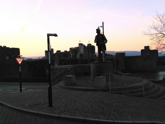 Po drodze mijaliśmy zamek ładnie oświetlony zachodzącym słońcem. Podobno jego wieża jest bardziej pochylona niż ta w Pizie, a podpiera ją figura czwartego Marquess of Bute, markiza który odbudowywał zamek. W miasteczku stoi też pomnik popularnego walijskiego komika, który stąd pochodzi. Aktu odsłonięcia dokonał Anthony Hopkins, który jak się okazało też jest Walijczykiem.W domu gorąca herbata, by odtajać po całym dniu na zimnie i wietrze. Odpoczywamy, bo na jutro mamy konkretny plan trekingowy.