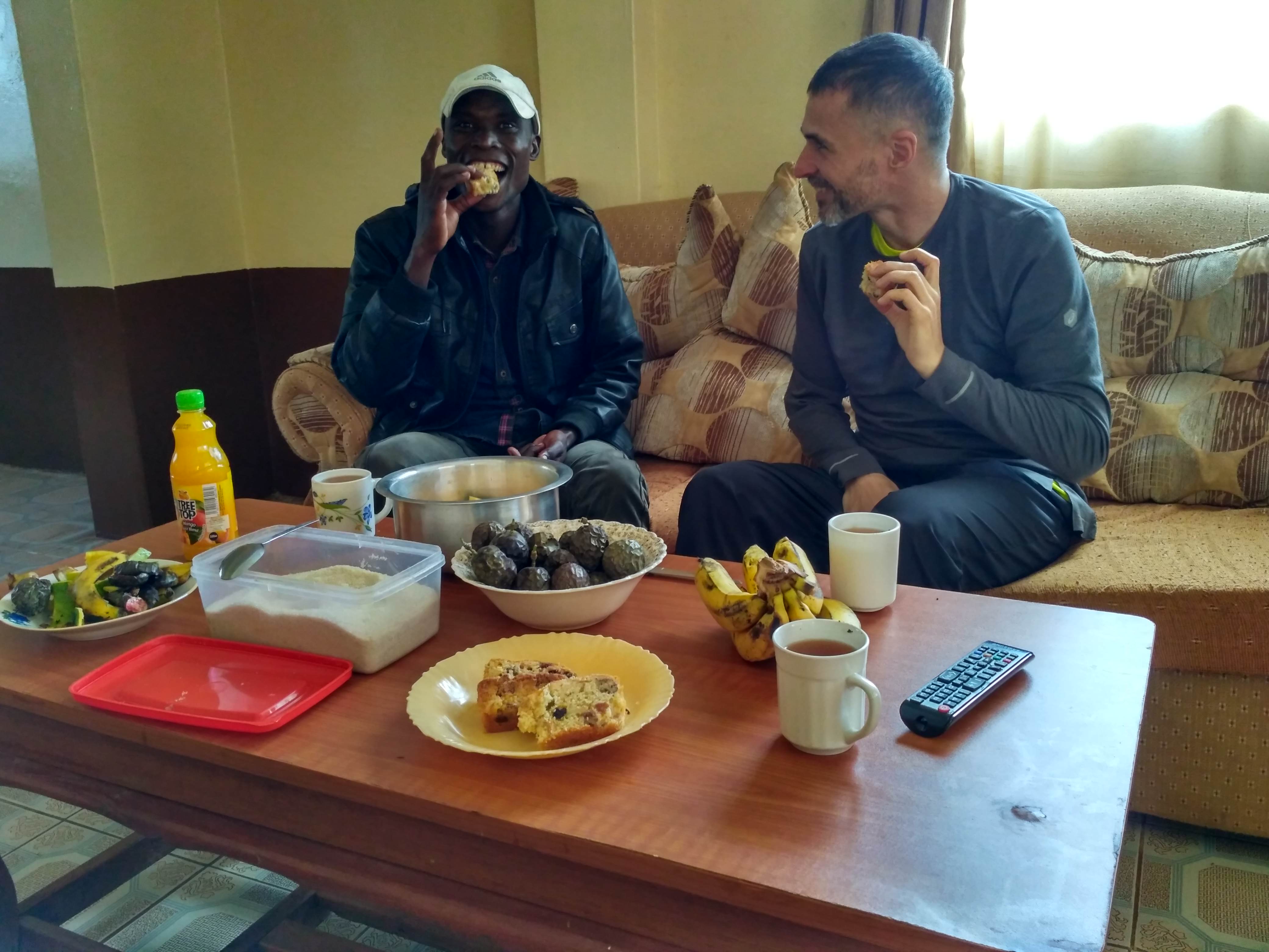 W domu zaparzyłam sypanej herbaty, wodę gotujemy na palniku butli gazowej. Poczęstowałam też Meshacka świątecznym keksem, który zabrałam z Polski. Po raz pierwszy jadł ciasto pełne bakalii. Dziwił się, że jemy tak słodkie ciasta, po czym sięgnął po drugi kawałek. Śmialiśmy się z niego, bo chwilę wcześniej posłodził swój mały kubek herbaty dwiema czubatym łyżkami (od zupy) cukru. I to nie jest dla niego absolutnie dziwne.