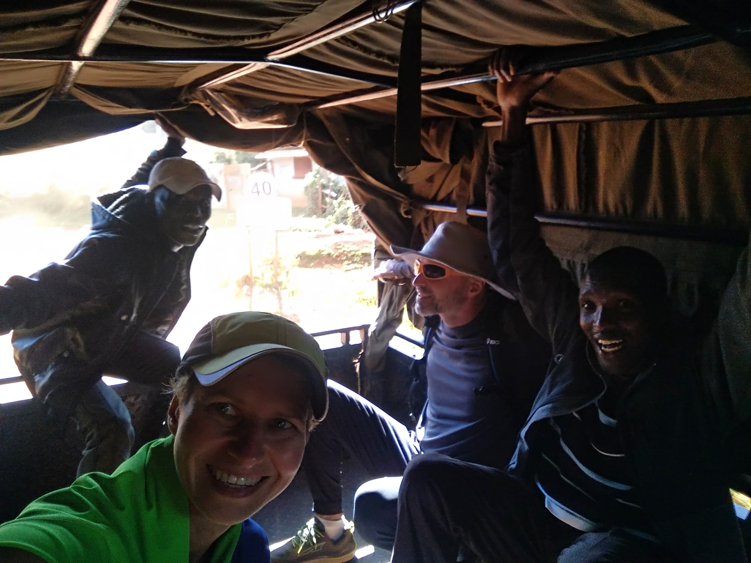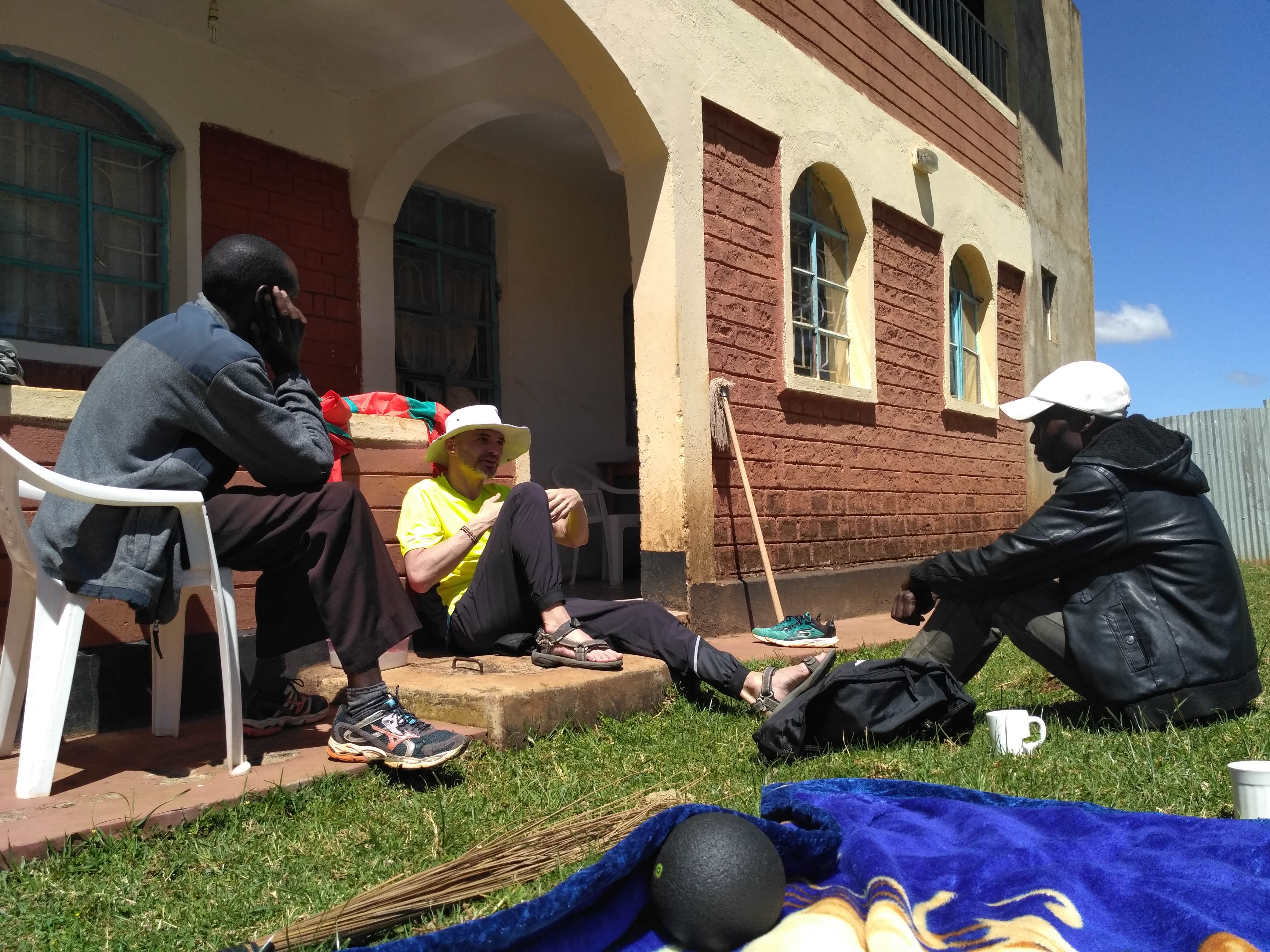 Dziś wiatr ustał i zrobiło się naprawdę ciepło. Przed południem przyszli do nas Meshack i Daniel. Pogadaliśmy trochę, yacool zrobił im masaż, obaj mają drobne kontuzje, mimo to trenują. Wypiliśmy herbatę i około 13 poszliśmy na lunch do wczorajszej knajpki, prowadzonej przez Nancy. Przed lokalem spotkaliśmy jeszcze jednego znajomego, Jacksona. Był z nami rok temu w Tanzanii, gdzie razem z resztą ekipy biegł maraton. Niestety tuż przed metą padł i był w naprawdę fatalnym stanie. Długo potem dochodził do siebie leżąc z kroplówką zawieszoną na gałęzi drzewa… Zaprosiliśmy go także do knajpy.