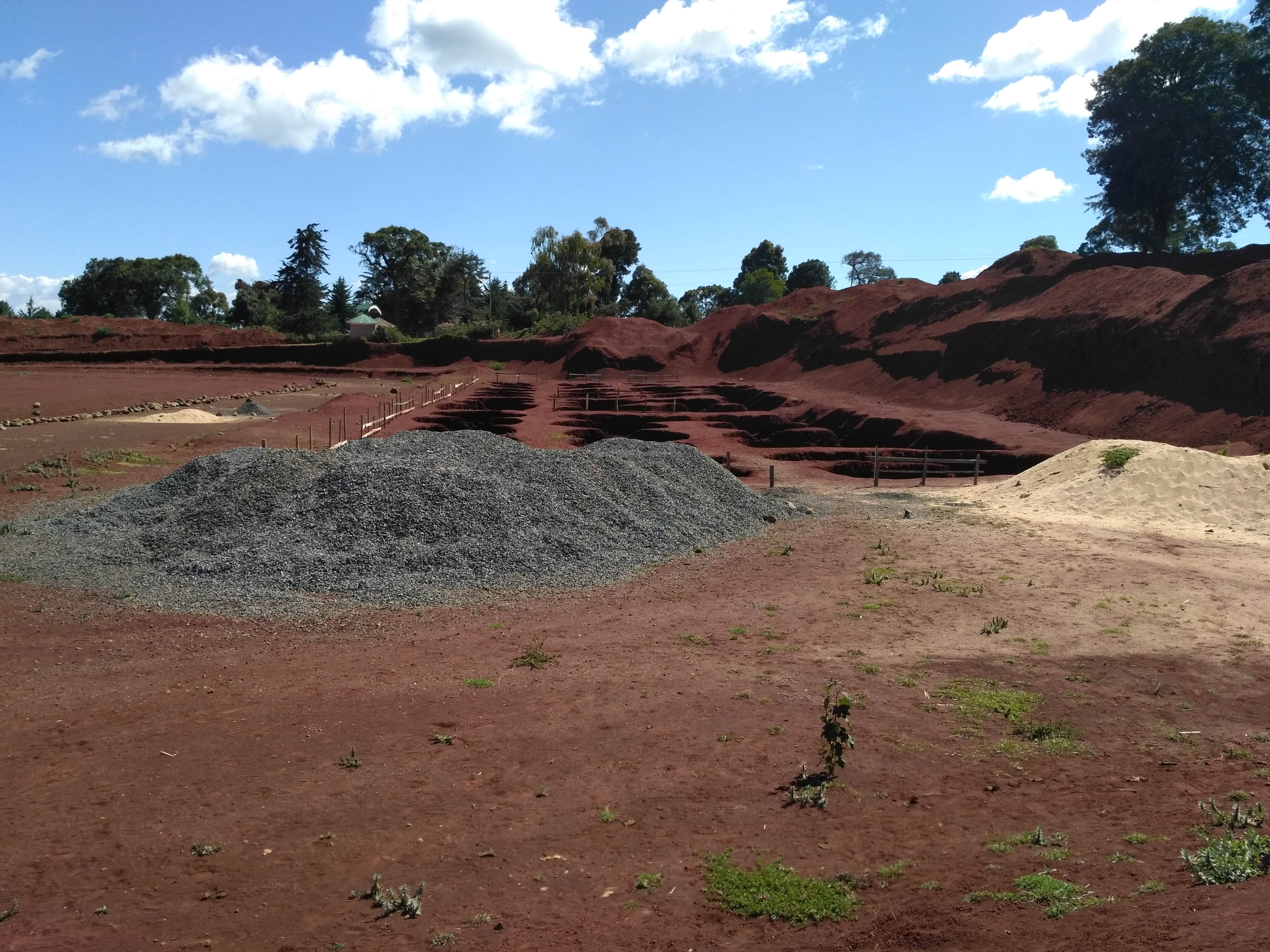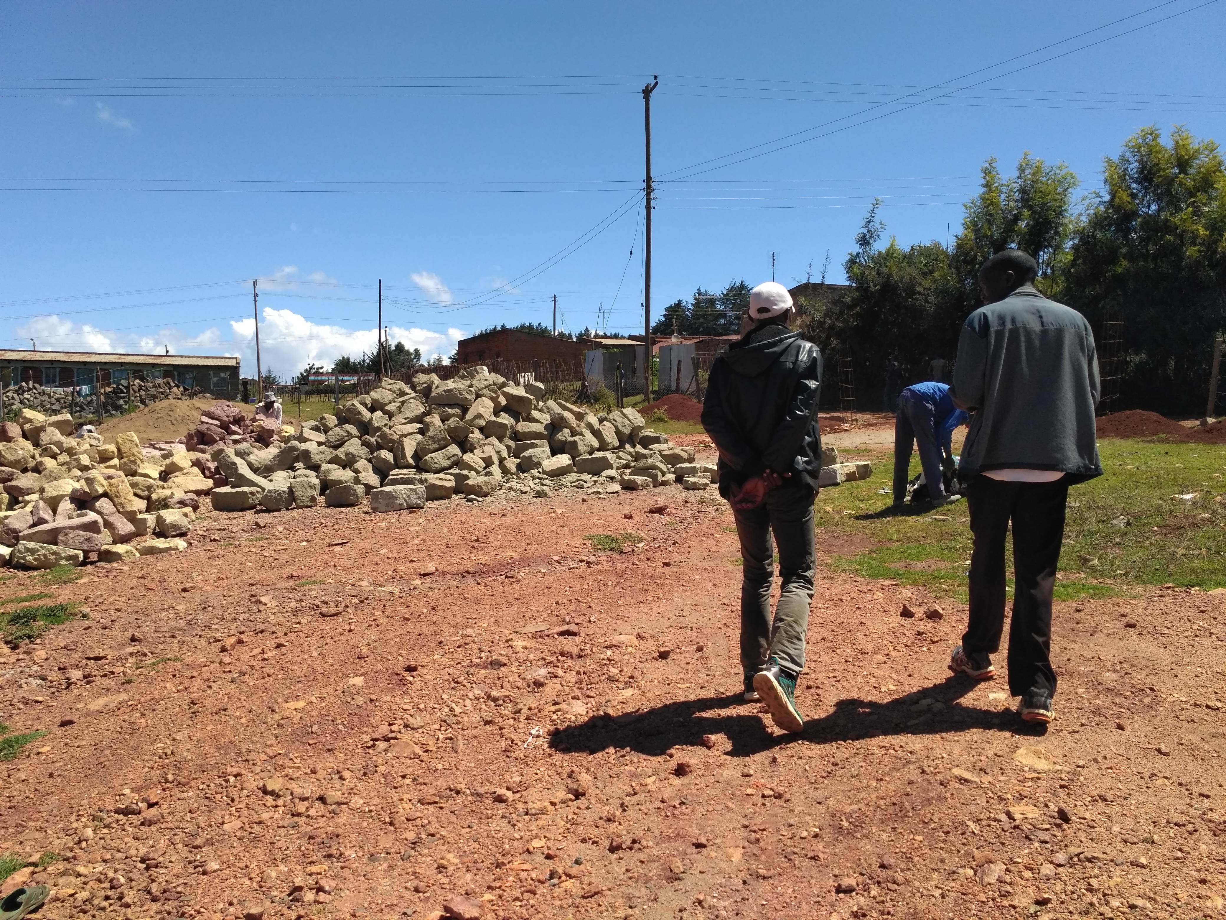 Dziś na lunch do wyboru było chapati, ryż i irish potatoes – czyli gotowane ziemniaki. Nancy, właścicielka była nieobecna i niestety nie dostaliśmy świeżego soku, na który najbardziej liczyliśmy. Widocznie tylko ona jest upoważniona do obsługi blendera. Zjedliśmy po chapati, wypiliśmy po kubku herbaty (my dostaliśmy strong tea) i poszliśmy na spacer zobaczyć jak posuwają się prace budowlane na stadionie Kamariny. Słońce dziś mocno grzało. Jacek miał swój kapelusz, ja mimo czapeczki czuję teraz, że spaliłam sobie uszy. Czas zacząć używać mzungu krem.