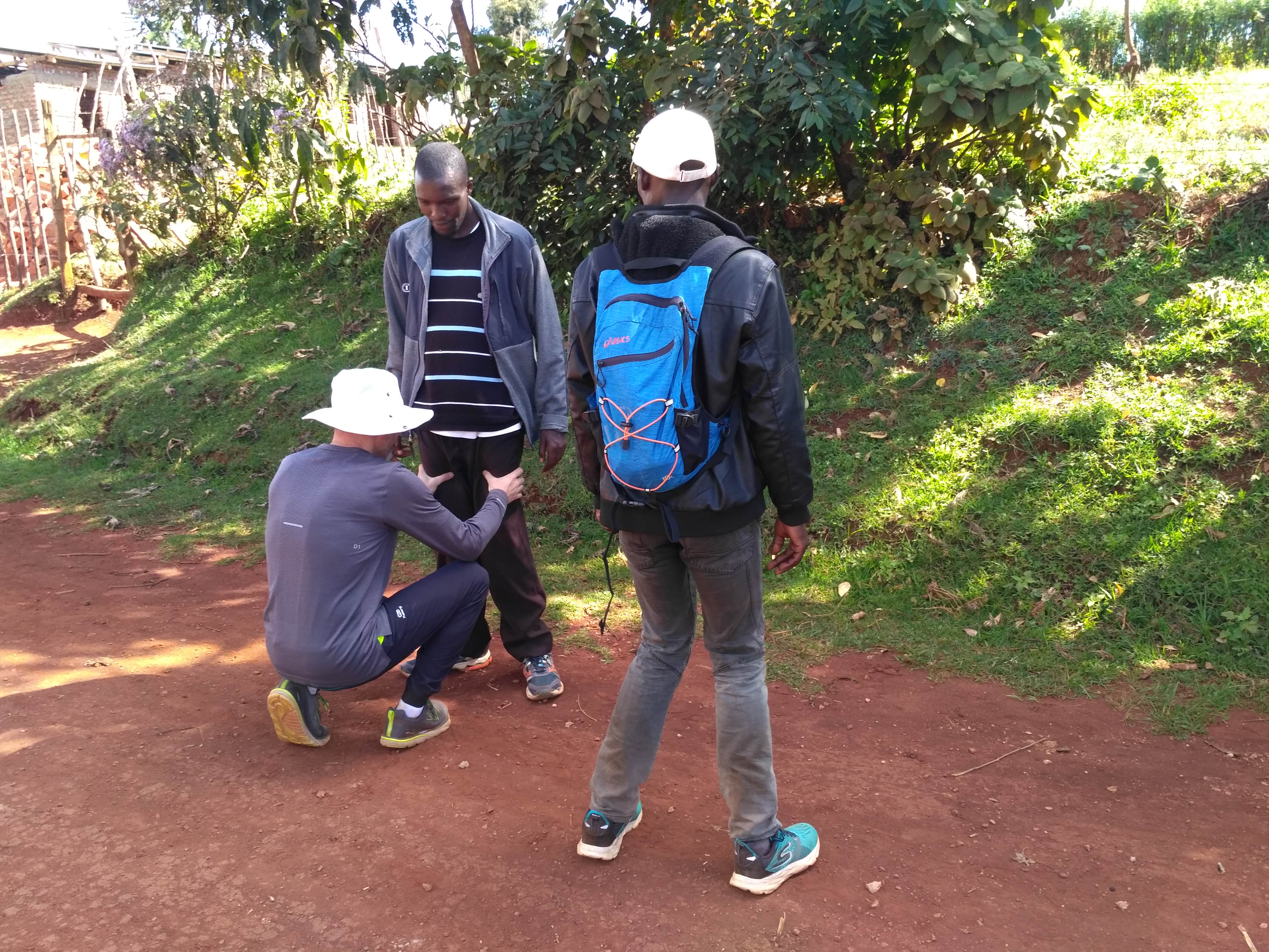 Pokręciliśmy się trochę po stadionie i drugą drogą ruszyliśmy w kierunku Keellu i centrum. Yacool stwierdził, że zamiast tylko iść chłopaki mogą iść świadomie, uruchamiając w marszu pośladki. Zatrzymywaliśmy się więc na ćwiczenia „damskiego sikania” i potem w marszu mieli szukać tego ruchu. Danielowi się spodobało, zaczął sprężyście maszerować, nawet trochę truchtał szukając ruchu. Meshack się śmiał, że Daniel wygląda teraz w biegu jak Lumbazi, czyli nasz „niebieski Keniol”.