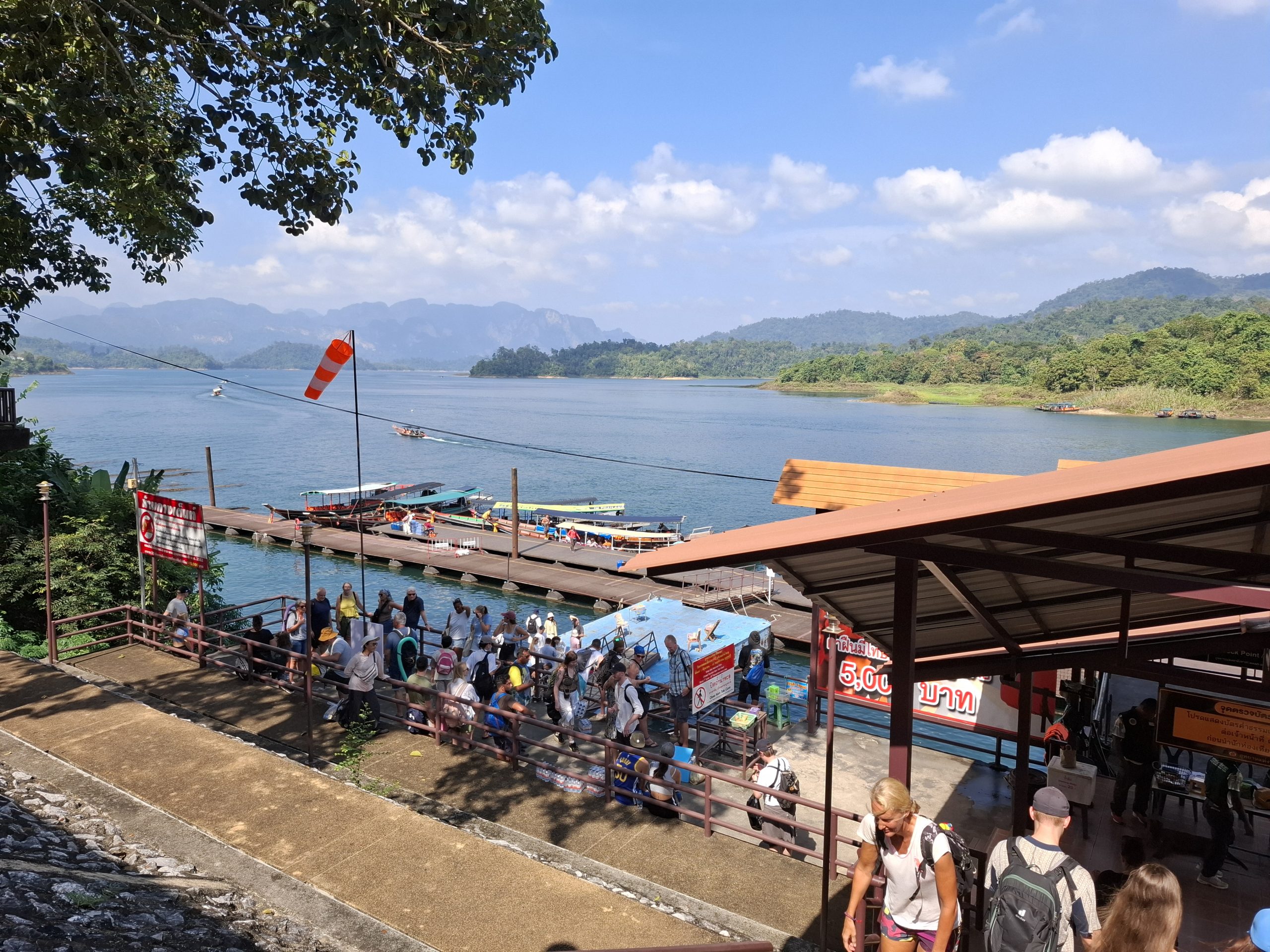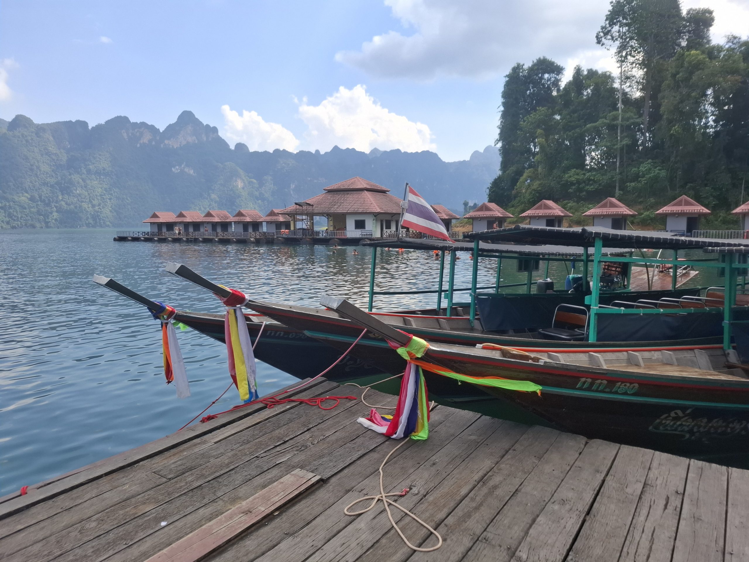 W naszym hotelu przy rezerwacji noclegów poza nocnym safari kupiłam nam także wycieczkę do Parku Narodowego Khao Sok, z noclegiem w domku na jeziorze. Rano vanem spod hotelu ruszyliśmy nad jezioro. Kierowca zbierał turystów z kilku hoteli. W grupie mieliśmy parę z Danii, Niemiec i francuską rodzinę z dziećmi. Przyjechaliśmy do przystani skąd łodzie typu long boat zabierały turystów na wycieczki.