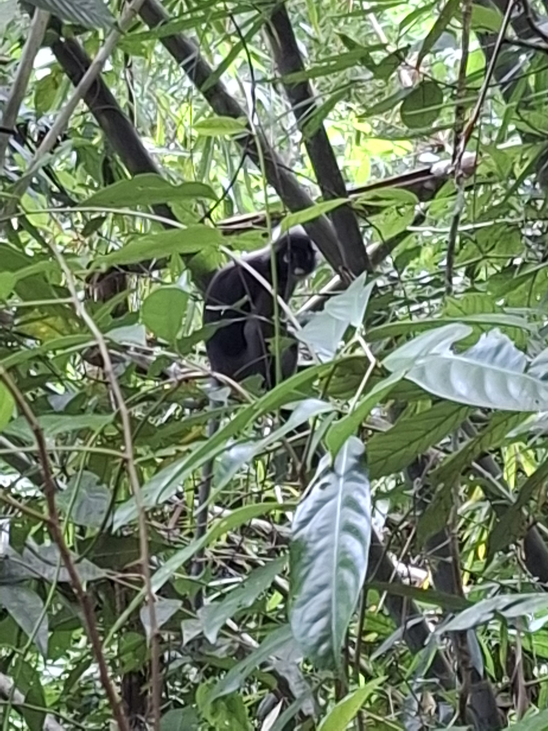 Po pływaniu, kolejna aktywność – trekking po dżungli. Najpierw podpłynęliśmy naszą łodzią do punktu startu, potem niecałe 1,5 km marszu przez dziewiczy, huczący odgłosami przyrody las. Następnie krótka przeprawa na tratwie przez jezioro i zwiedzanie jaskini. W drodze powrotnej evening safari z pokładu łodzi. Widzieliśmy małpy na drzewach. Myślę, że powinni zdecydowanie wprowadzić tu łodzie z silnikami elektrycznymi, by ich hałas nie straszył zwierząt.