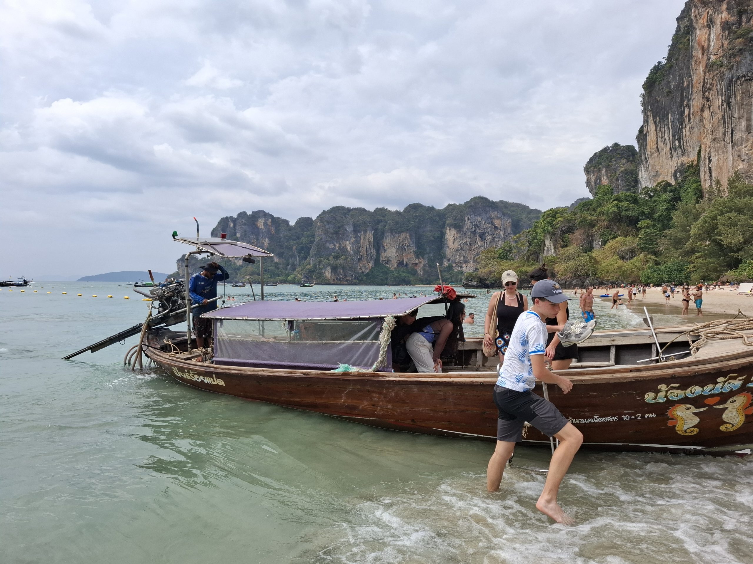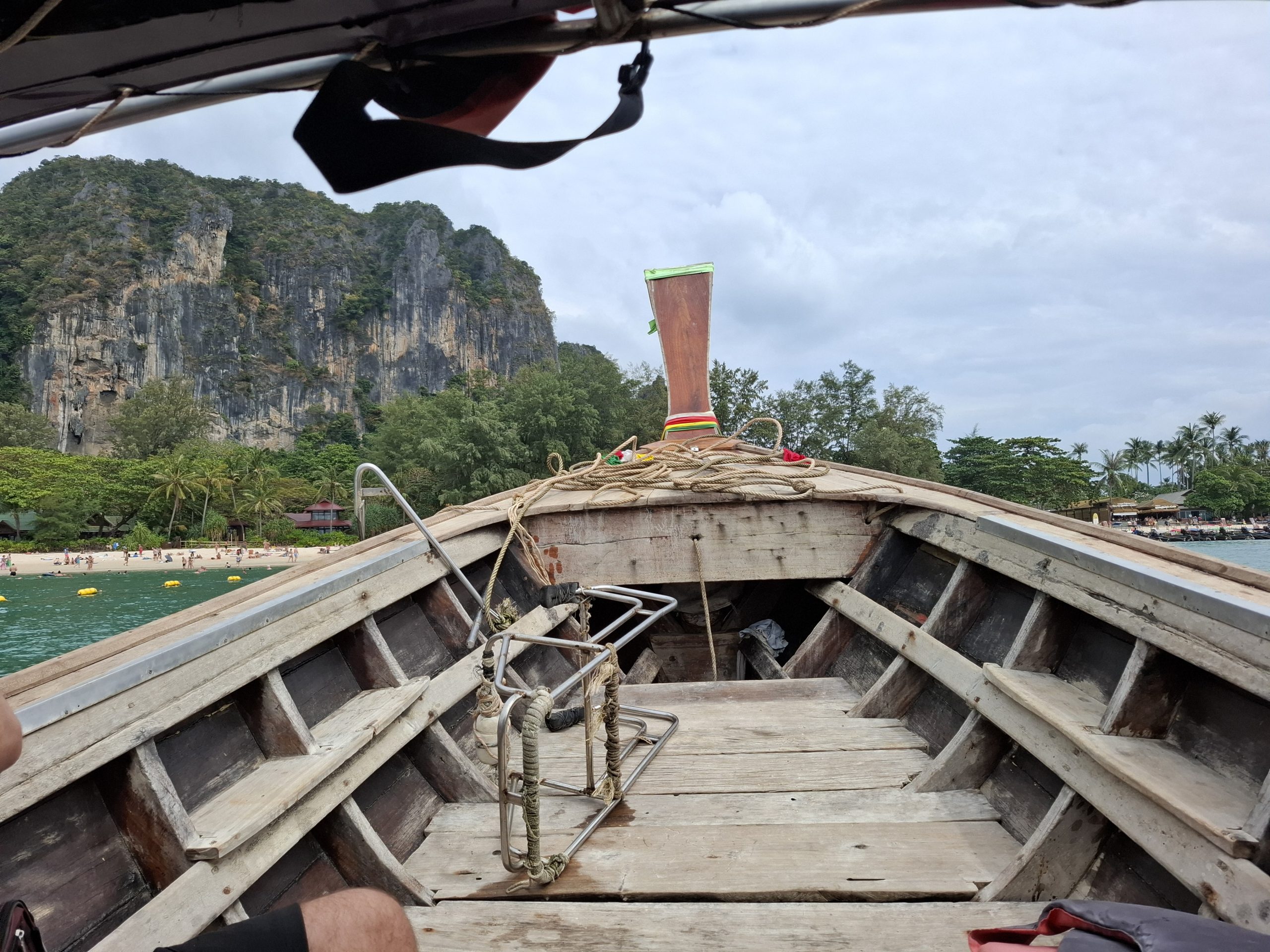 Ustaliliśmy z Jankiem, że koło południa popłyniemy long boat na pobliską plażę Railey Beach. Bilet kosztował 200 BHT za osobę w dwie strony. Łodzie wypływają w zasadzie na okrągło. Wystarczy, by zebrało się min 6-8 os chętnych. Przejażdżka trwała może z 10 min. Ostatnia dzienna łódź odpływa z Ailey przed 18. Potem kursują nocne, za które trzeba dopłacić 50 BHT.