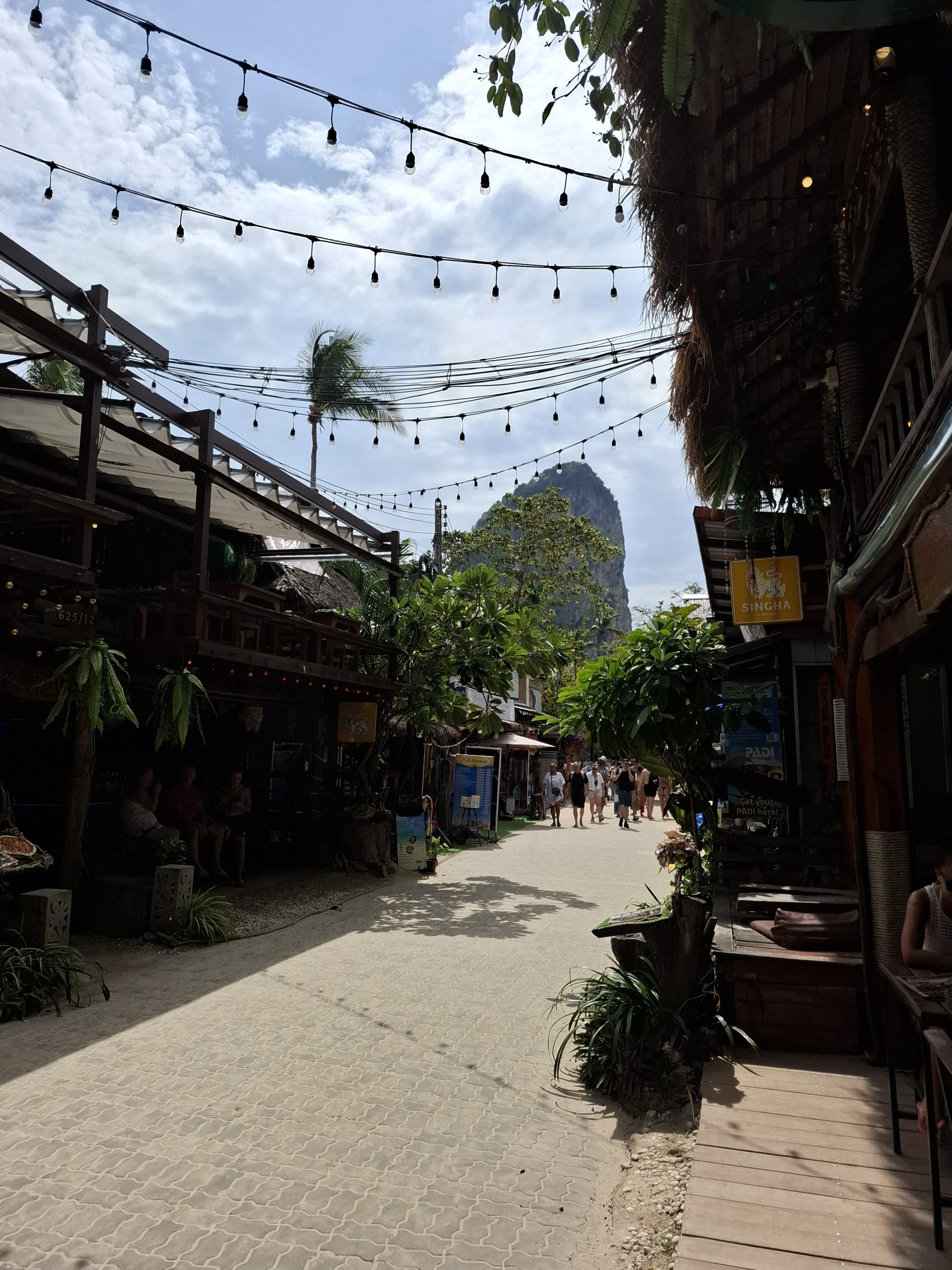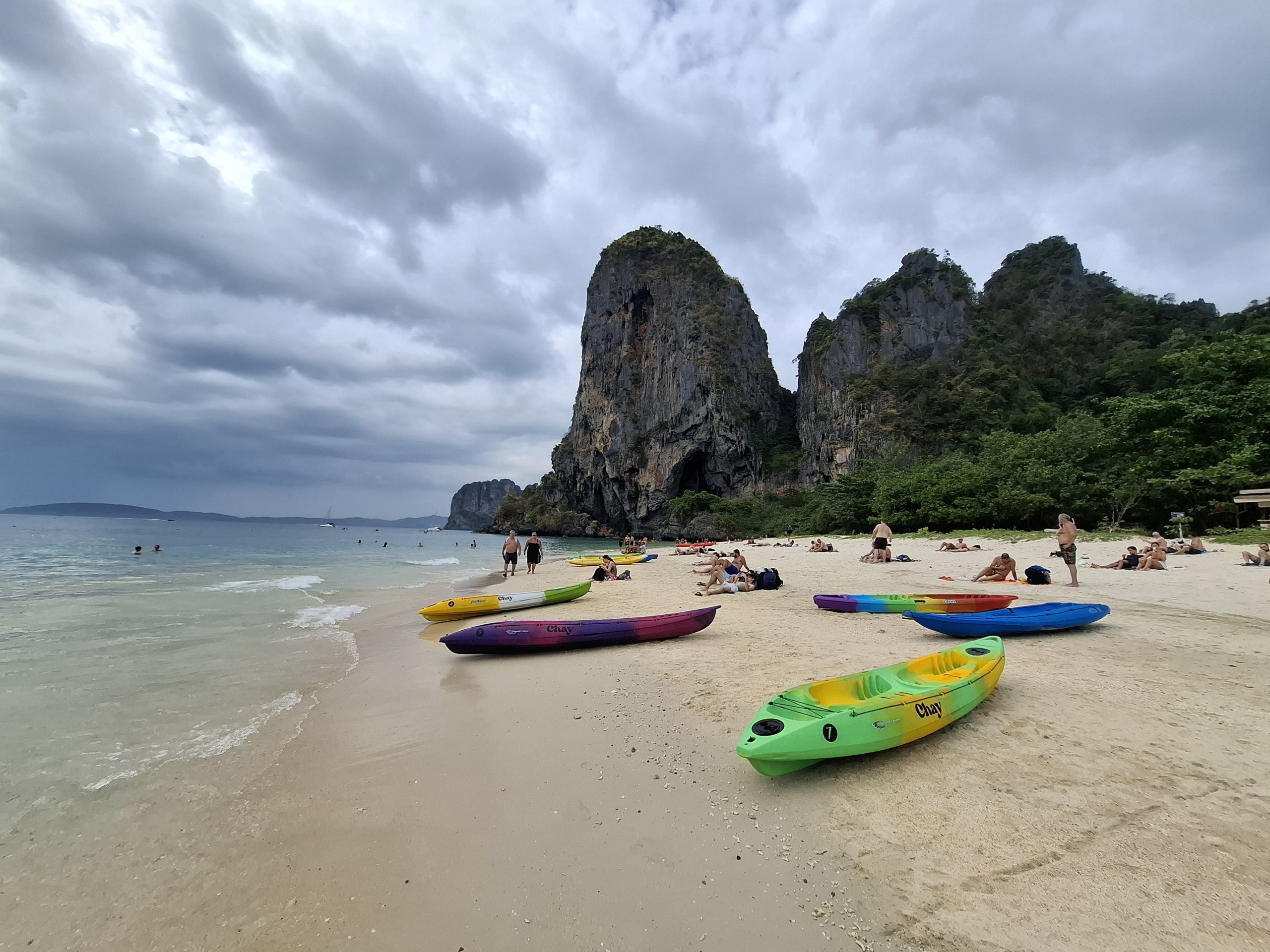 Railey Beach jest także bardzo popularna i urokliwa. Tam, gdzie przybijają łodzie (Railey West) są oczywiście knajpy i sklepiki. Przeszliśmy z Jankiem wszerz ten półwysep na Railey East. Po drodze coś zjedliśmy. Kelnerzy, co chwila inny, przynosili nam dania w zupełnie losowej kolejności.
