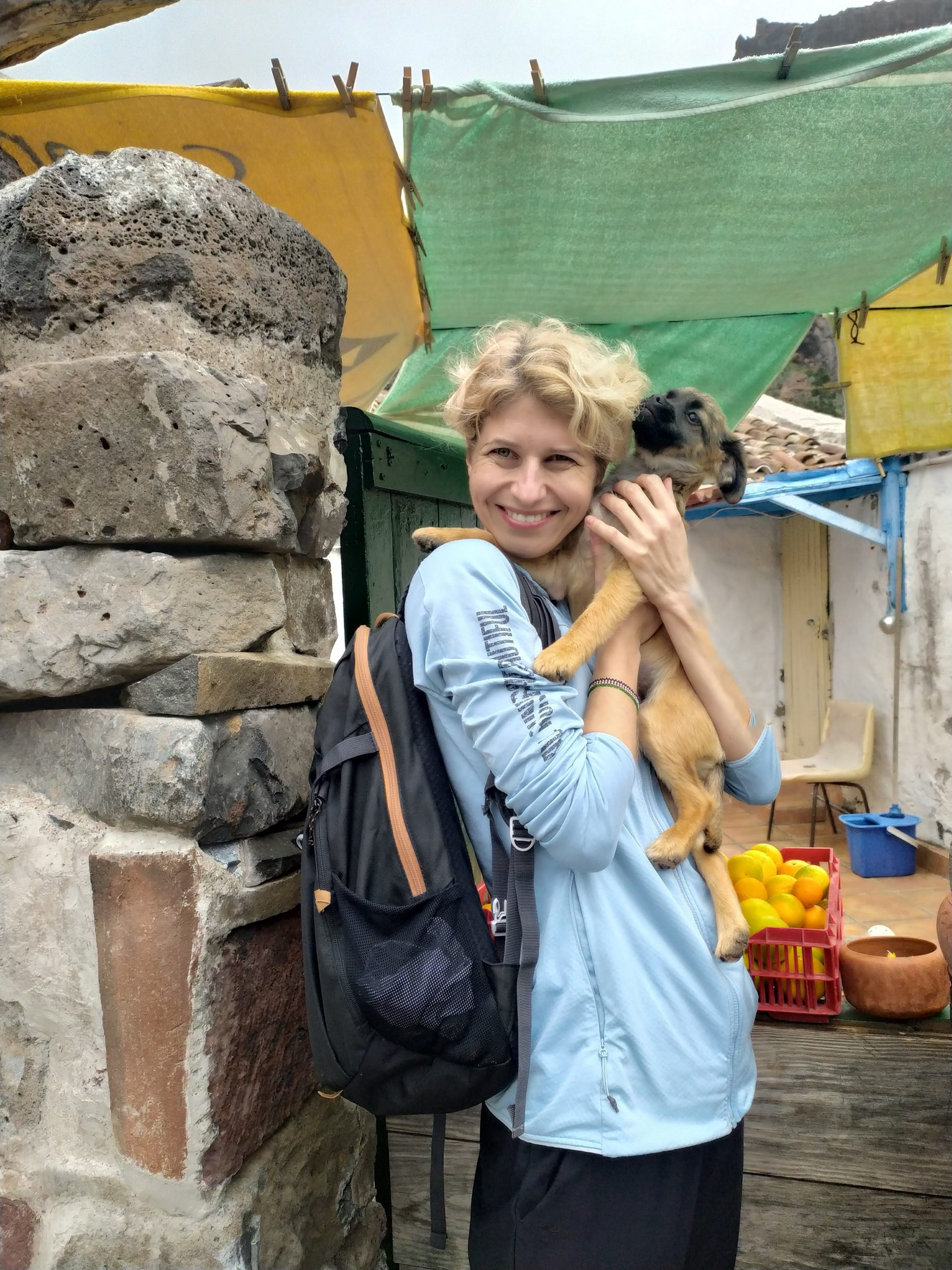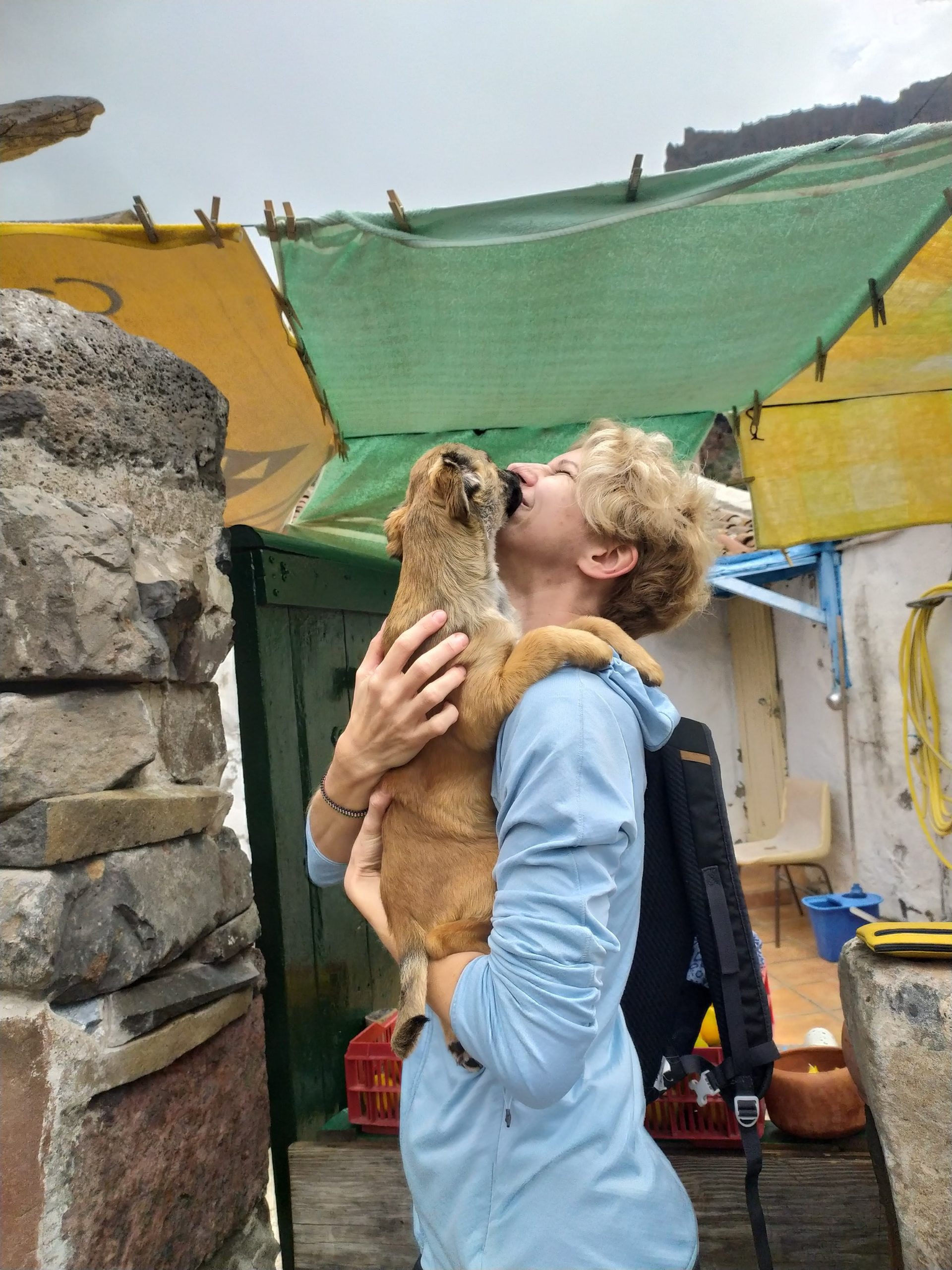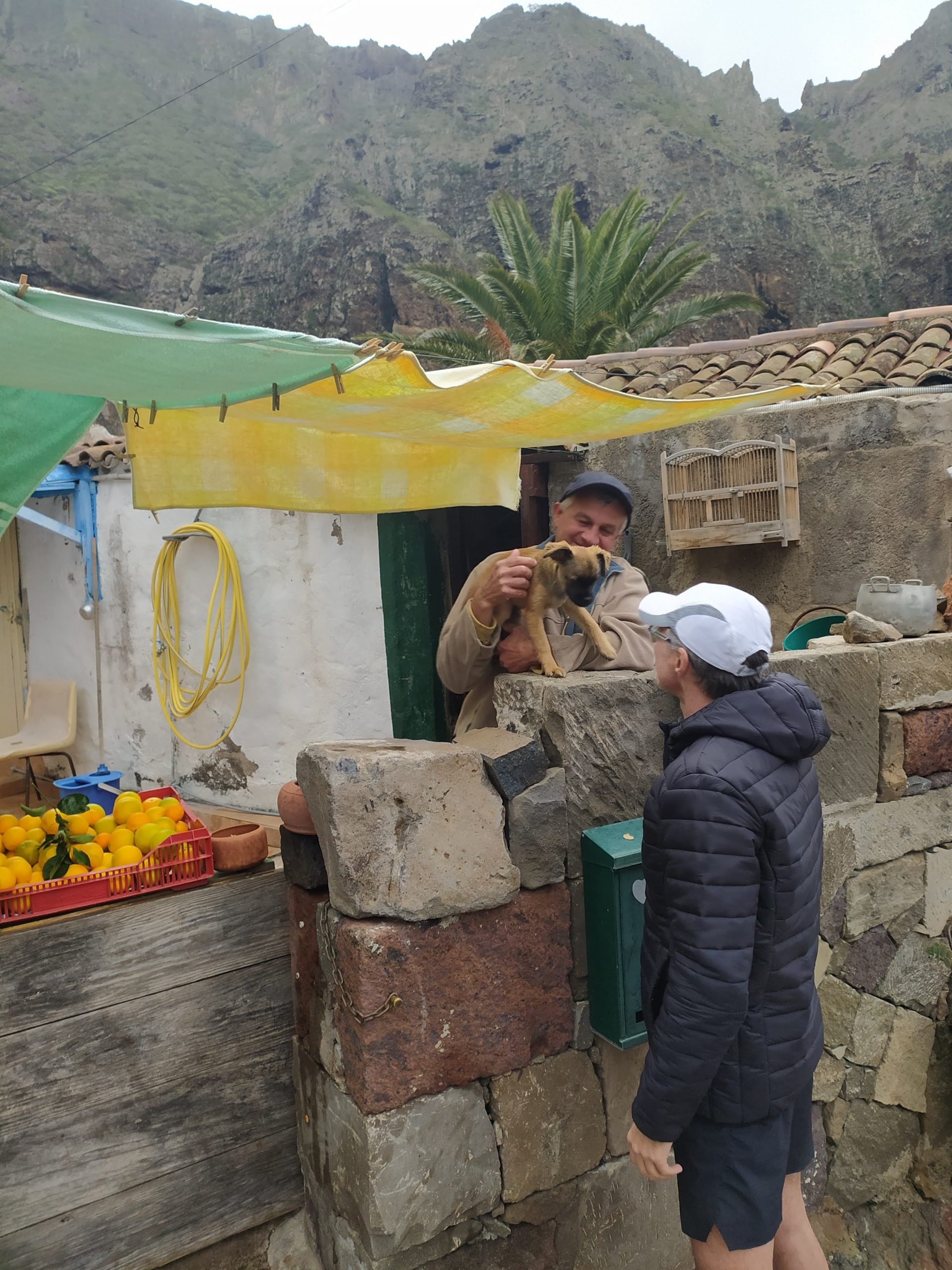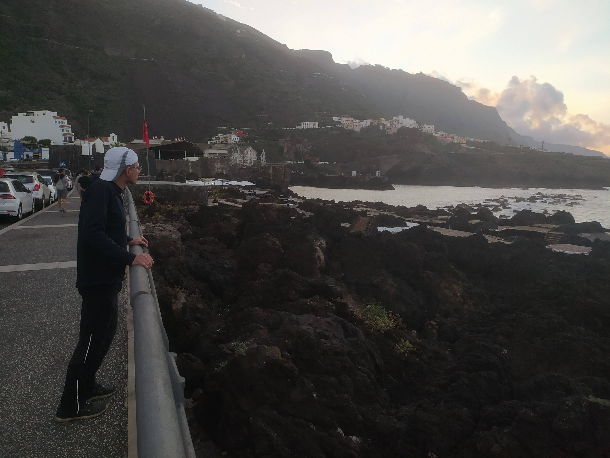 Zakup pomarańczy prosto z drzewa, przytulanki ze szczeniakiem o imieniu Scooby, łamany hiszpański i lokalne proste przekąski. Kolejne zdjęcie yacoola z gigantycznym beniaminkiem i moje, gdy wącham kwitnące drzewa. Takie nasze wakacyjne standardy. Później megalityczne klify Los Gigantes, przejazd pośród plantacji bananowców, plażing na czarnej plaży i kąpiel we wzburzonych falach oceanu. Kolejne serpentyny, obiad w knajpie nad brzegiem oceanu, z kieliszkiem wina, a nawet dwoma, bo klimat absolutnie temu sprzyja no i wyjątkowo fajny kelner z Urugwaju mówiący, a przynajmniej umiejący porozumieć się z turystami w siedmiu językach. Mega dzień, mega wyspa!