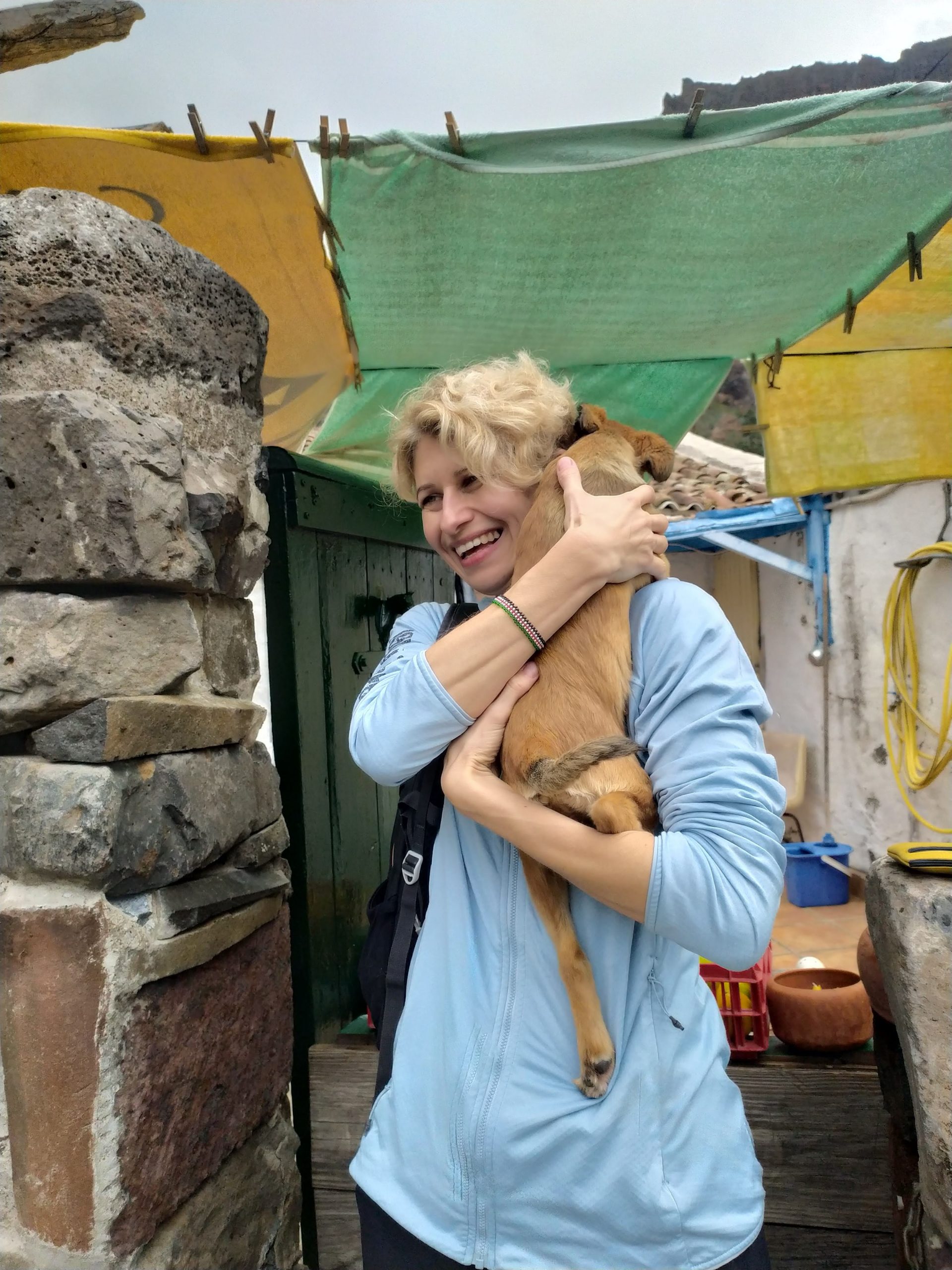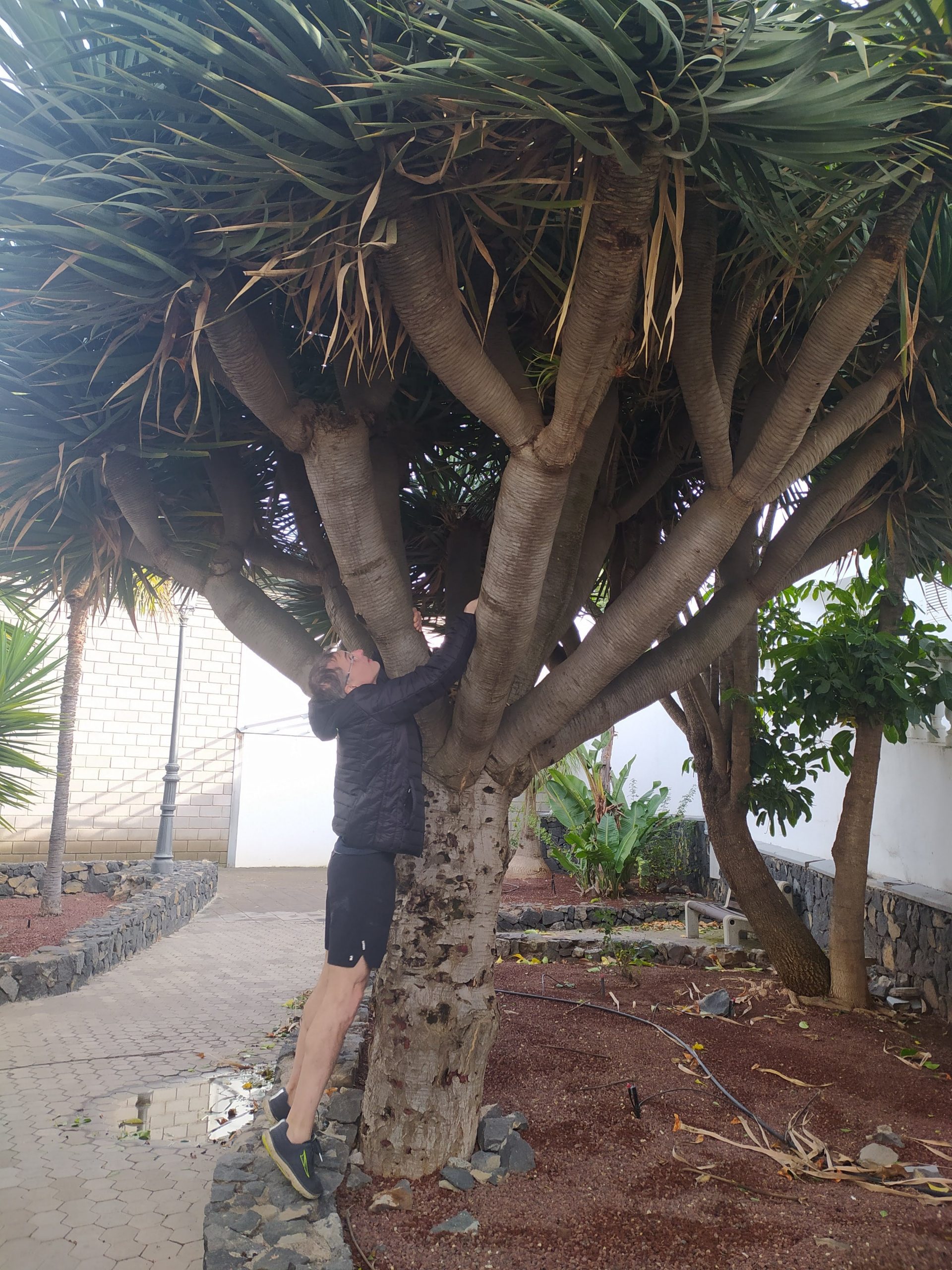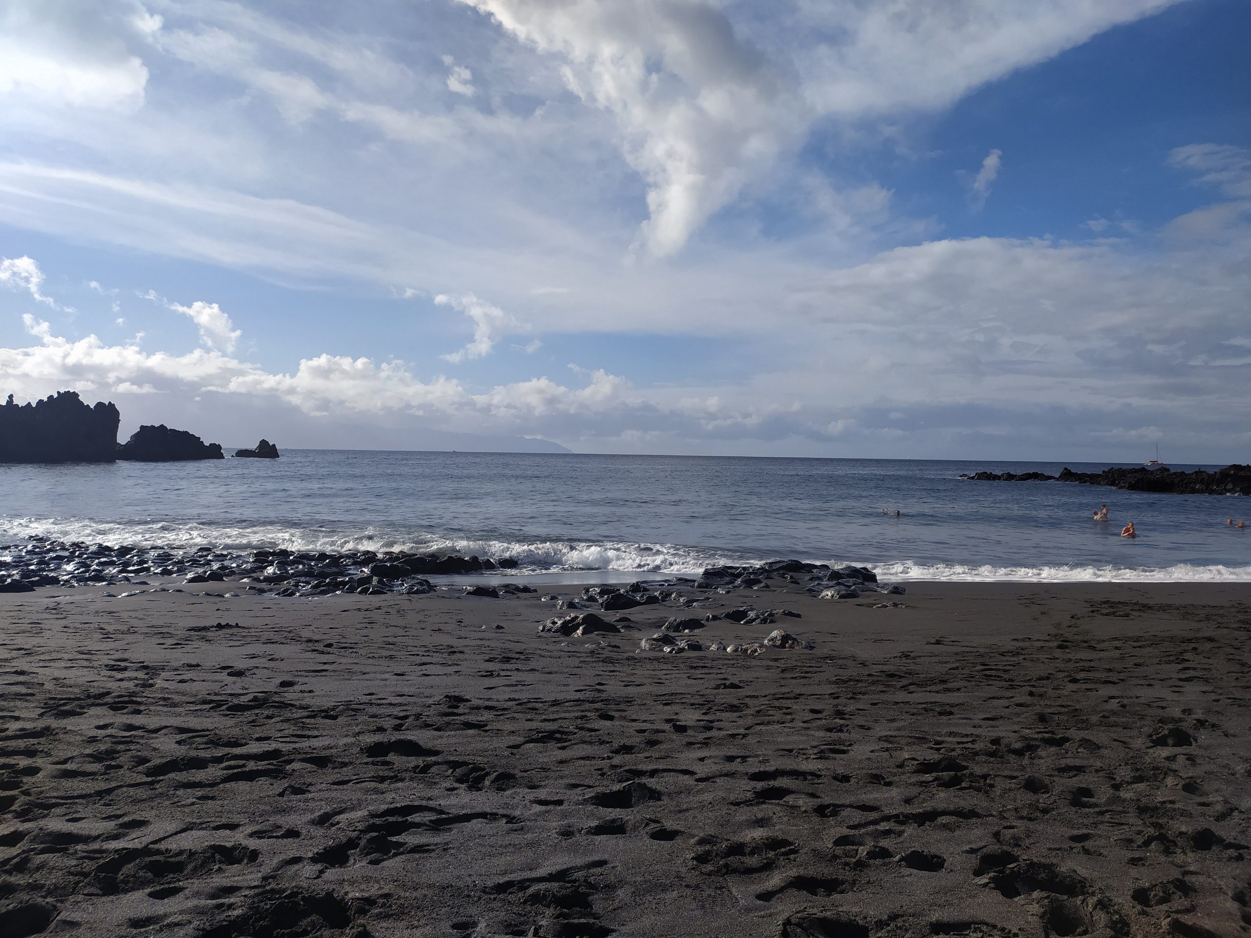 Zakup pomarańczy prosto z drzewa, przytulanki ze szczeniakiem o imieniu Scooby, łamany hiszpański i lokalne proste przekąski. Kolejne zdjęcie yacoola z gigantycznym beniaminkiem i moje, gdy wącham kwitnące drzewa. Takie nasze wakacyjne standardy. Później megalityczne klify Los Gigantes, przejazd pośród plantacji bananowców, plażing na czarnej plaży i kąpiel we wzburzonych falach oceanu. Kolejne serpentyny, obiad w knajpie nad brzegiem oceanu, z kieliszkiem wina, a nawet dwoma, bo klimat absolutnie temu sprzyja no i wyjątkowo fajny kelner z Urugwaju mówiący, a przynajmniej umiejący porozumieć się z turystami w siedmiu językach. Mega dzień, mega wyspa!