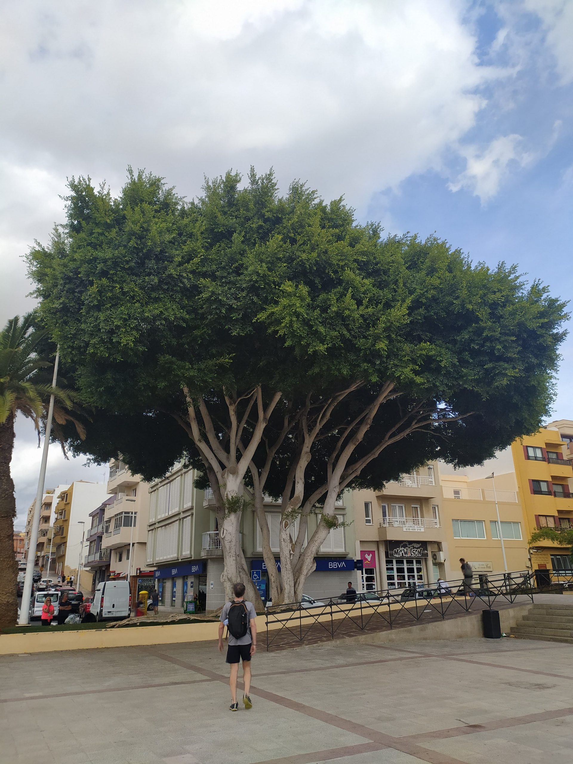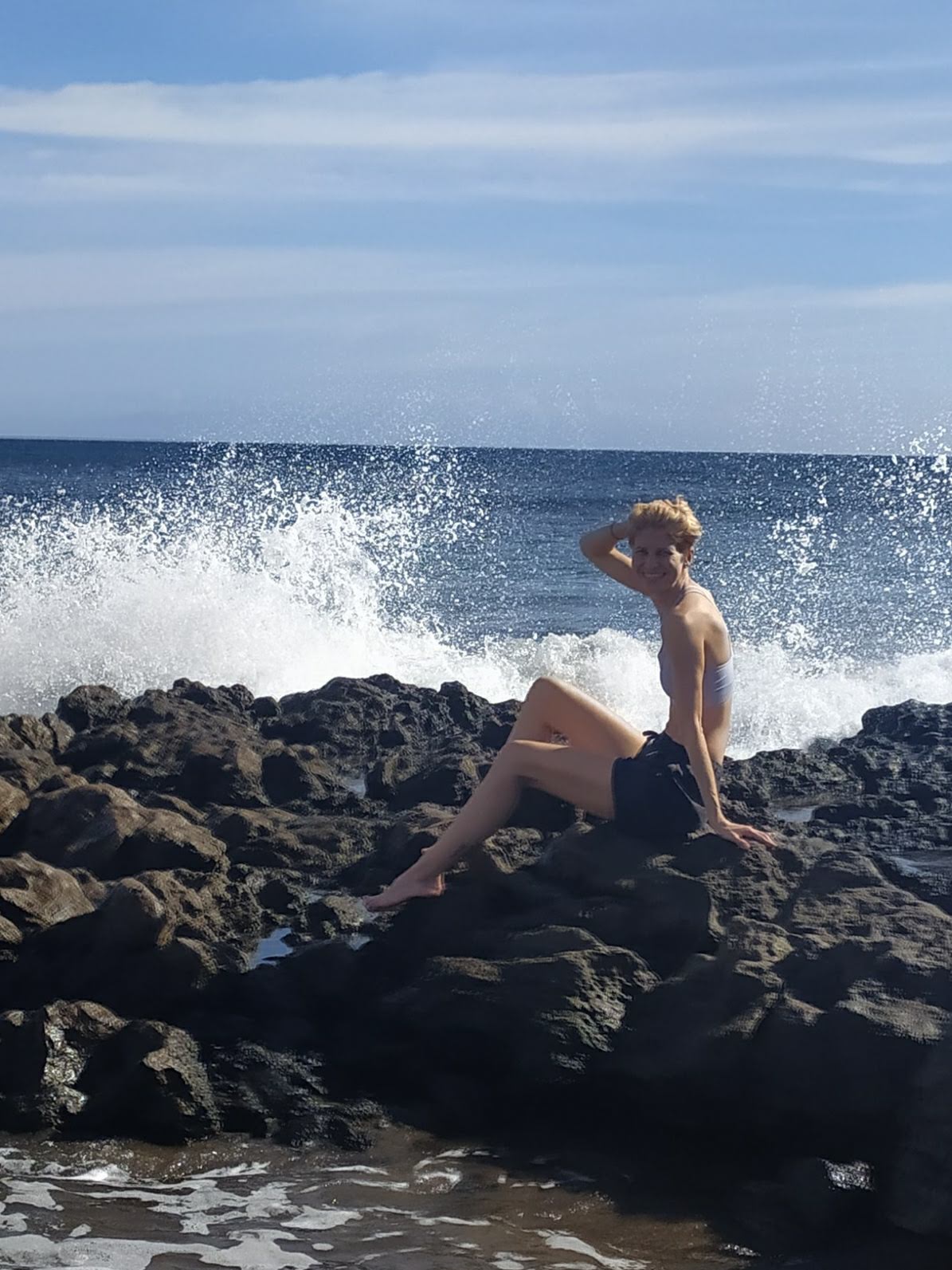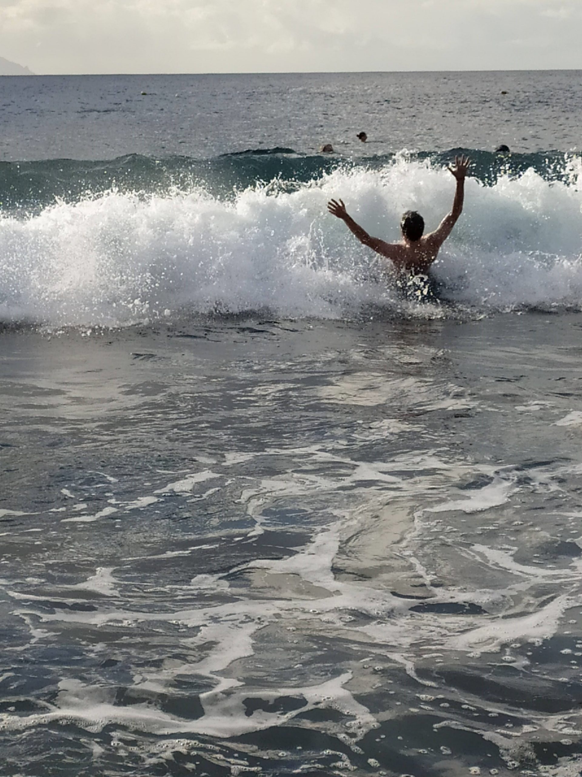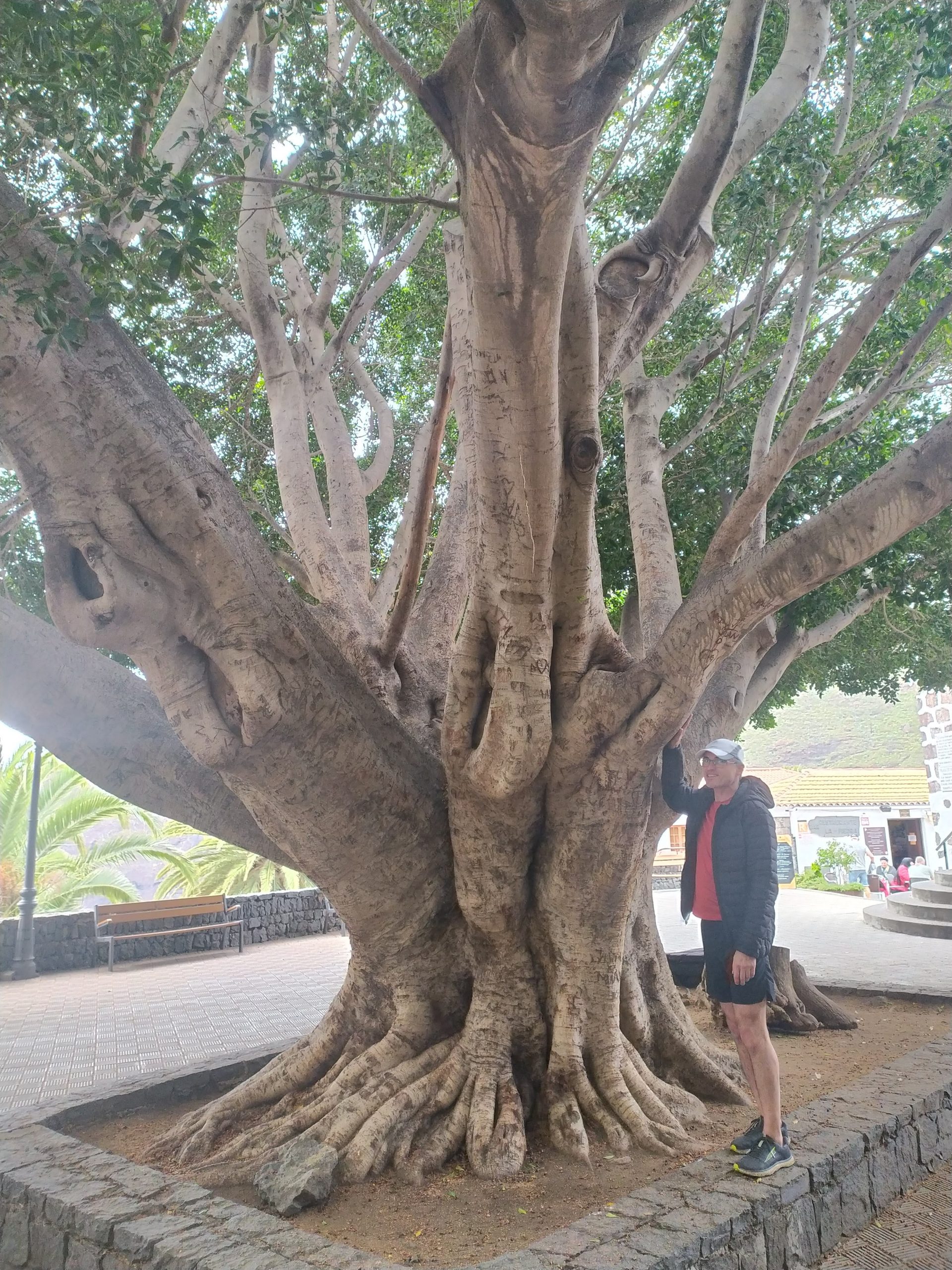 Zakup pomarańczy prosto z drzewa, przytulanki ze szczeniakiem o imieniu Scooby, łamany hiszpański i lokalne proste przekąski. Kolejne zdjęcie yacoola z gigantycznym beniaminkiem i moje, gdy wącham kwitnące drzewa. Takie nasze wakacyjne standardy. Później megalityczne klify Los Gigantes, przejazd pośród plantacji bananowców, plażing na czarnej plaży i kąpiel we wzburzonych falach oceanu. Kolejne serpentyny, obiad w knajpie nad brzegiem oceanu, z kieliszkiem wina, a nawet dwoma, bo klimat absolutnie temu sprzyja no i wyjątkowo fajny kelner z Urugwaju mówiący, a przynajmniej umiejący porozumieć się z turystami w siedmiu językach. Mega dzień, mega wyspa!