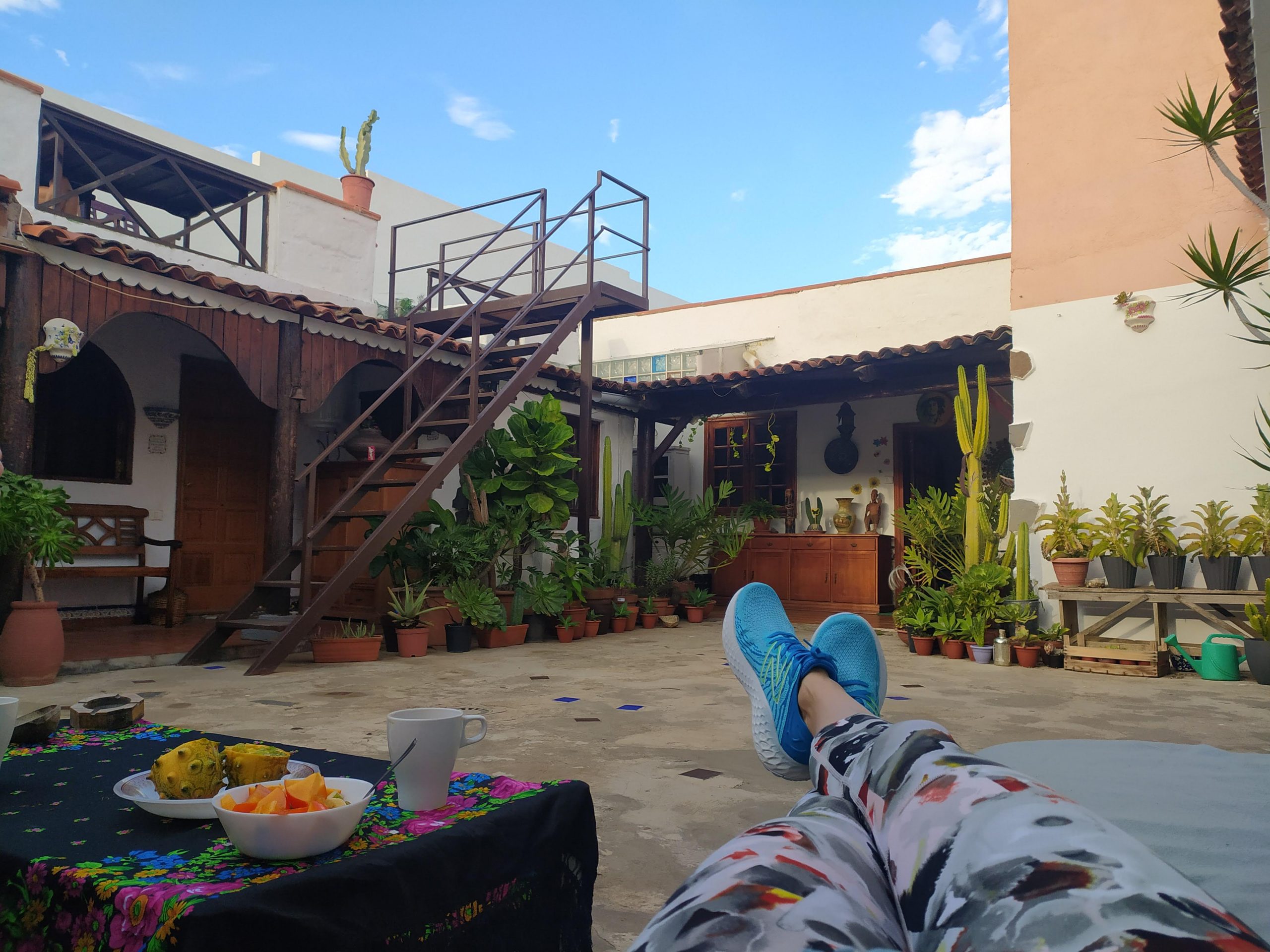 Na Teneryfie śpimy w fantastycznym miejscu, prowadzonym przez młode małżeństwo z Polski i ich przyjaciela. Miasteczko Icod de Vinos, Guesthouse Casa Antonia. Stary oryginalny kanaryjski dom, mający 160 lat, z pięknym patio, ogrodem, detalami. Ponieważ właściciele to zapaleni podróżnicy i ciekawi świata ludzie, szybko znaleźliśmy wspólny język przez co trudno rano nam się stamtąd zebrać na zwiedzanie wyspy. Zwłaszcza, że na słonecznym patio kawa smakuje wyśmienicie 🙂