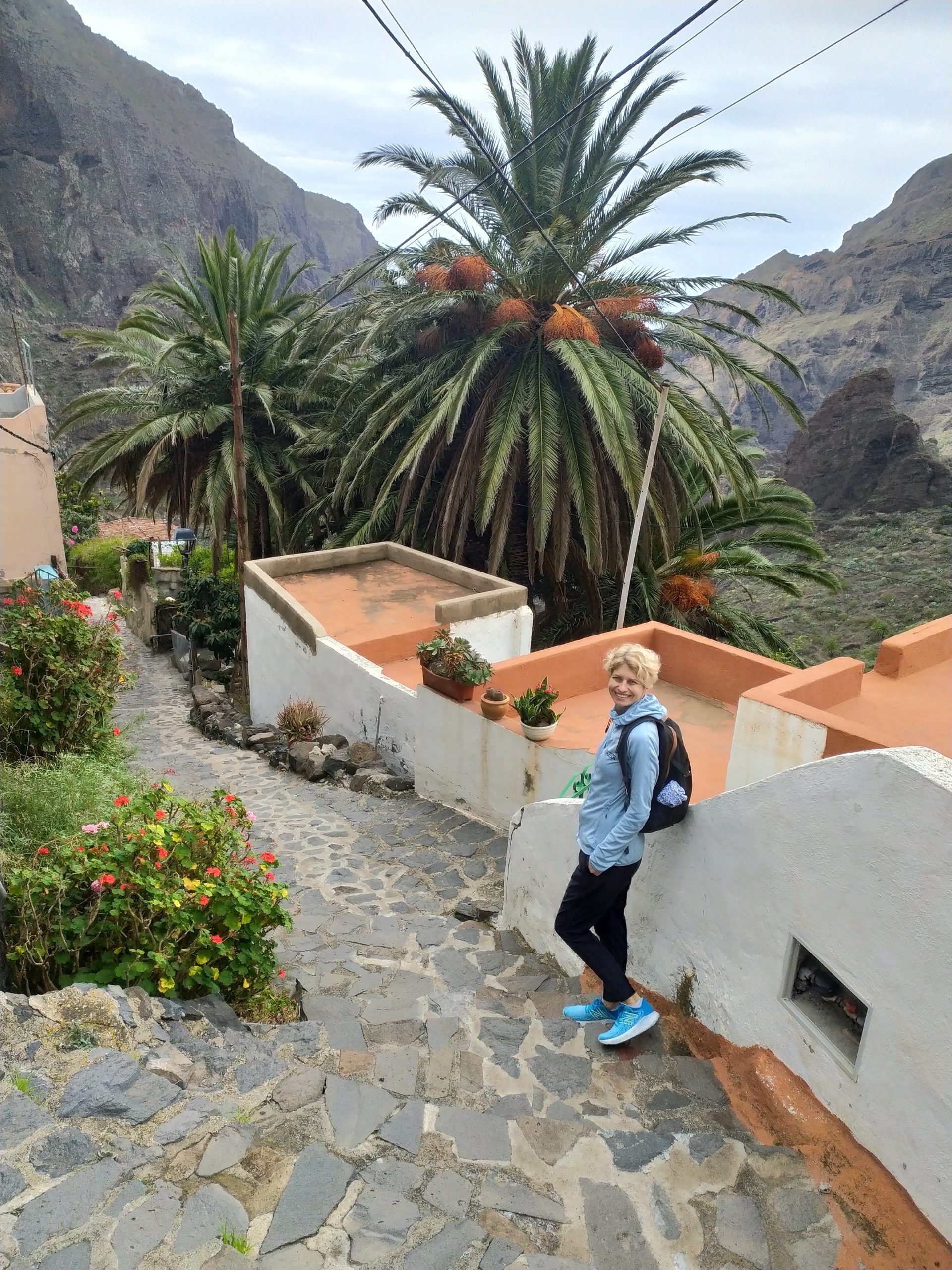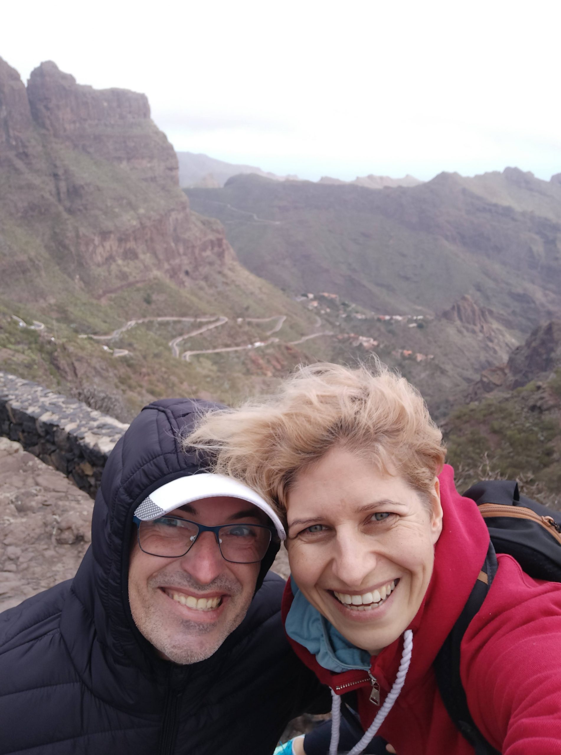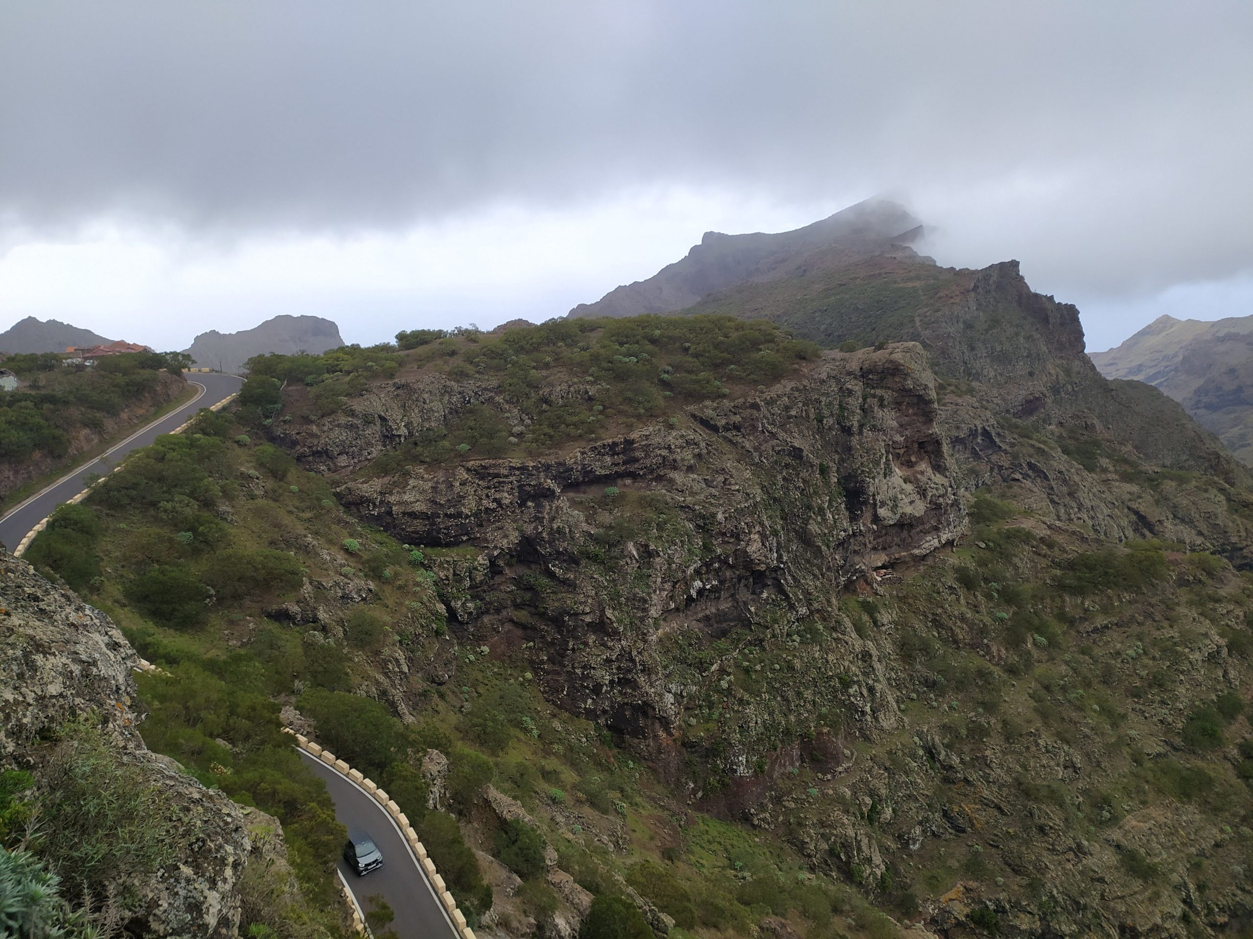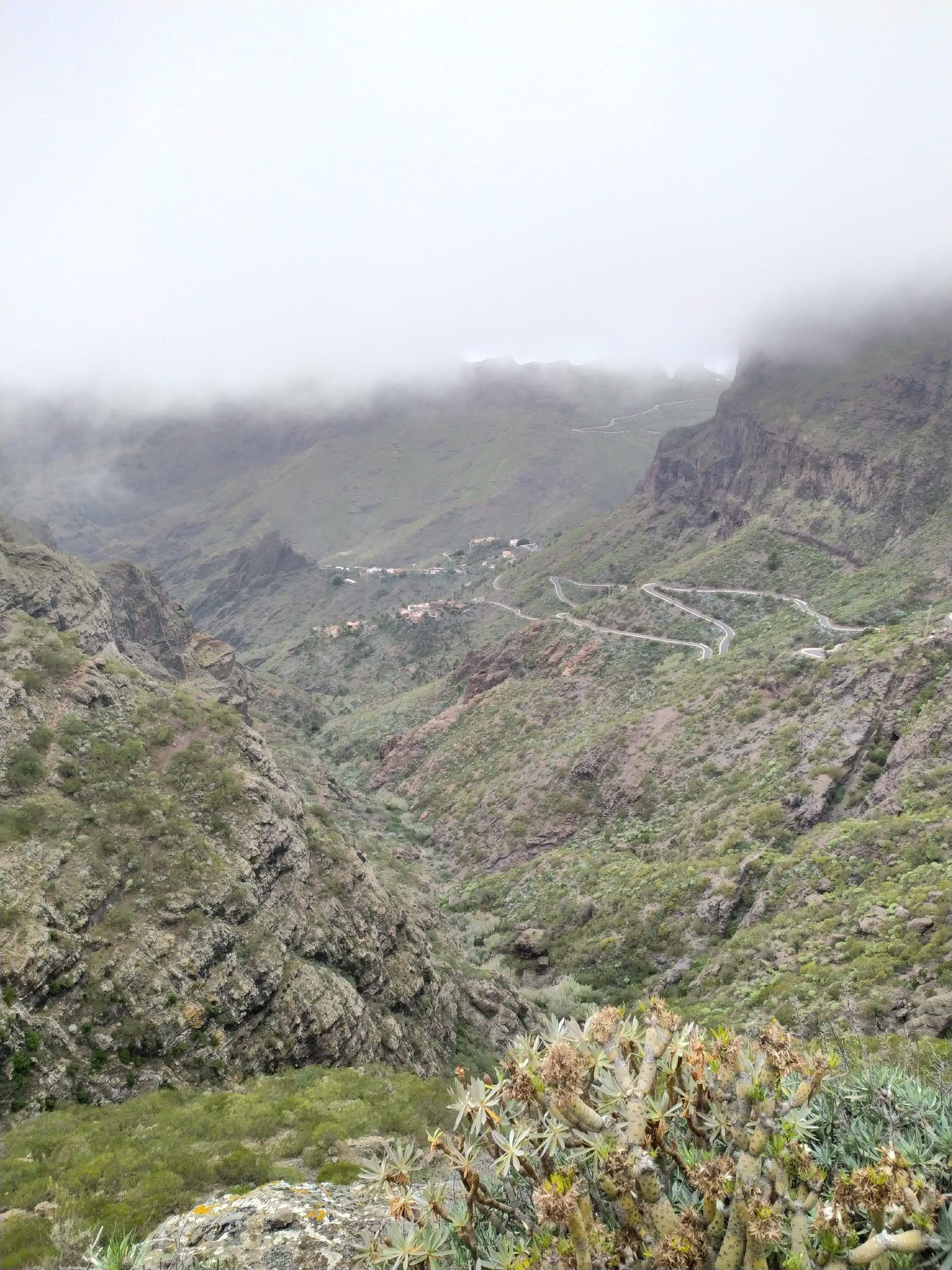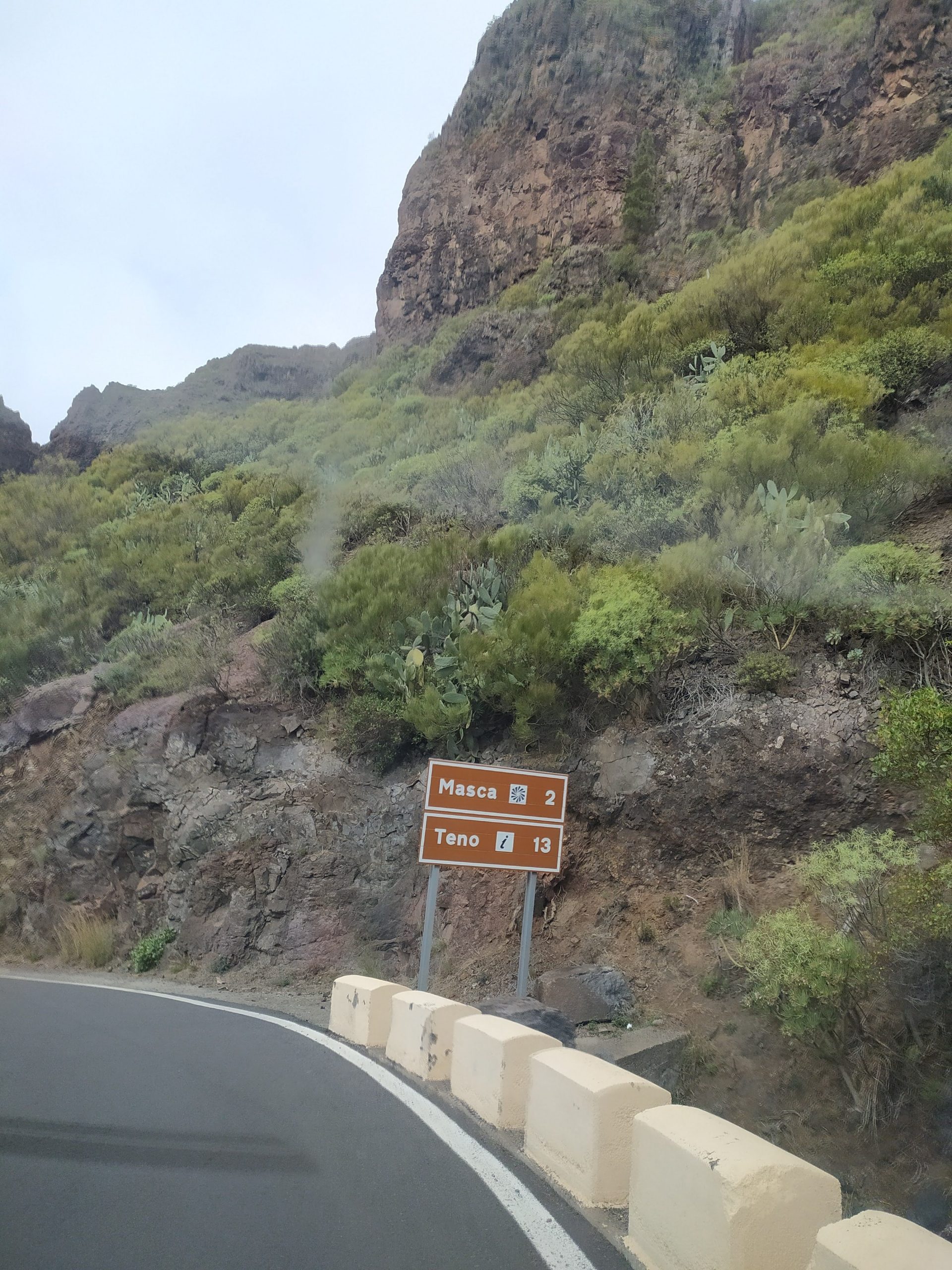 Dziś w planach mieliśmy odwiedzenie górskiej, małej osady Masca. Miejsce, dzięki swojemu położeniu wśród szczytów gór, porównywane jest do Machu Picchu. Nie byłam jeszcze w tym oryginalnym, ale w kanaryjskim się zakochałam! Prowadzi do niego mega kręta droga. Yacool jest świetnym kierowcą, sama w życiu bym tam nie dojechała… Wąskie, strome serpentyny, mijanki z autobusem na grubość lakieru… I te widoki! Tajemnicze i nieziemskie, spowite chmurami i lśniące zielenią w pięknym słońcu. Nie wiem, które bardziej mnie urzekły.