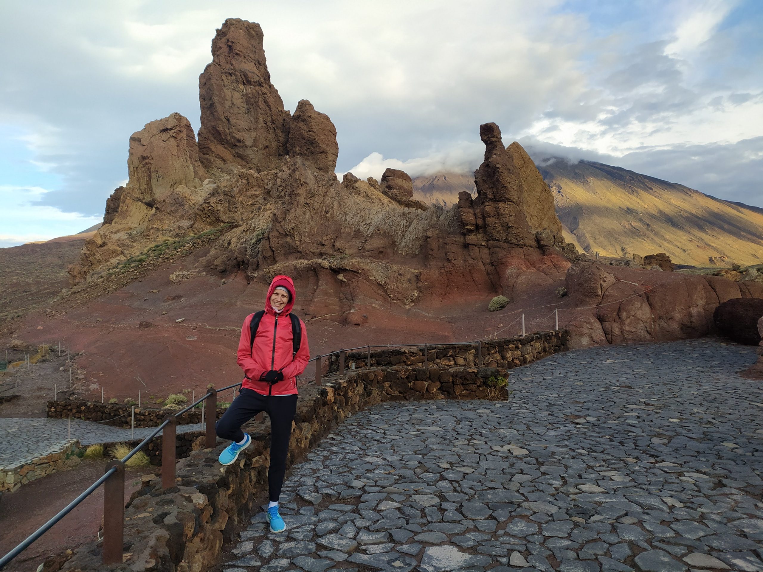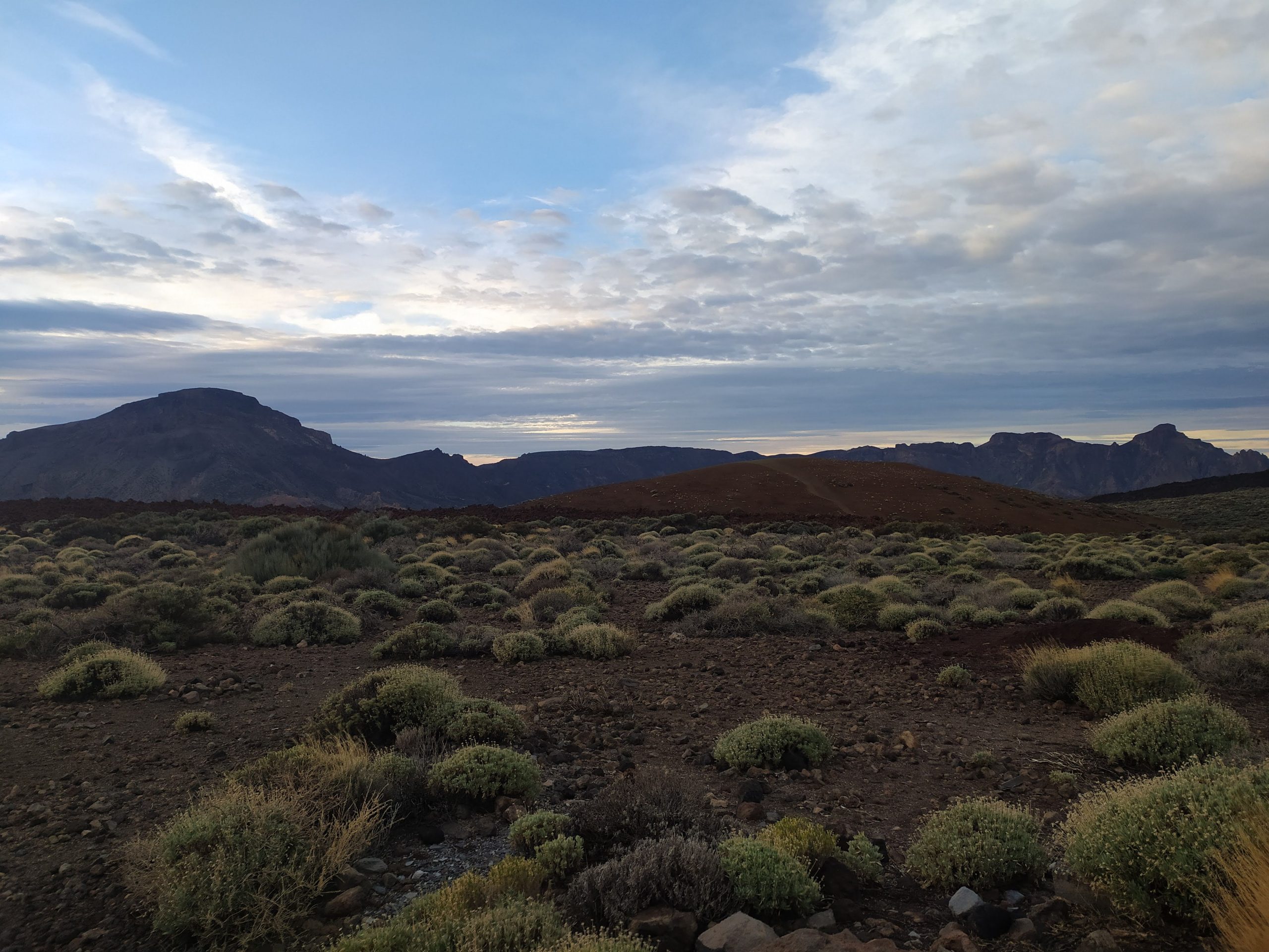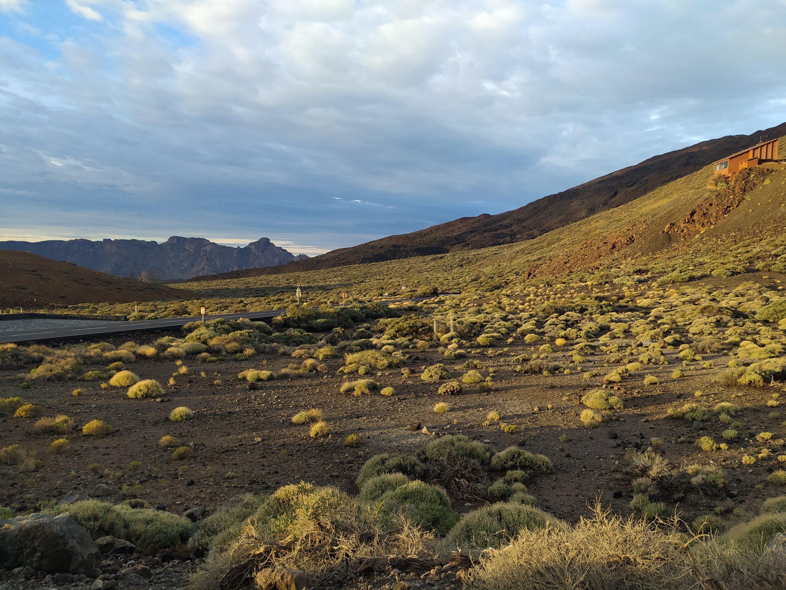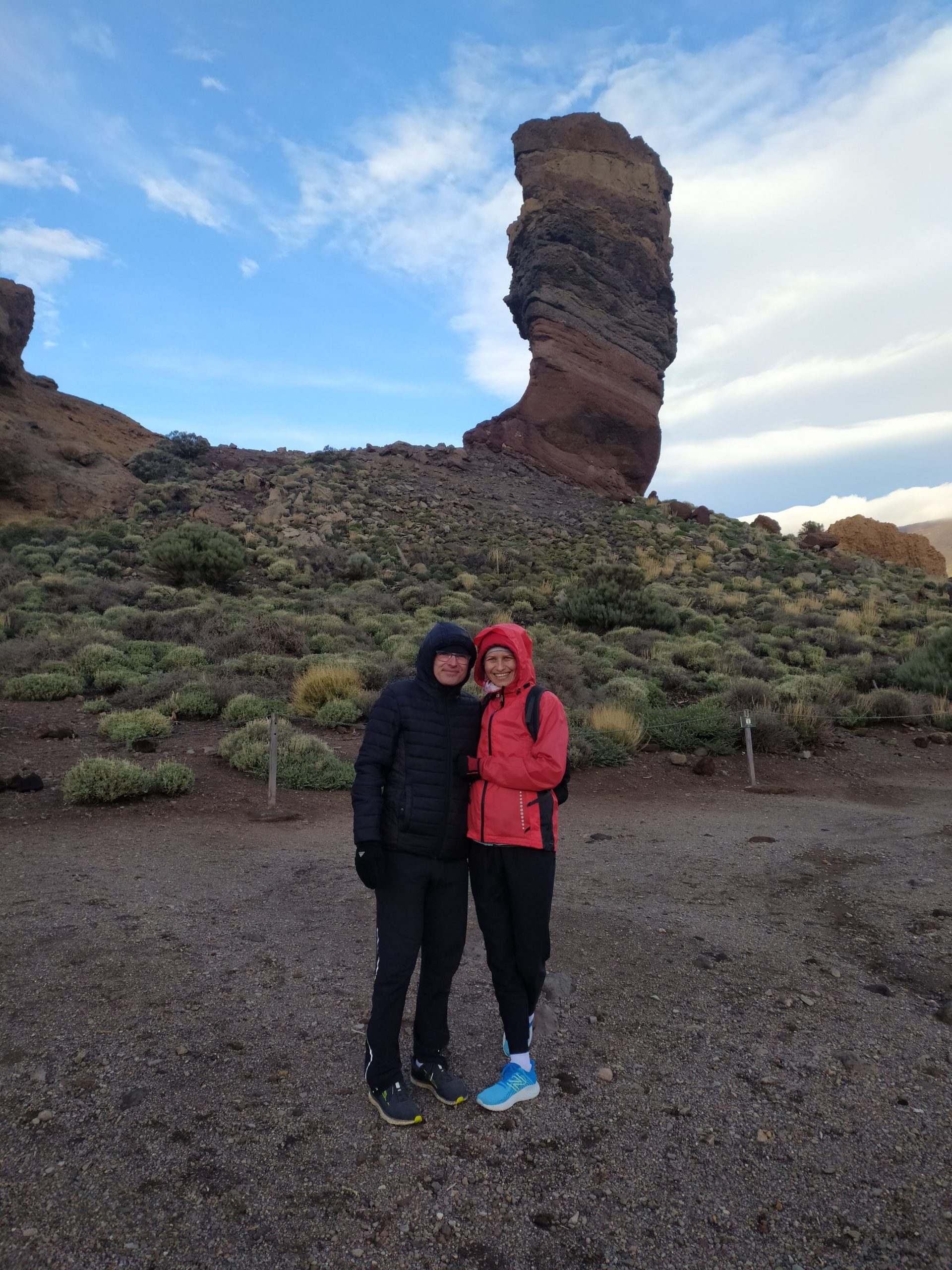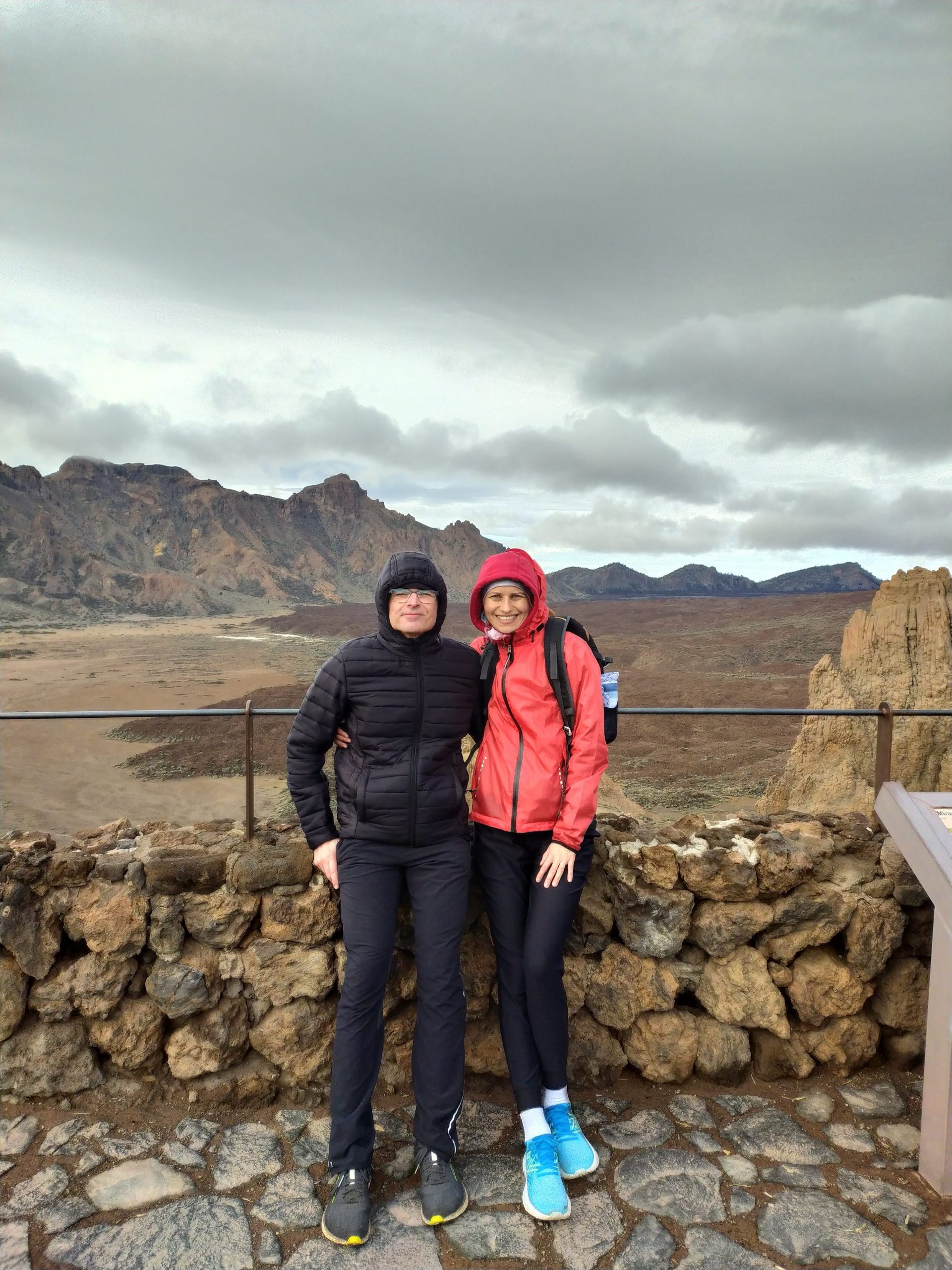Tym razem wybraliśmy inną drogę, mniej stromą choć przez to z licznymi serpentynami. Dojazd z Icod pod wulkan zajął nam niecałe półtorej godziny. Dopiero na miejscu zaczęło trochę świtać. W takim półmroku zbocza wulkanu wyglądały bardzo złowrogo. Można było poczuć jego surowość i niewątpliwą siłę. Zatrzymaliśmy się na kilku punktach widokowych, mocno wiało i temperatura z 22 stopni na dole, tu spadła do 8.