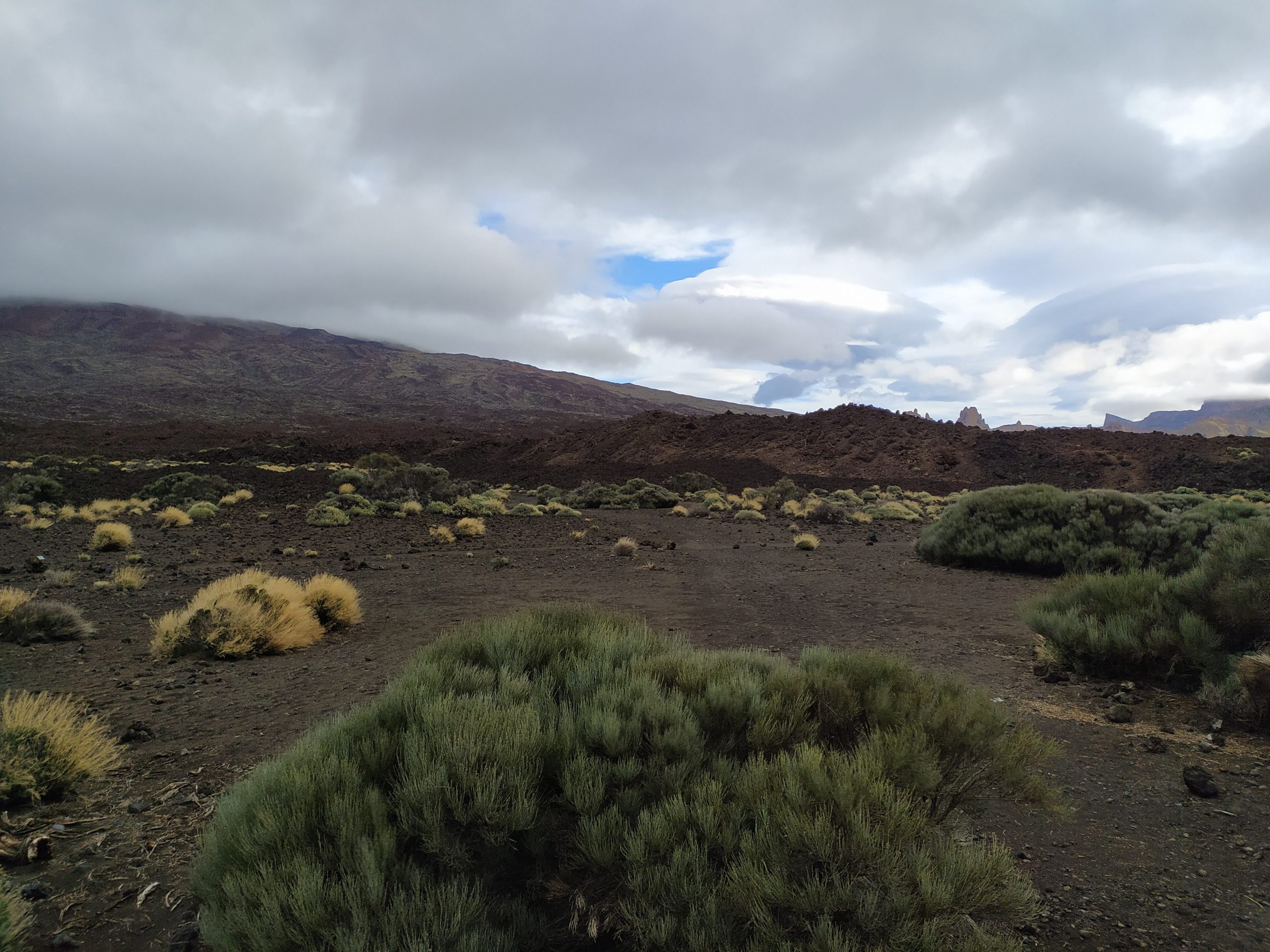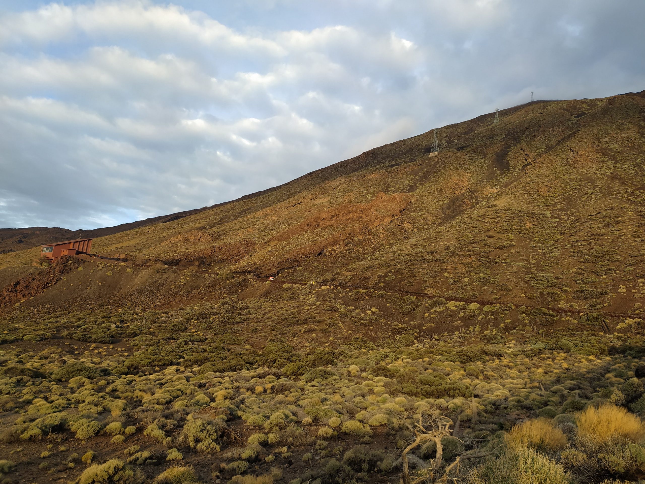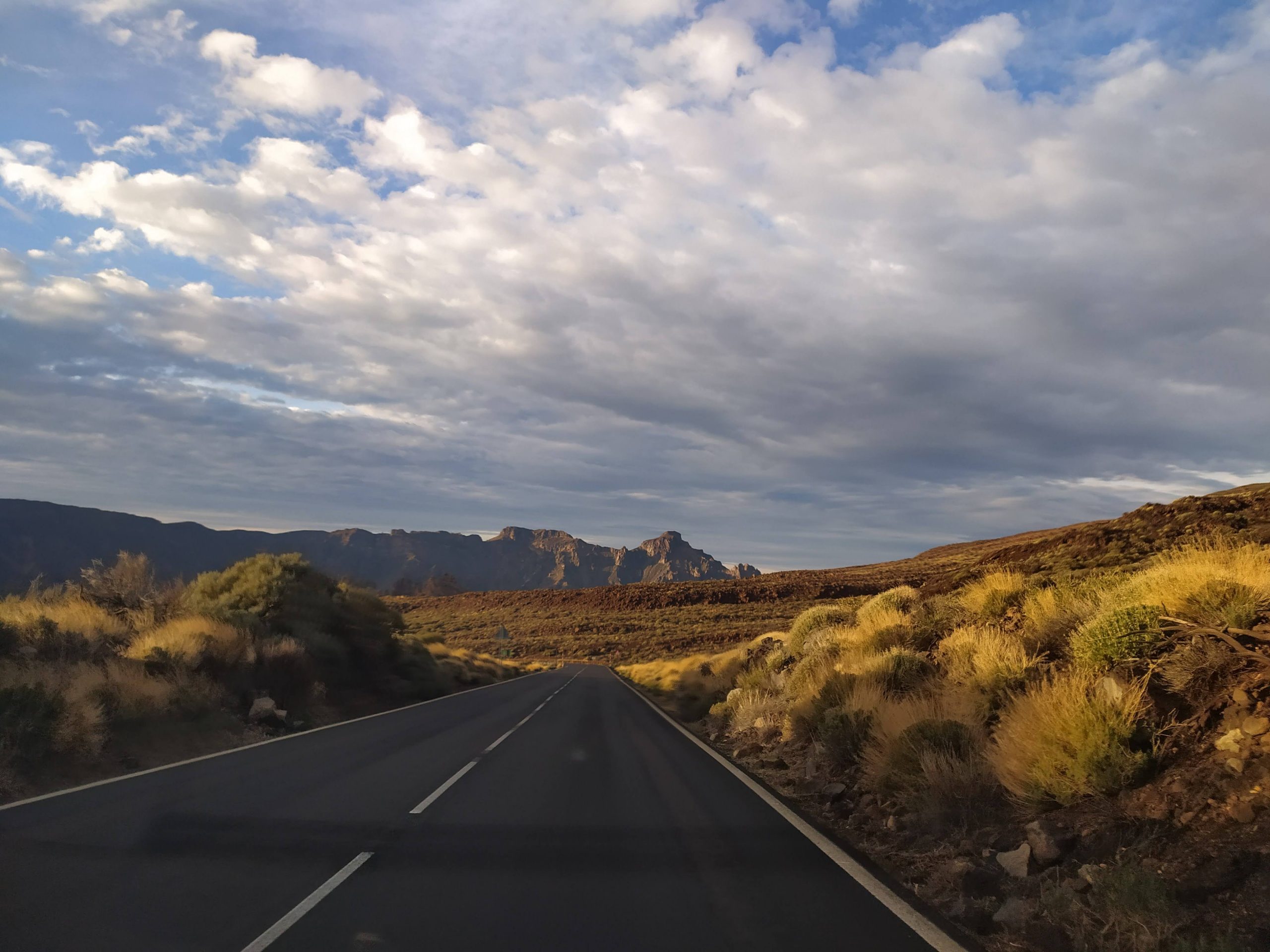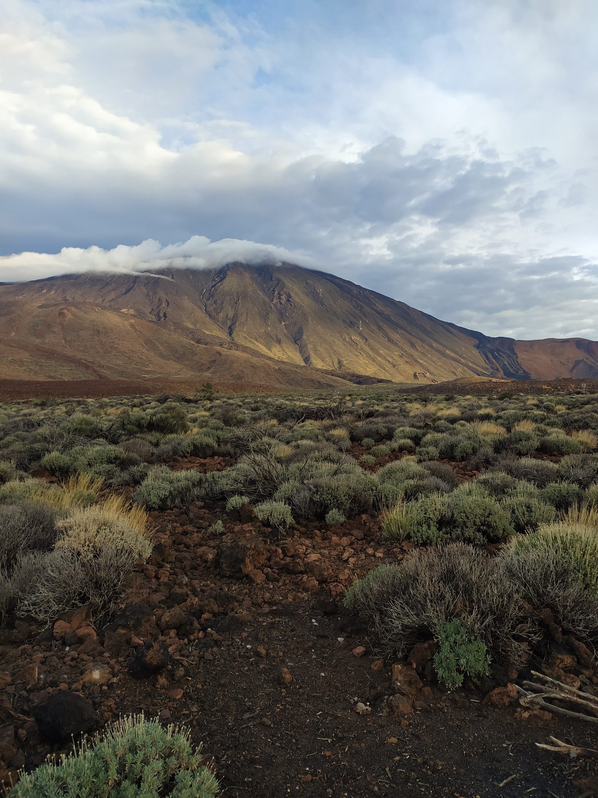 Tym razem wybraliśmy inną drogę, mniej stromą choć przez to z licznymi serpentynami. Dojazd z Icod pod wulkan zajął nam niecałe półtorej godziny. Dopiero na miejscu zaczęło trochę świtać. W takim półmroku zbocza wulkanu wyglądały bardzo złowrogo. Można było poczuć jego surowość i niewątpliwą siłę. Zatrzymaliśmy się na kilku punktach widokowych, mocno wiało i temperatura z 22 stopni na dole, tu spadła do 8.