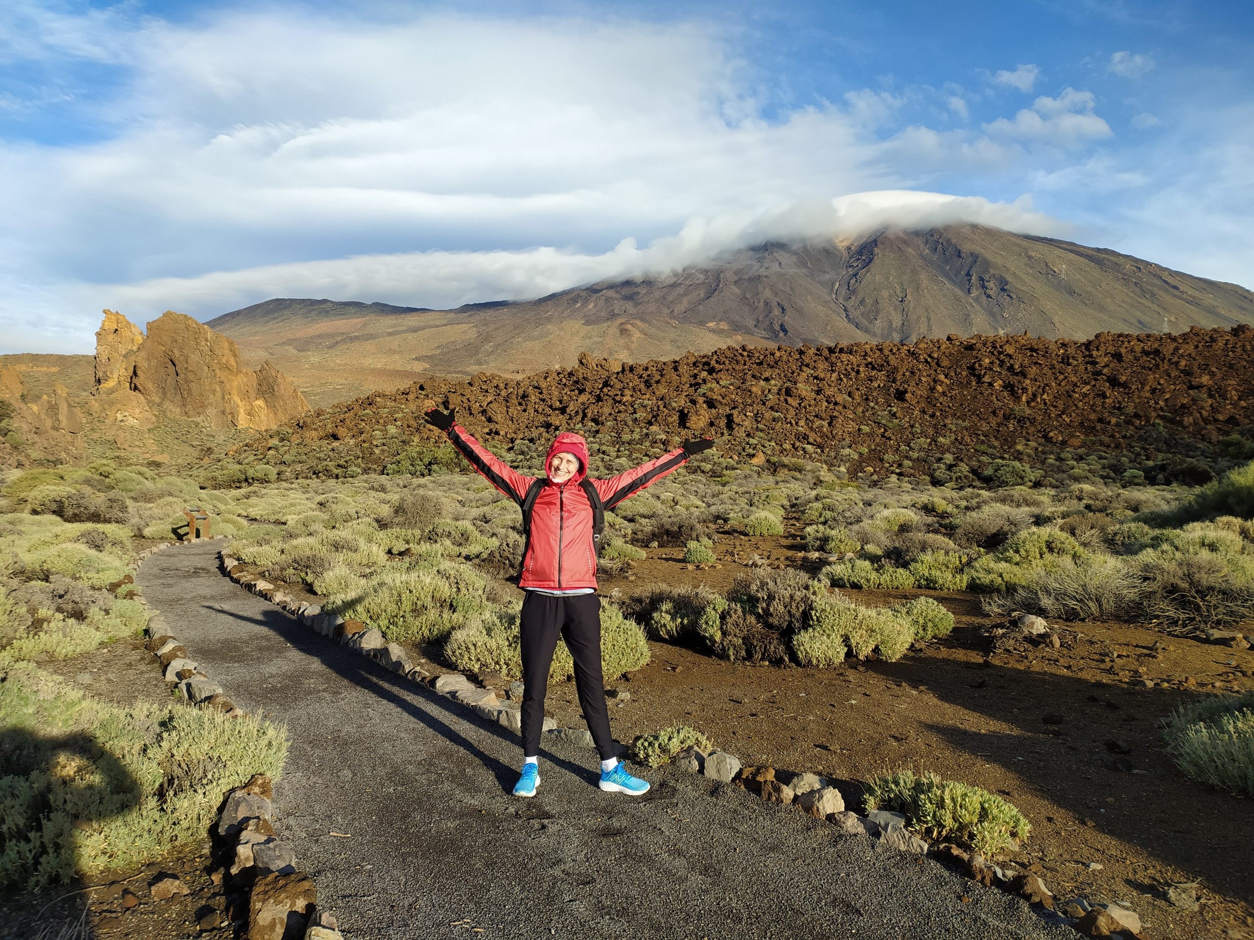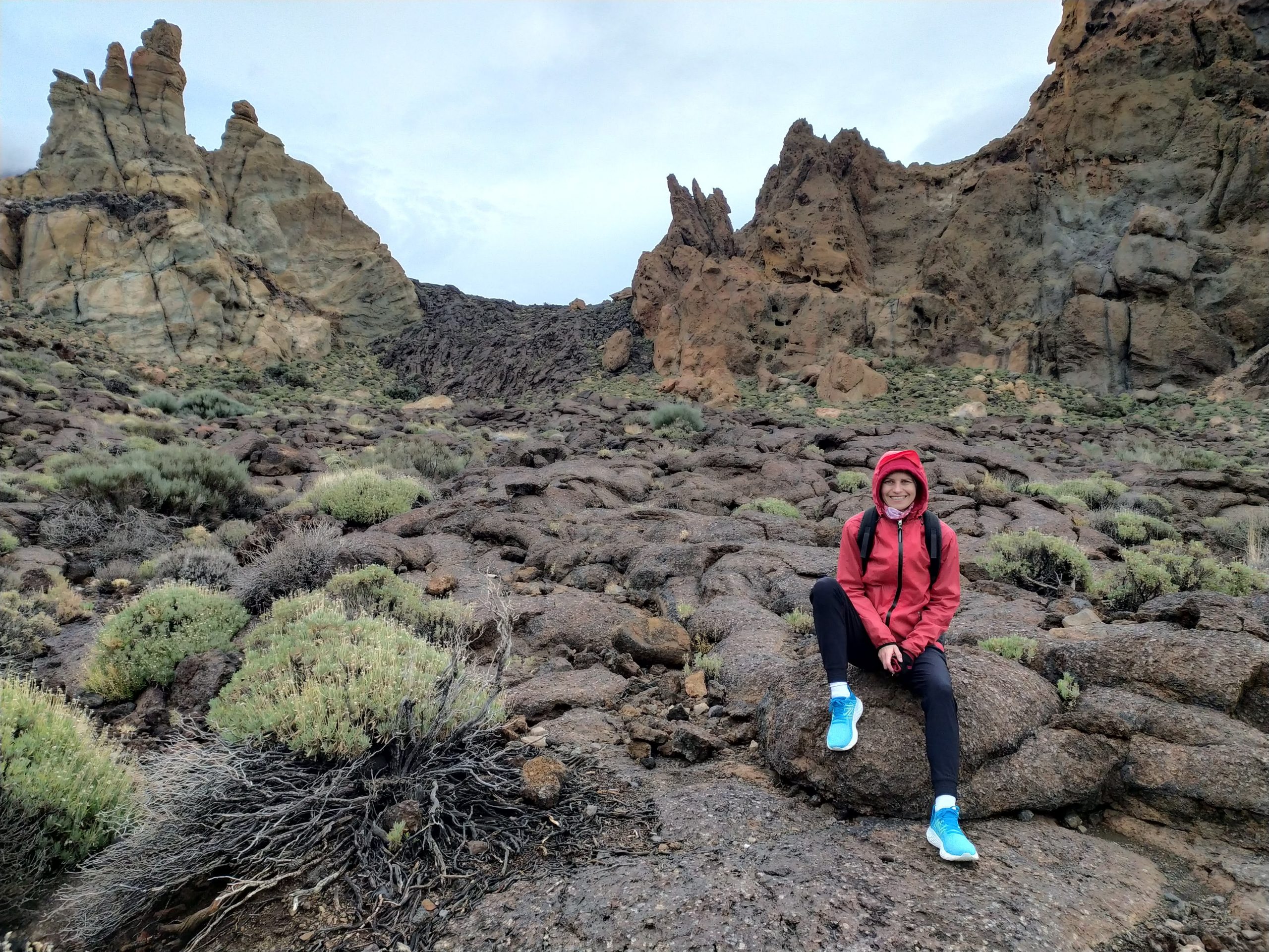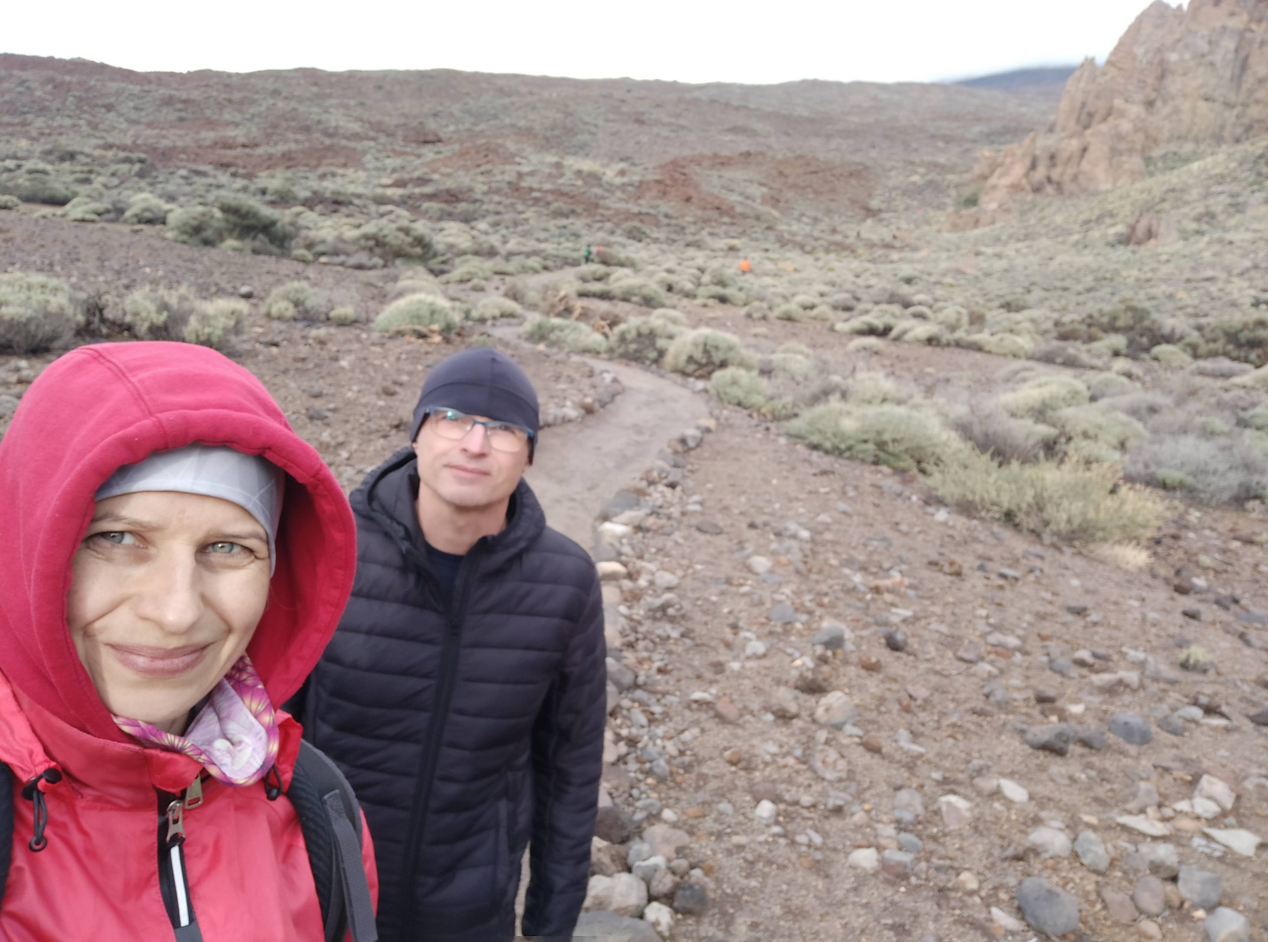 Miejsce jest niesamowite. Rozległe pola lawy, skalne ostańce, pojedyncze rośliny, w tym „szkielety”, które latem są piękne czerwone. Widoki nieziemskie! Jak starczy nam czasu wrócimy tu jeszcze, bo szlaków jest sporo do przejścia. Oczywiście ścieżki ocenialiśmy też pod kątem biegania, na niektórych można by było spokojnie truchtać, i to na wysokości ok 2000 m npm.