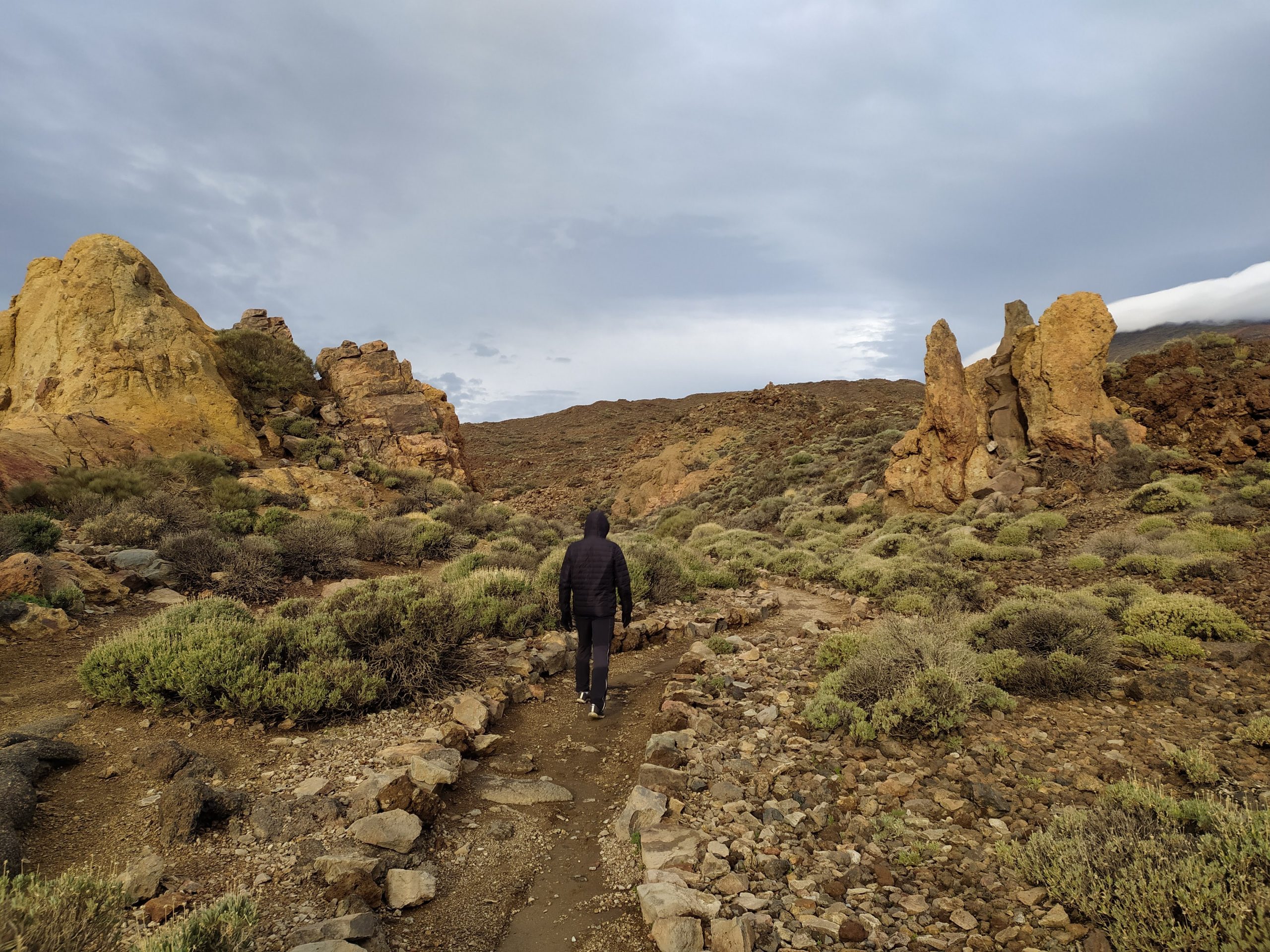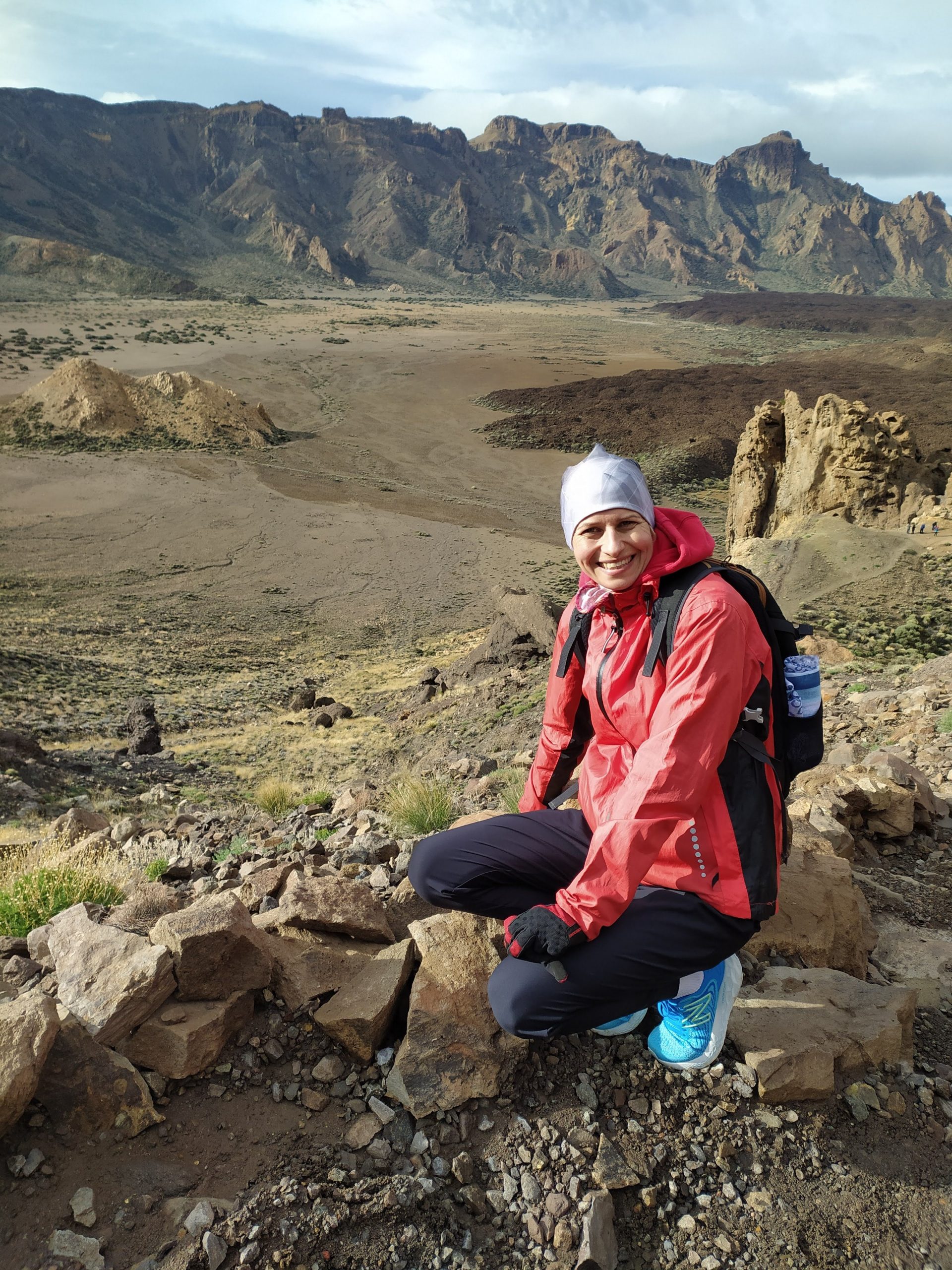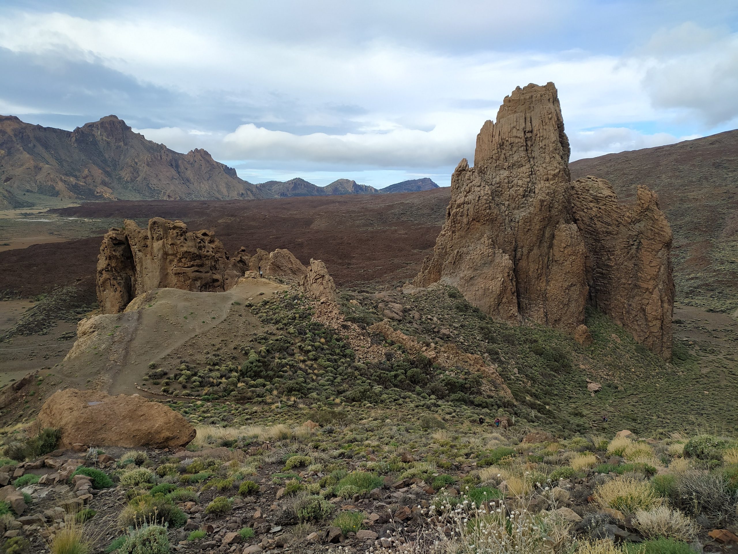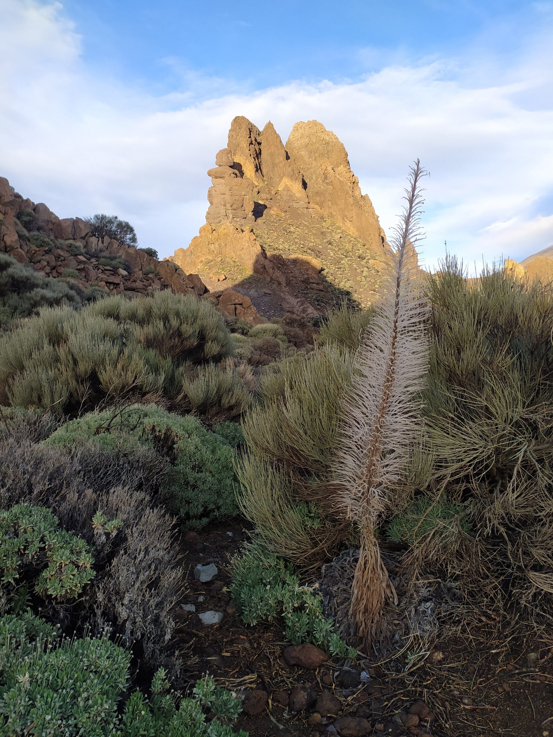 Miejsce jest niesamowite. Rozległe pola lawy, skalne ostańce, pojedyncze rośliny, w tym „szkielety”, które latem są piękne czerwone. Widoki nieziemskie! Jak starczy nam czasu wrócimy tu jeszcze, bo szlaków jest sporo do przejścia. Oczywiście ścieżki ocenialiśmy też pod kątem biegania, na niektórych można by było spokojnie truchtać, i to na wysokości ok 2000 m npm.
