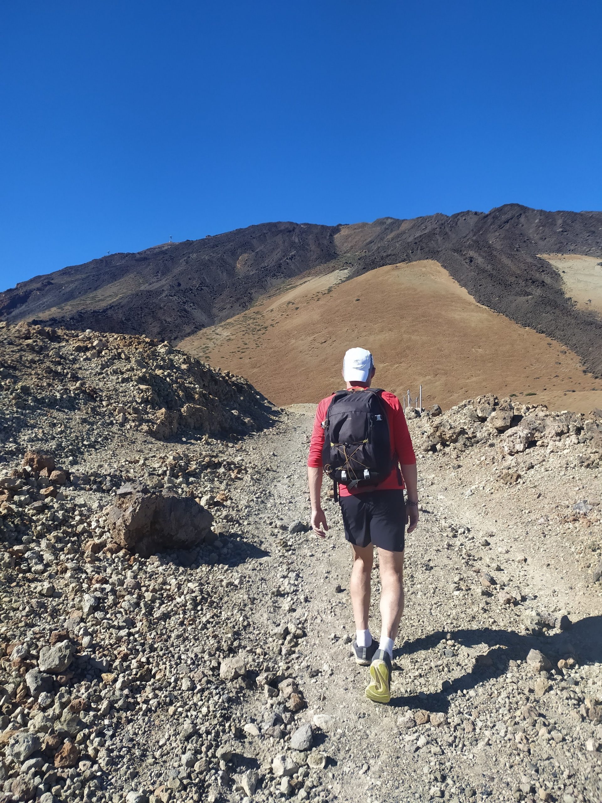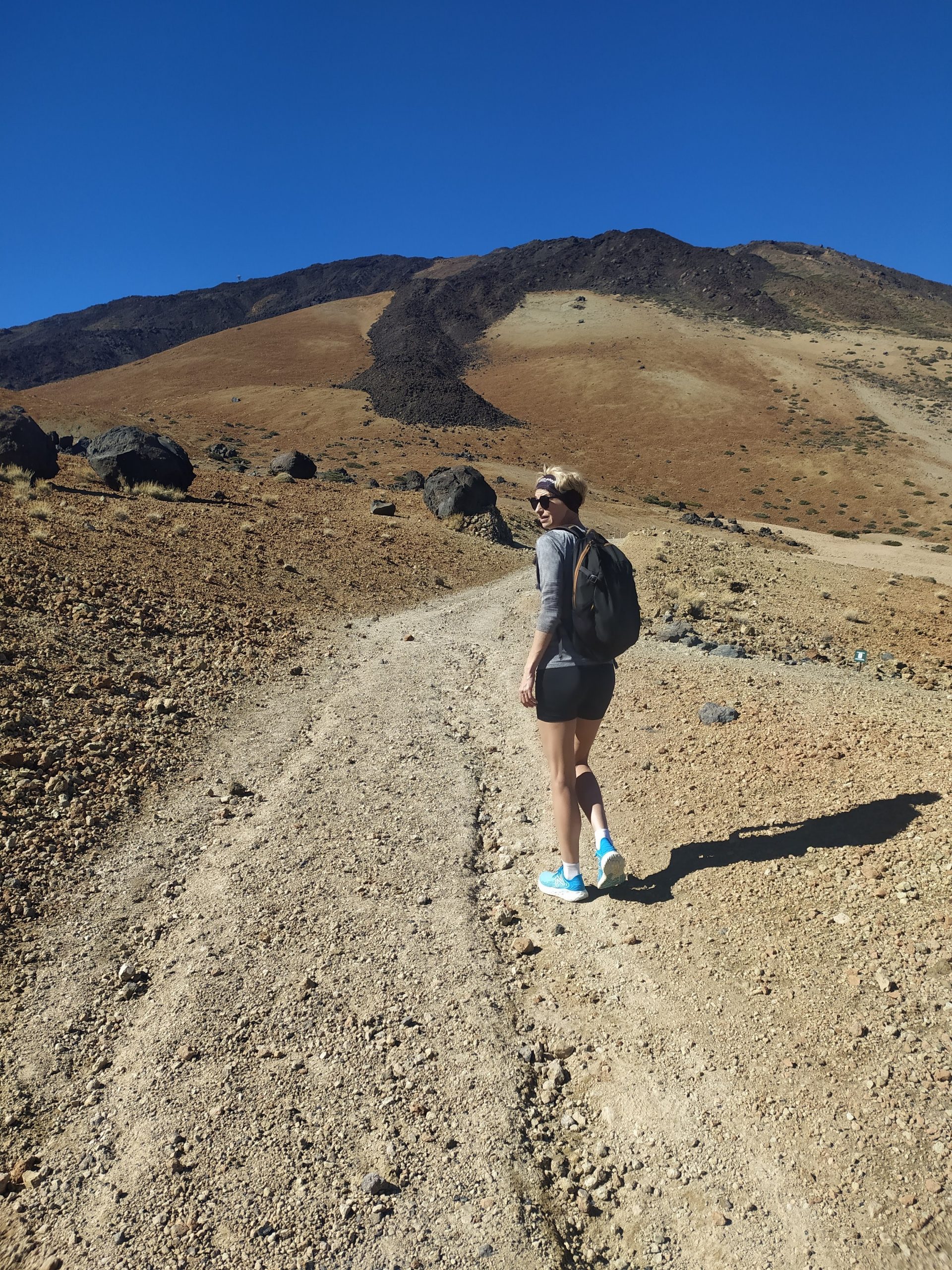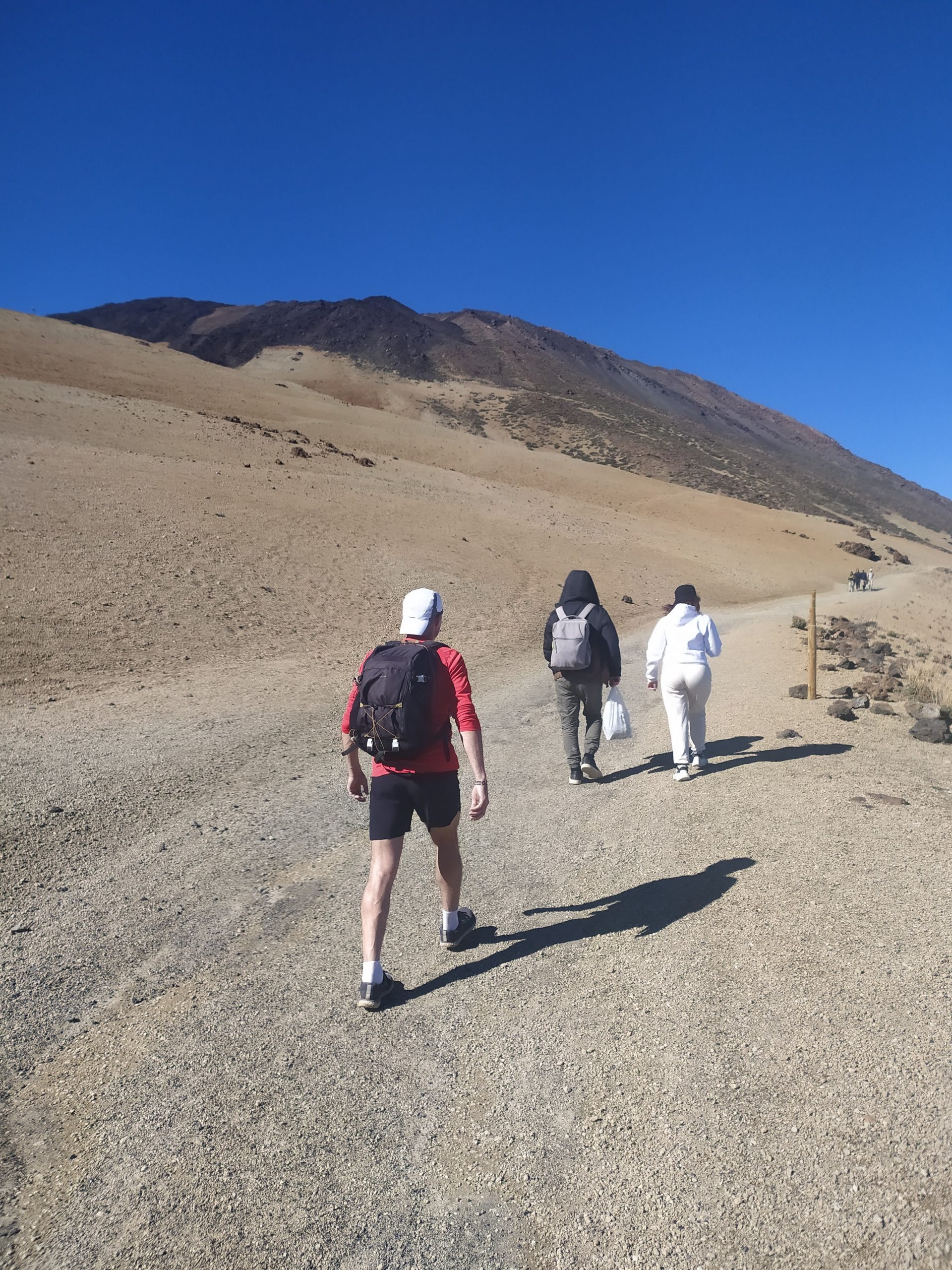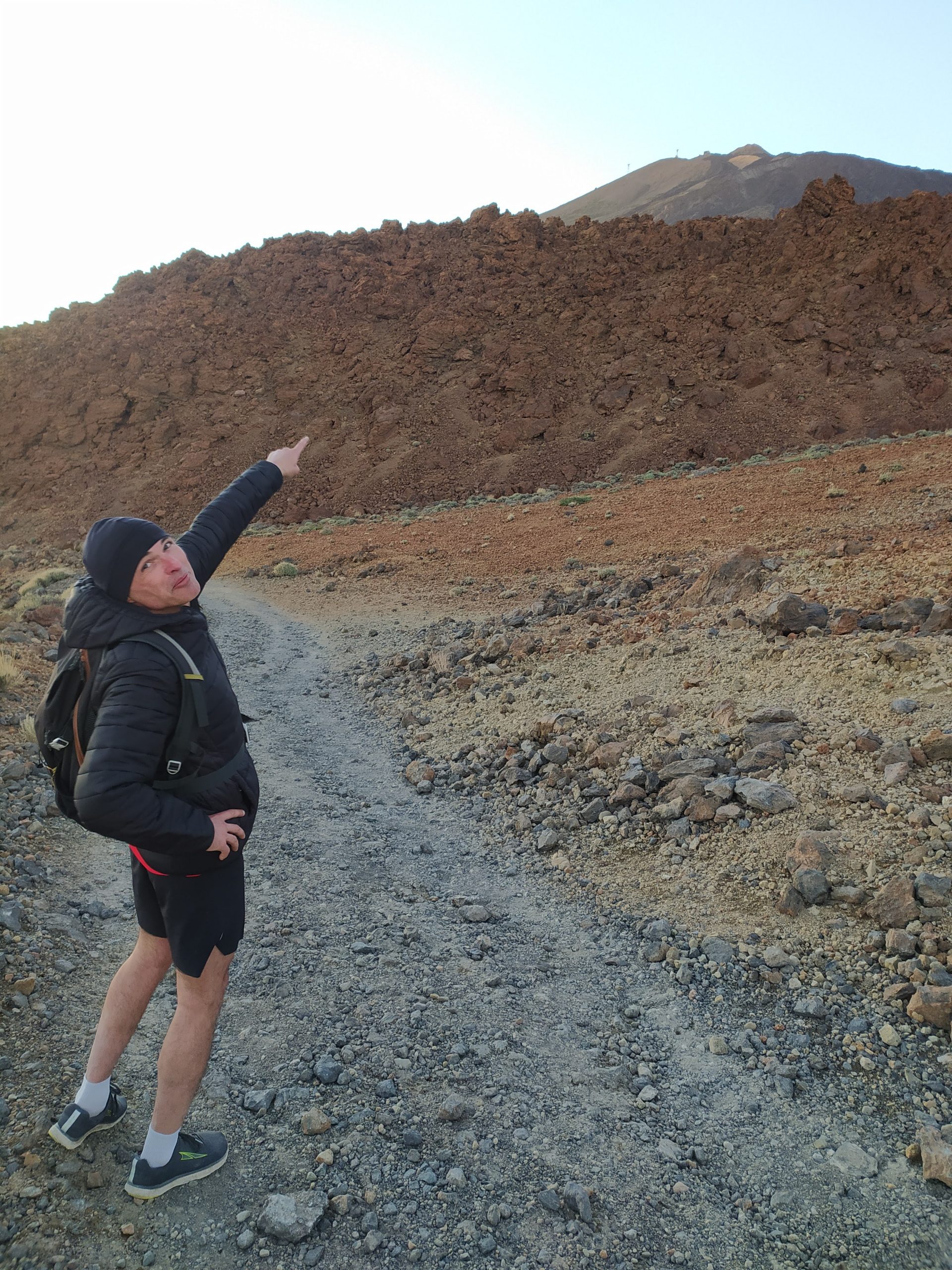 Była niedziela, ok 11, sporo ludzi i niewielkie parkingi pełne aut. Trochę zajęło nam czasu zanim znaleźliśmy kawałek miejsca, by wcisnąć nasze autko. Przeszliśmy kawałek asfaltem po czym weszliśmy na szlak. Przy barierkach stał pracownik parku i kątem ucha usłyszeliśmy, że ponieważ kolejka nie kursuje można wejść na sam szczyt wulkanu. Normalnie potrzebne jest specjalne pozwolenie. Władze parku wydają ich tylko 100 dziennie, dlatego trzeba się o nie starać na wiele miesięcy przed chęcią wejścia na sam szczyt. Opcją wejścia bez tego permition jest bycie na wulkanie przed wschodem słońca i opuszczenie szczytu przed 9 rano, gdy na górę wjeżdża pierwsze teleferico. Taką opcję wybrała nasza znajoma z Guesthouse, Lucy, którą ok południa spotkaliśmy szczęśliwą schodzącą z gór. My byliśmy wtedy po pół godzinie marszu całkiem przyjemną ścieżką.