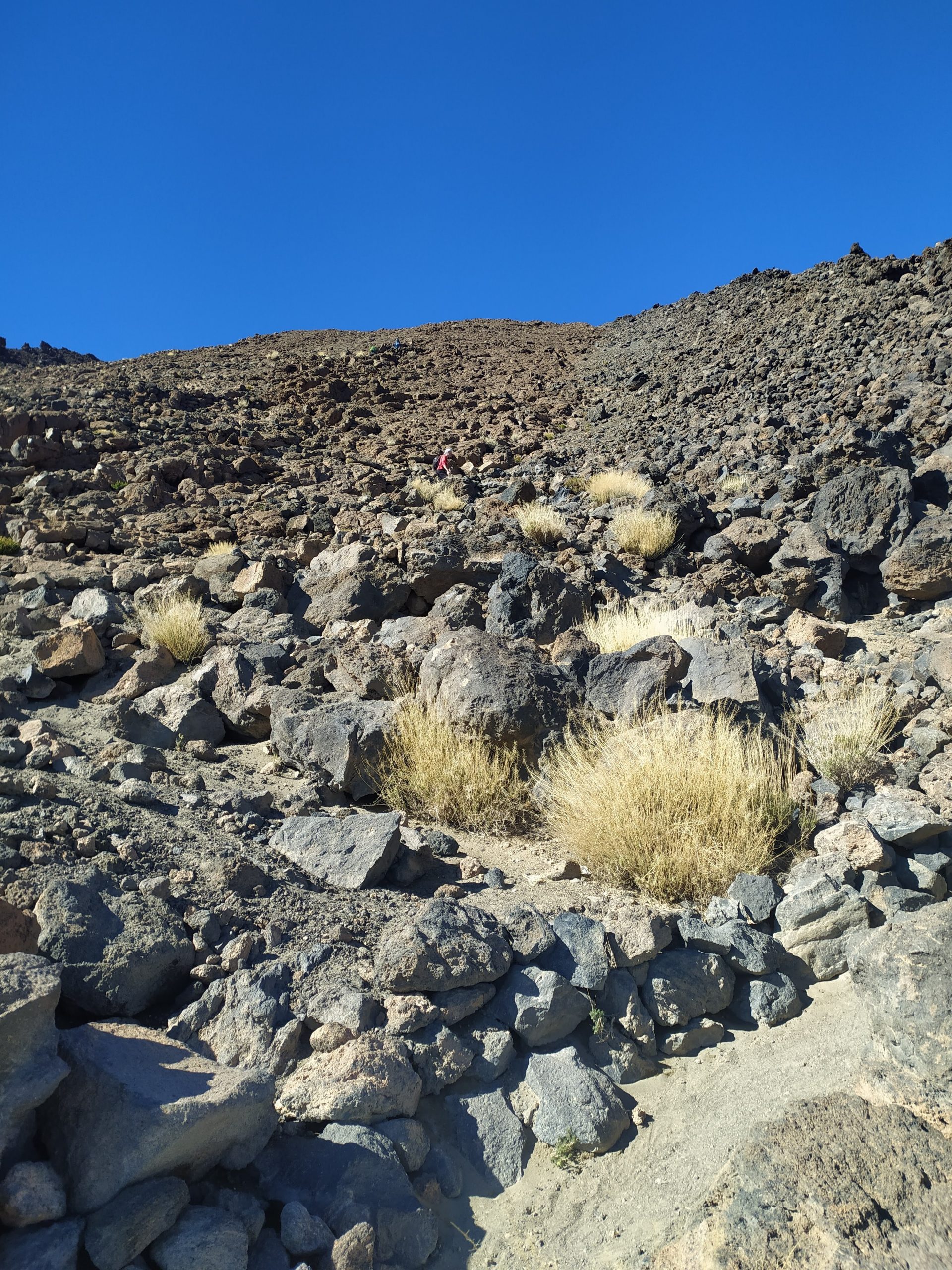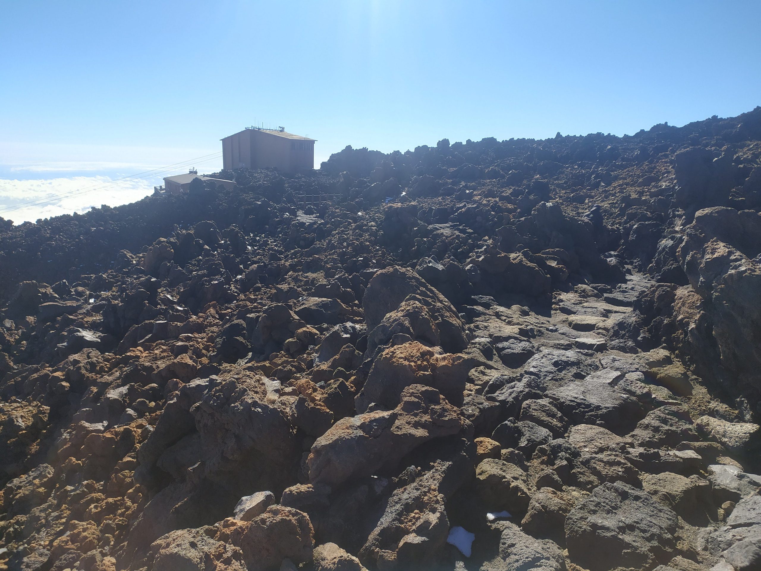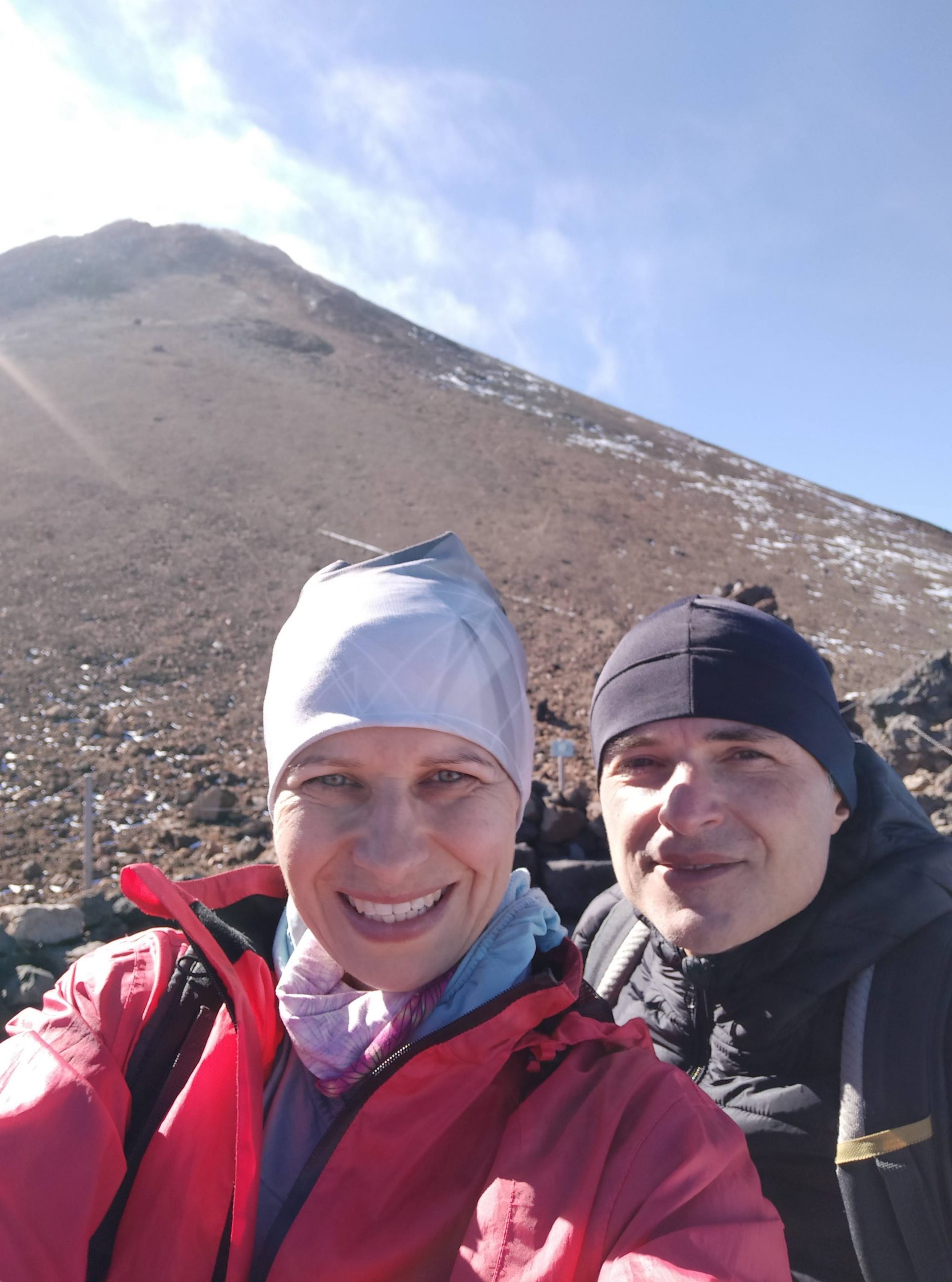 Nie mieliśmy planu zdobycia szczytu, postanowiliśmy, że idziemy tak długo jak starczy nam sił. Po ok 5km przyjemna ścieżka się skończyła i zaczęła się wspinaczka po bardziej kamienistym szlaku i zdecydowanie o większym nachyleniu. Po 1h doszliśmy do schroniska na wysokości 3260 mnpm. Tam jakiś chłopak powiedział nam, że jeszcze godzina i będziemy pod górną stacją kolejki, a potem 30 min finalnego ataku na szczyt. Mieliśmy dobre tempo więc ruszyliśmy dalej. Widoki petarda! Im wyżej tym mocniej wiało, a ja zaczynałam odczuwać braki tlenu. Yacool za to gnał do przodu jak nakręcony, podobno to z powięzi tak mu szło 😉