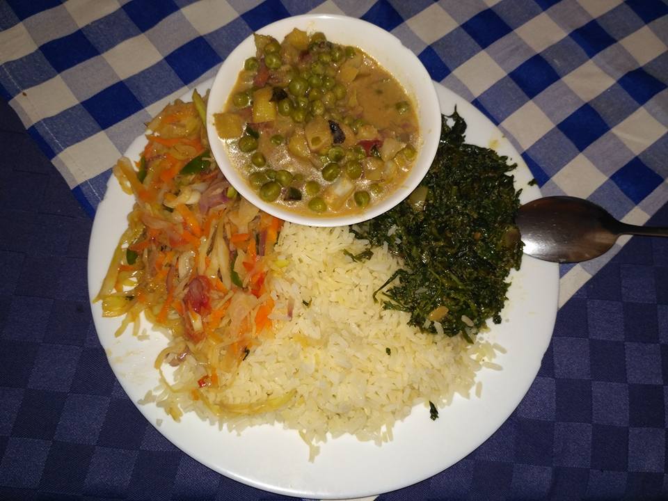 Wczoraj na obiad zamówiłam sobie duszone ziemniaki, zaczyna mi chyba trochę brakować naszych smaków. Dziś warzywnie – ryż, kapusta, mix duszonych warzyw i managu.