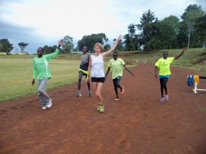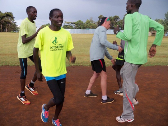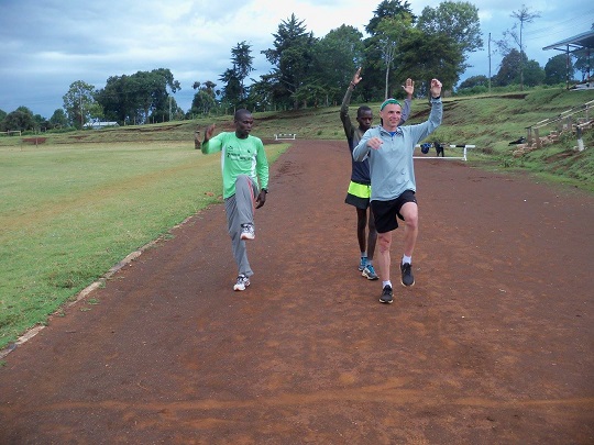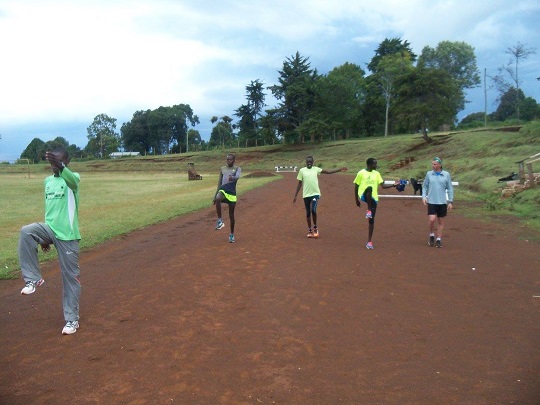 Gdy już dotarli zrobiliśmy 2 kółka wokół stadionu dla rozgrzewki i rozpoczęliśmy przerabiać z nimi układy koordynacyjne. Najpierw w statyce, później w marszu, a na końcu w truchcie. Reubenowi wychodziły one najlepiej, Meshack z trudem, ale łapał, ci którzy robili je po raz pierwszy mieli duże problemy. Reuben tłumaczył chłopakom w suahili, to co mówił im po angielsku yacool i objaśniał jak wykonywać układy. Wyraźnie mu się to spodobało. Po godzinie oni byli spoceni, a ja zdyszana, aklimatyzacja do wysokości cały czas jeszcze trwa. Skończyliśmy sesję, by nie przegiąć. Jutro chłopaki mają w planach poranny medium run, a potem chcą kolejną lekcję u yacoola. Umówiliśmy się, że podejdziemy do nich po naszym i ich porannym bieganiu, pokażą nam las, w którym biegają. Do stadionu, gdzie dziś trenowaliśmy mają od siebie około 5 km. Pokazali nam skrót w drodze powrotnej, ale jak się w praktyce okazało był on skrótem jedynie dla nich, my musieliśmy się potem cofać i nadrabiać drogę.