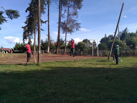 Po południu pojechaliśmy do St. Patrick School. Po drodze wstąpiliśmy na pocztę wysłać kartki. W szkole spotkaliśmy ponownie brata Colma i trenera, który prowadził trening w poniedziałek. Tym razem oni się przyglądali, a ćwiczenia prowadził młody chłopak. Na początku dzieciaki grały w zabawę na koncentrację. Stały w szeregu, trener wydawał komendy, a oni mieli na zadane hasła robić krok w lewo lub w prawo. Osoby, które się pomyliły odpadały i siadały z boku. Następnie cała grupa poszła na ok. 30 minut wolnego truchtu. Jak wrócili zaczęli robić ćwiczenia koordynacyjne, w dwutakcie, nożyce w marszu i truchcie z dołączonymi obrotami rękoma. Rzeczy dobrze nam znane z filmików z neta z etiopskiej rozgrzewki. Wszystko w rytmie skipowym. Tym razem nawet ja powstrzymywałam się, by nie krzyknąć, by zaczęli to robić w rytmie wieloskoku, z wyjściem w górę. Ale nie chcieliśmy im przeszkadzać. Na koniec trener pokazał im chodzenie po slackline, czyli po naszemu chodzenie po linie. Wyraźnie miał wiodącą jedną, prawą stronę, co yacool od razu wyłapał. Potem kilku młodych też spróbowało swoich sił na linie. Ale słabo im to wychodziło.